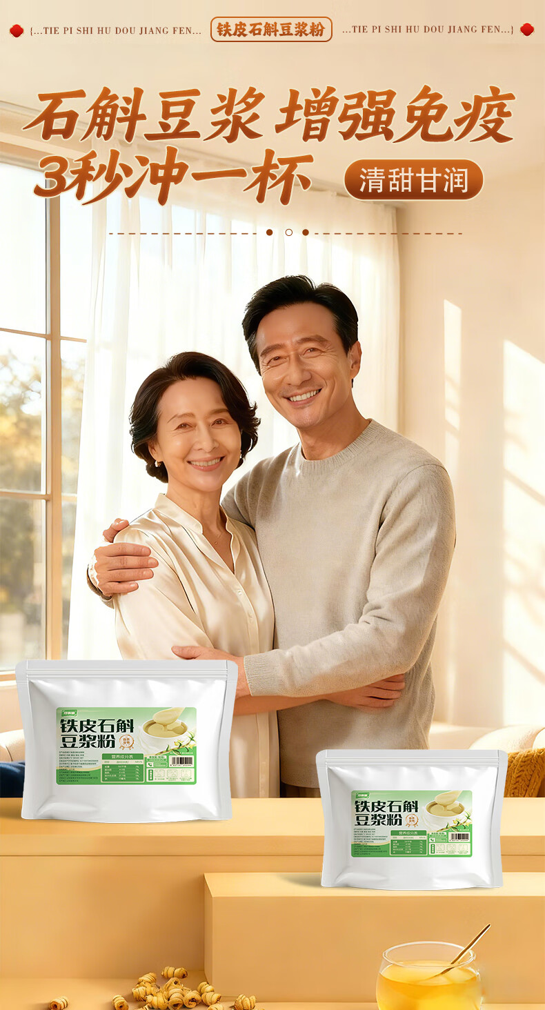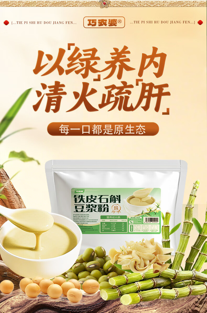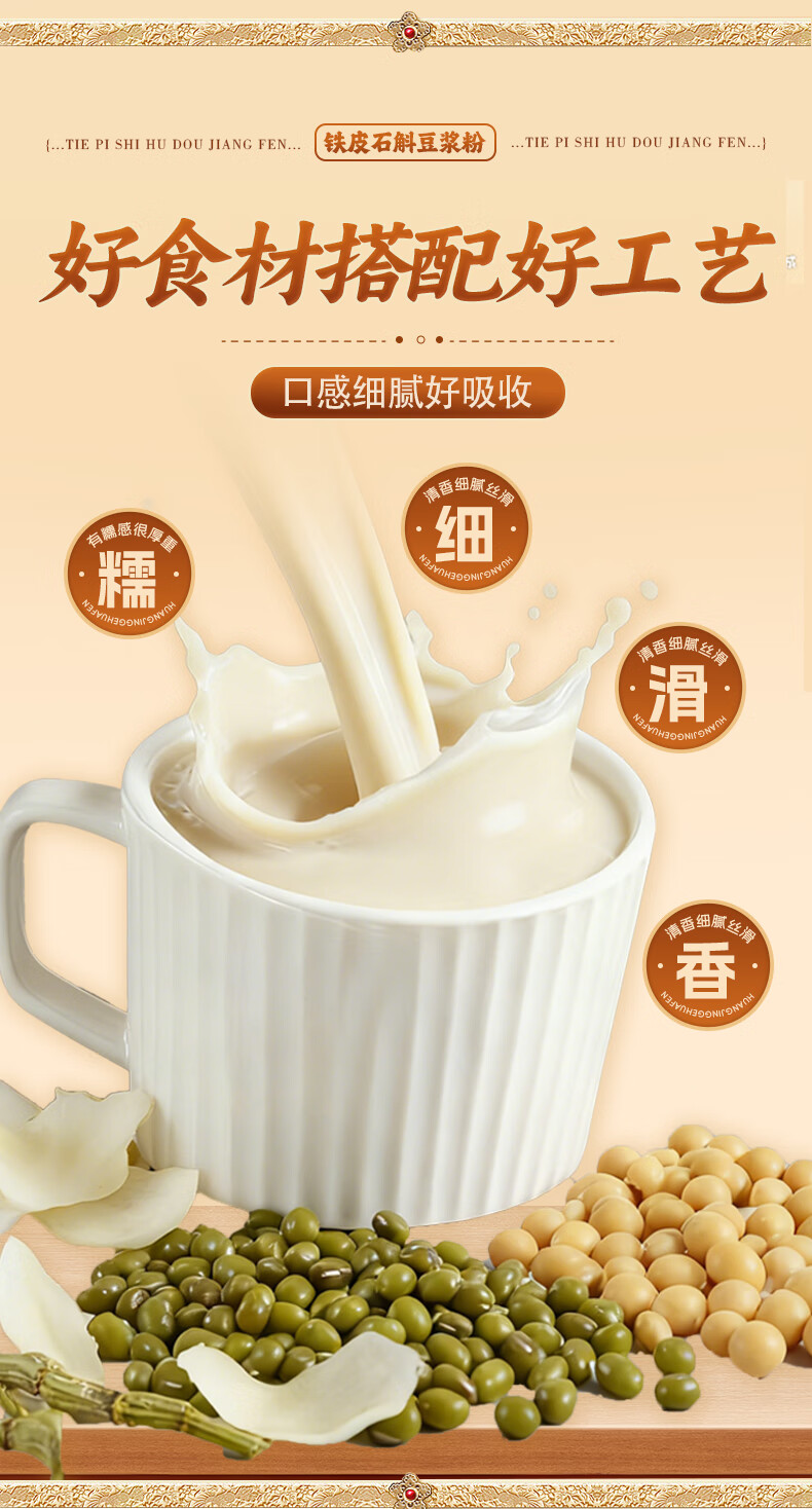 巧农婆铁皮石斛豆浆粉养胃营养早餐代餐粉冲泡即食米糊送礼送长辈营养品 【0蔗糖】 245g*3袋 (21小包)