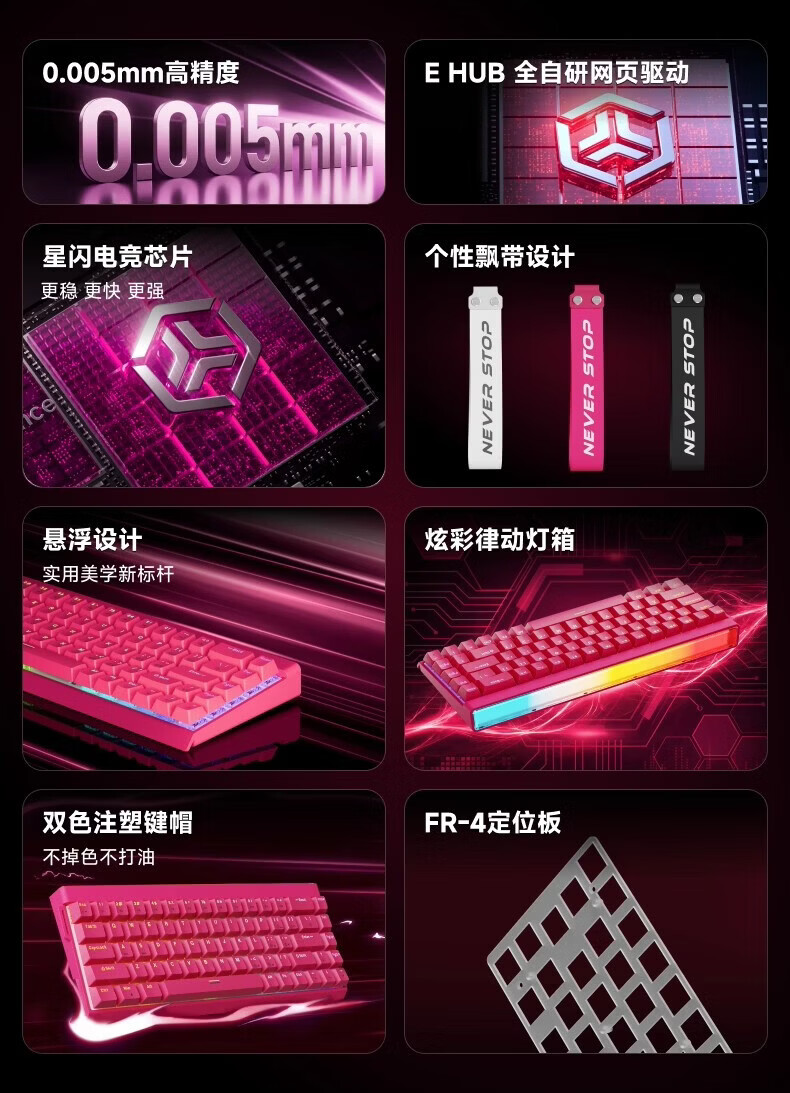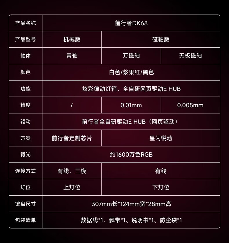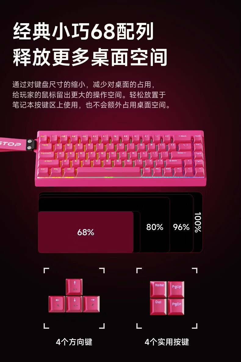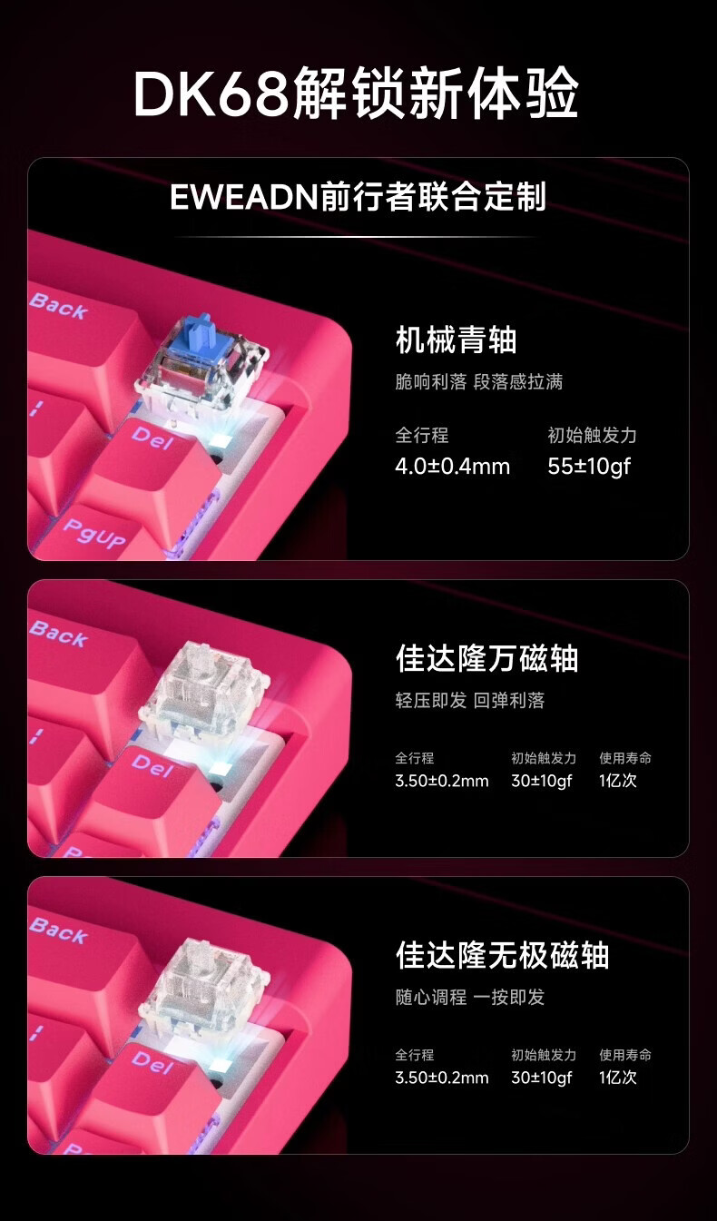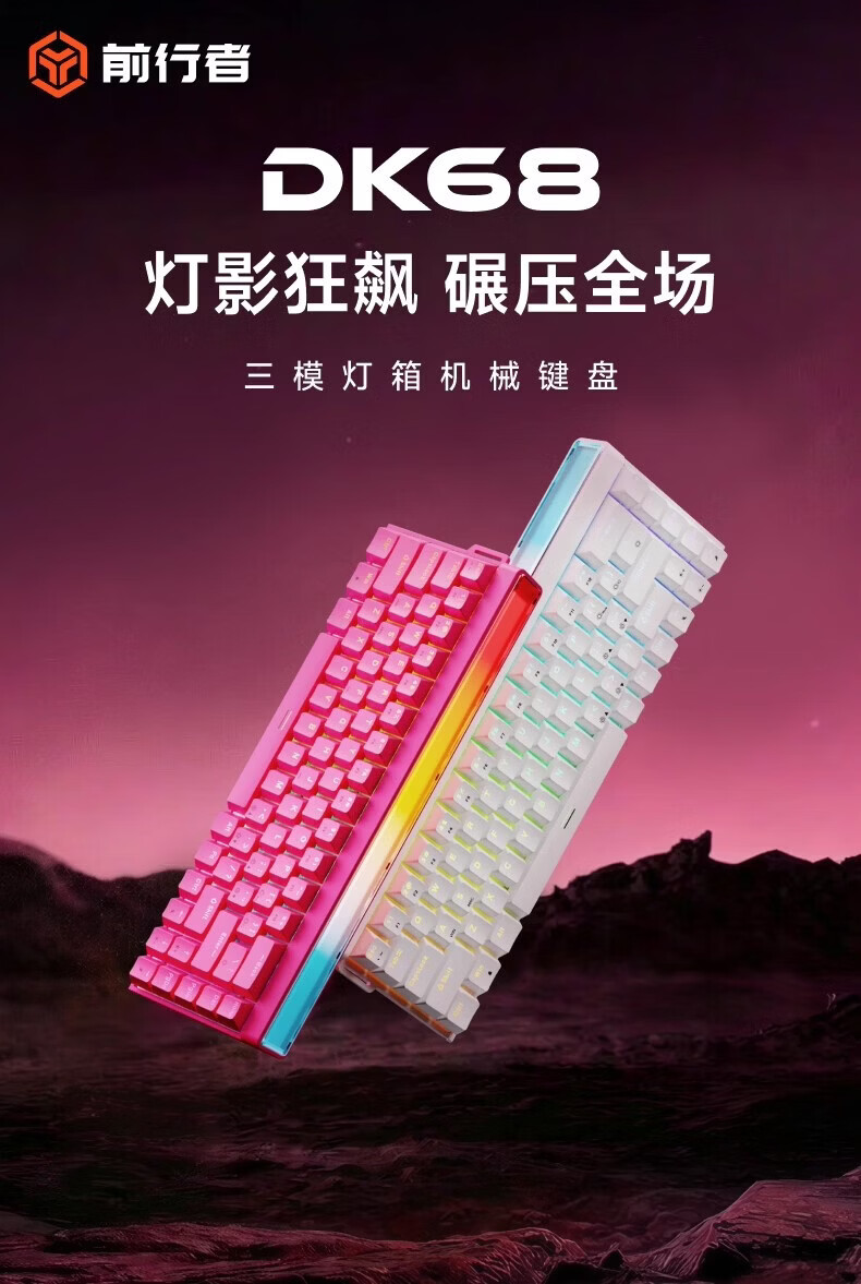 前行者(EWEADN)DK68机械磁轴键盘有线无线三模SOCD电竞游戏专业笔记本台式电脑RGB灯箱高回报低延迟男生女生外设 白色侧刻-无极磁轴+白透明爱心键帽