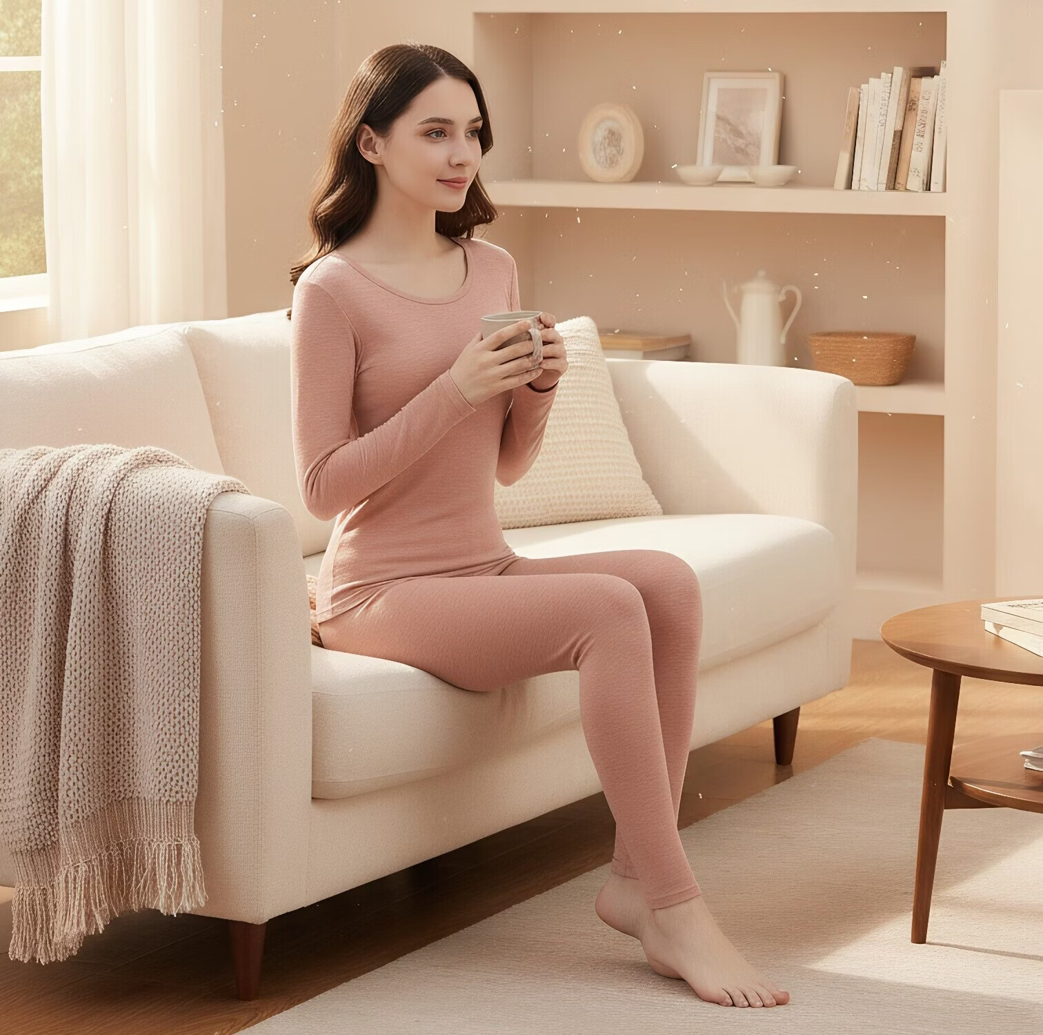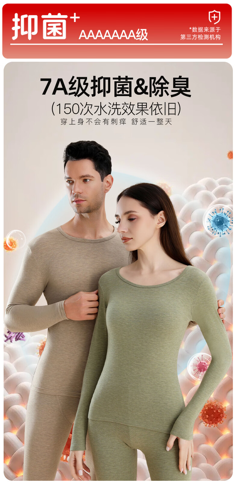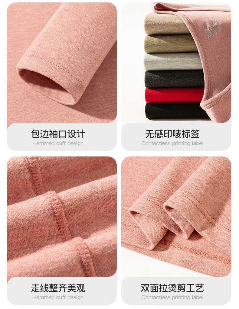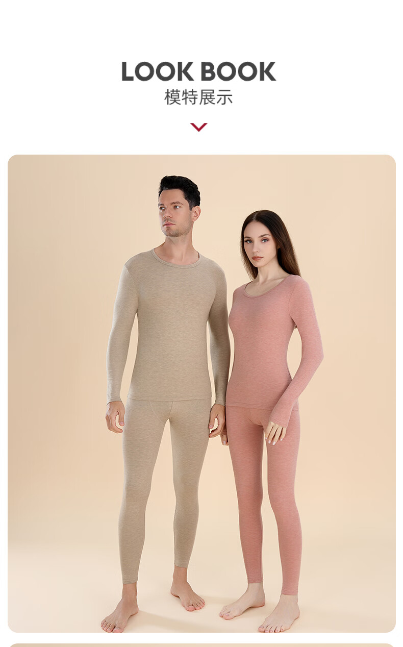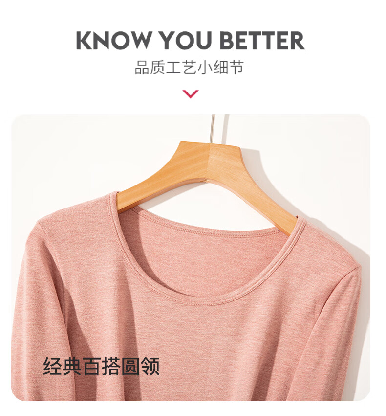 宜而爽10A抗菌保暖套装女士美肤衣法式紧身长袖圆领秋冬薄款无痕内穿 粉底肤/上衣+裤子 XL