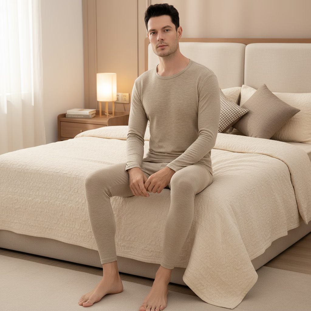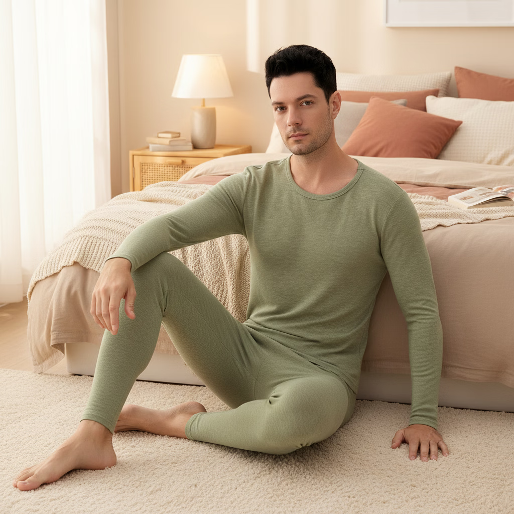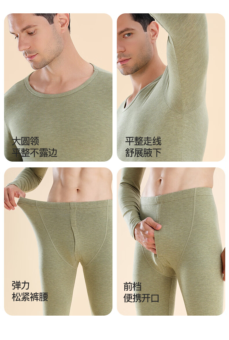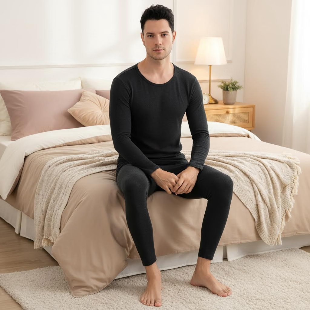 顶瓜瓜玻尿酸秋冬男士保暖内衣打底套装长袖透气薄款无痕裸感修身显瘦 经典黑(套装) XL