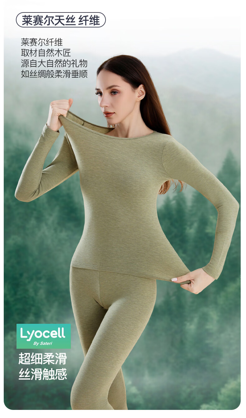 猫人莱赛尔天丝保暖内衣套装7A抑菌保暖秋衣秋裤冬季新款 女-石墨黑 M 【女75-120斤】【男90-140斤】