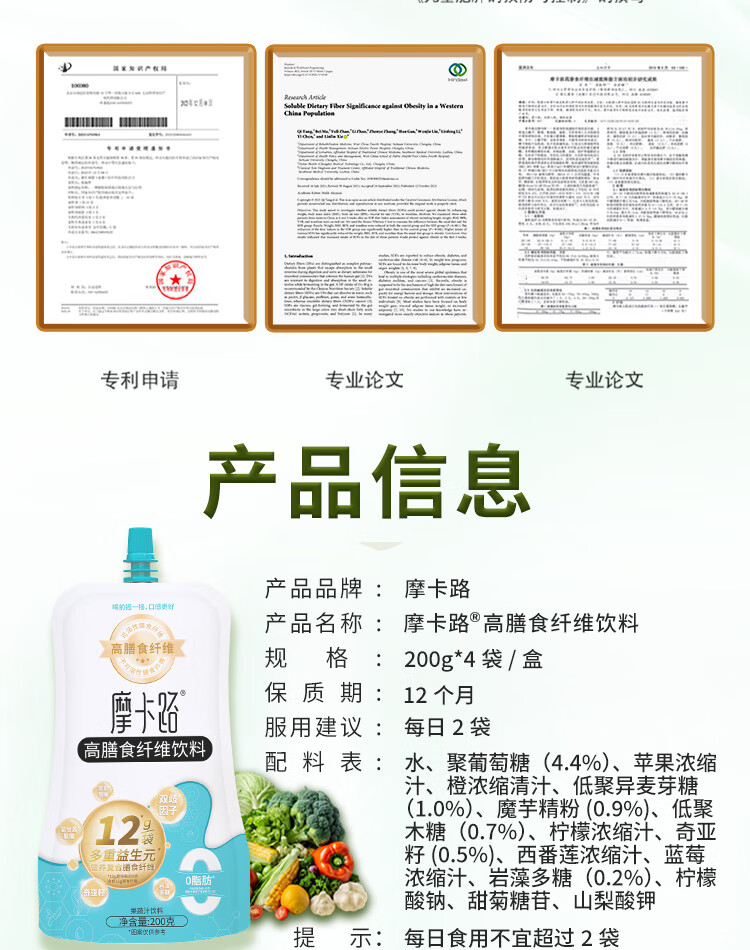 摩卡路低GI轻食代餐 强饱腹 关爱肠道 体重管理 高膳食纤维液态益生元 清肠益生 4袋*1盒