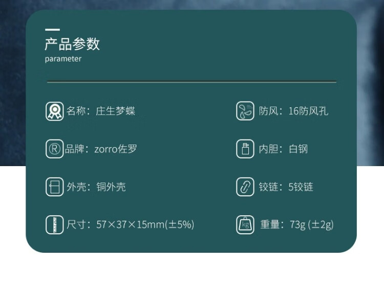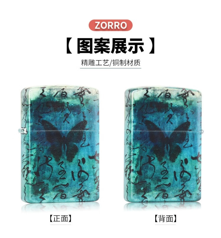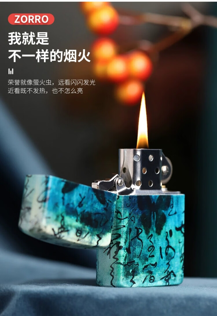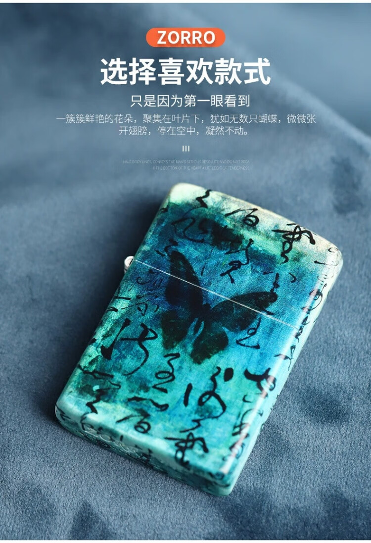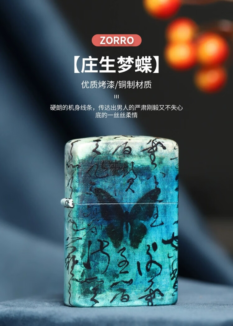 佐罗新款庄生梦蝶煤油打火机黄铜彩印高颜值复古防风男士生日礼盒装 庄生梦蝶豪华版