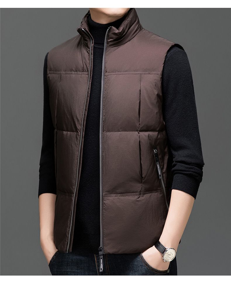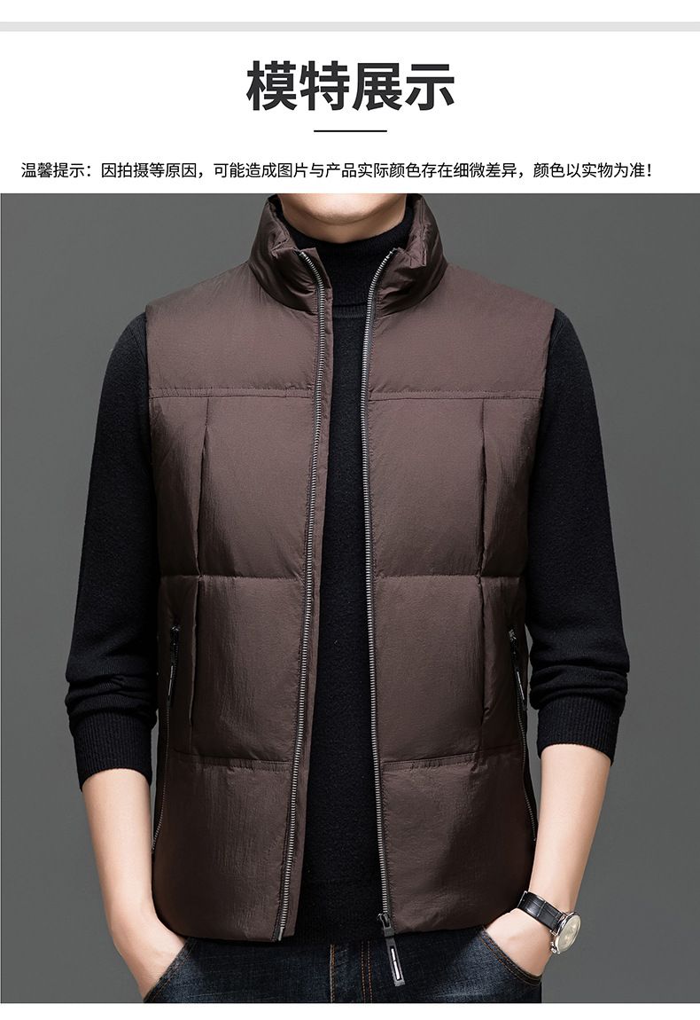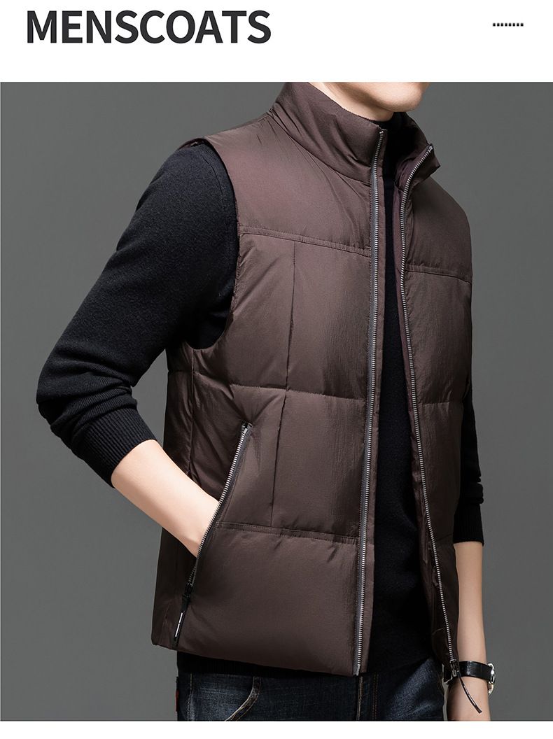 波司登冰洁纯色羽绒马甲男2025秋冬季款加厚白鸭绒保暖背心中青年 棕色 170/M