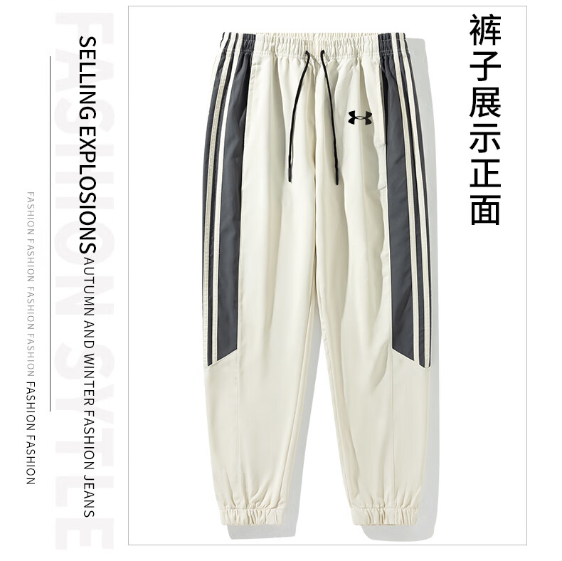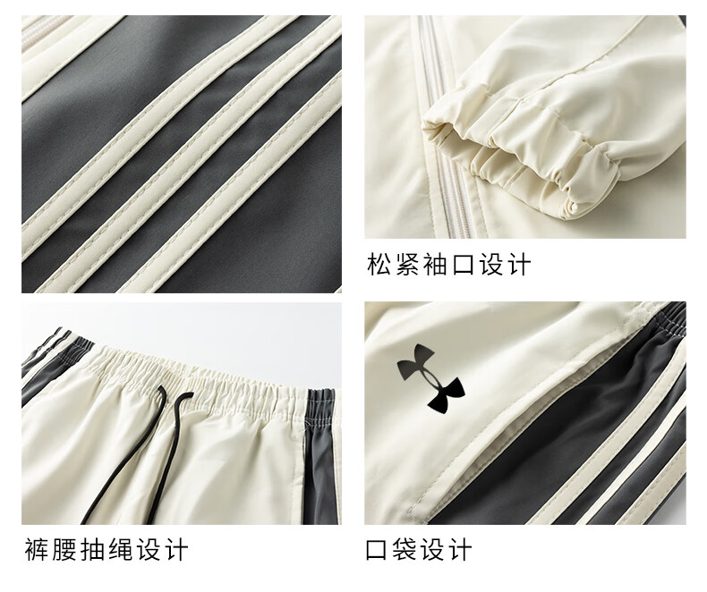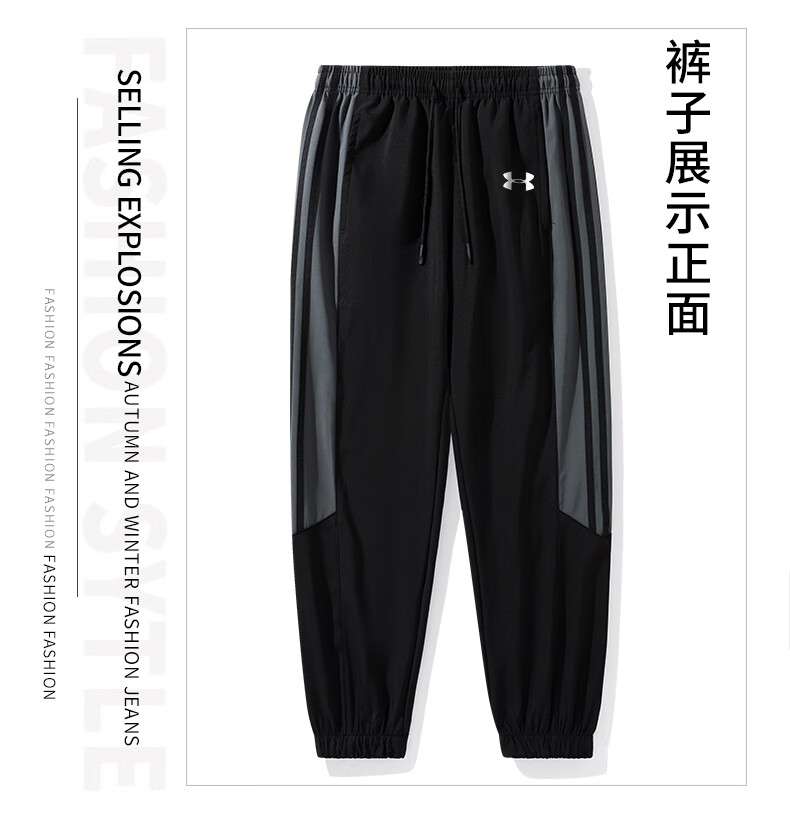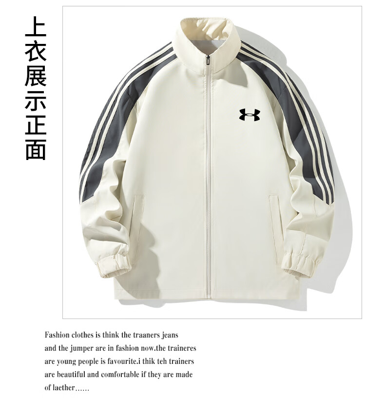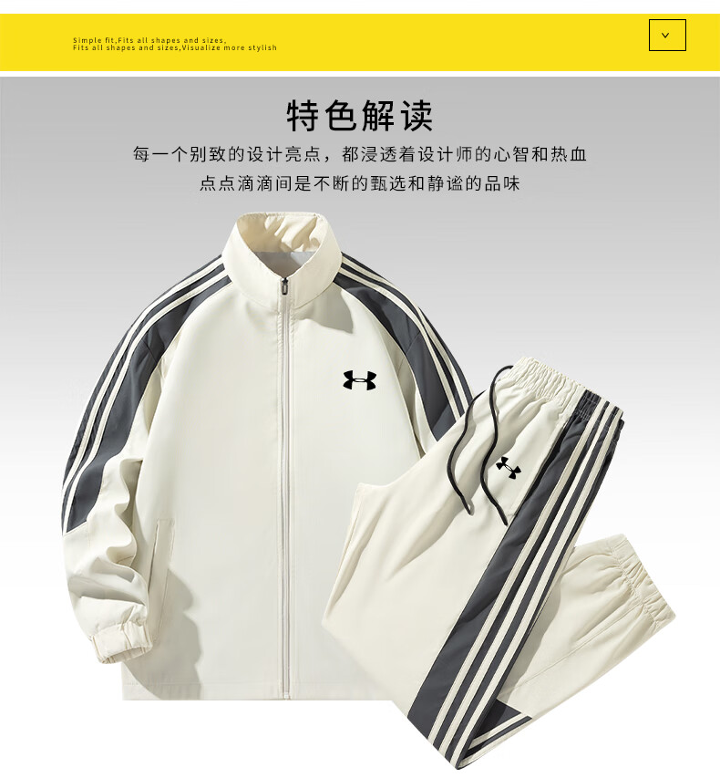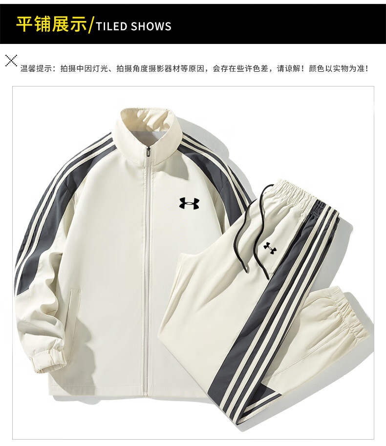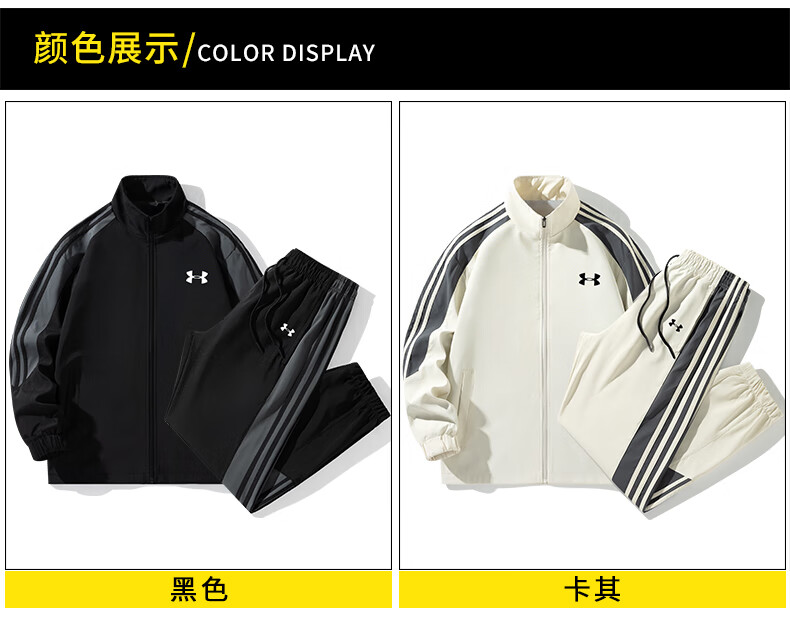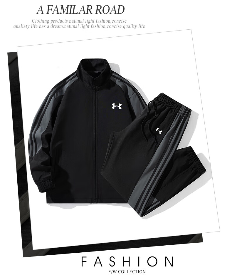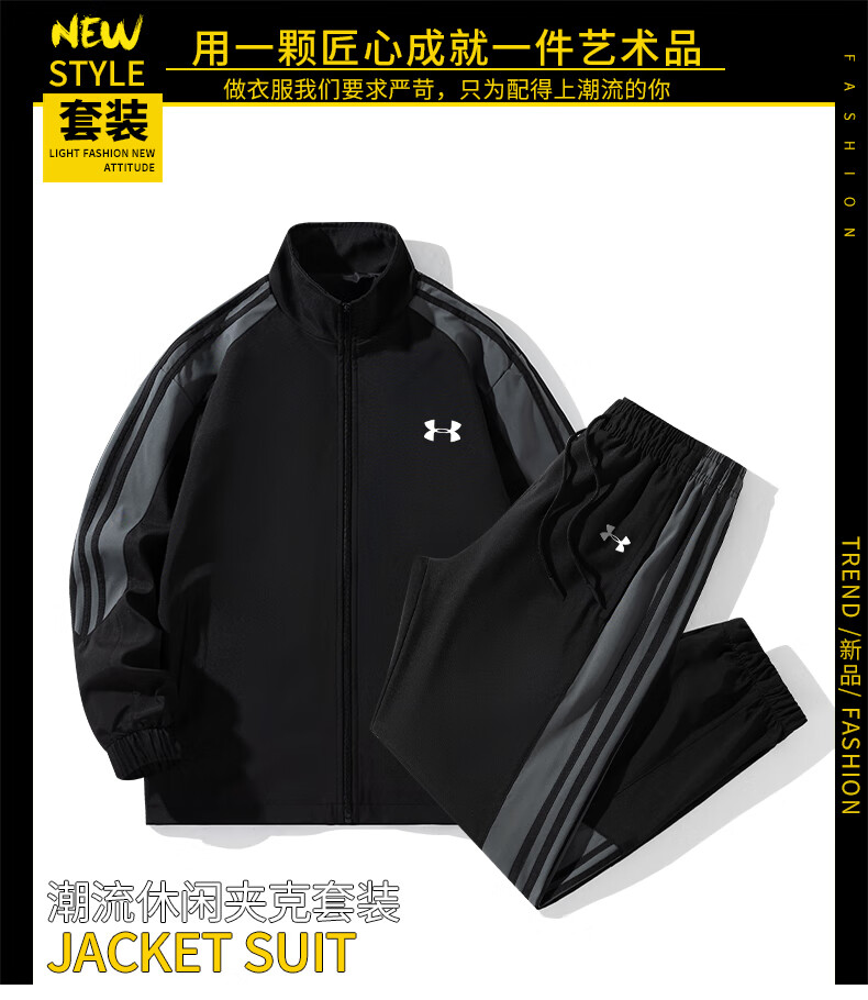安德玛新款潮牌休闲运动套装男士2025秋季新款宽松百搭青少年学生两件套 黑色 4XL【建议180-190斤】