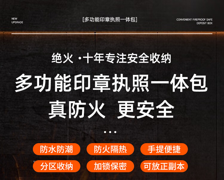 绝火防火防水营业执照一体包工商营业执照正副本证件收纳包带密码锁 星空黑防火营业执照包 37*9*25cm