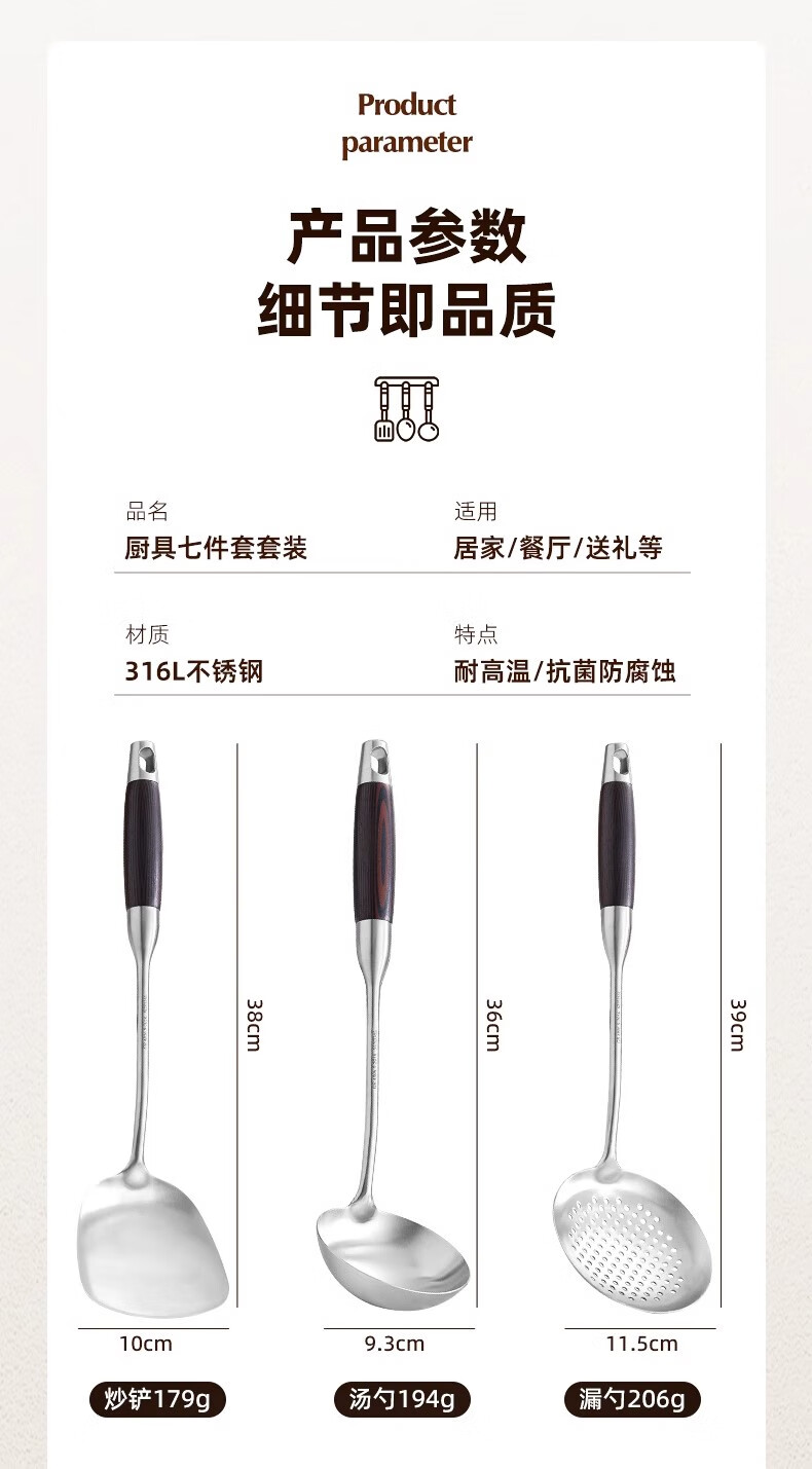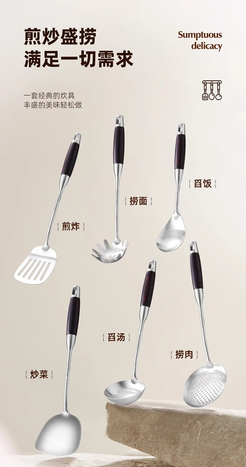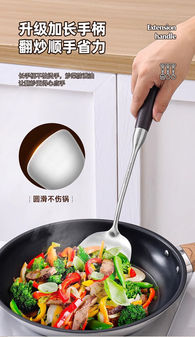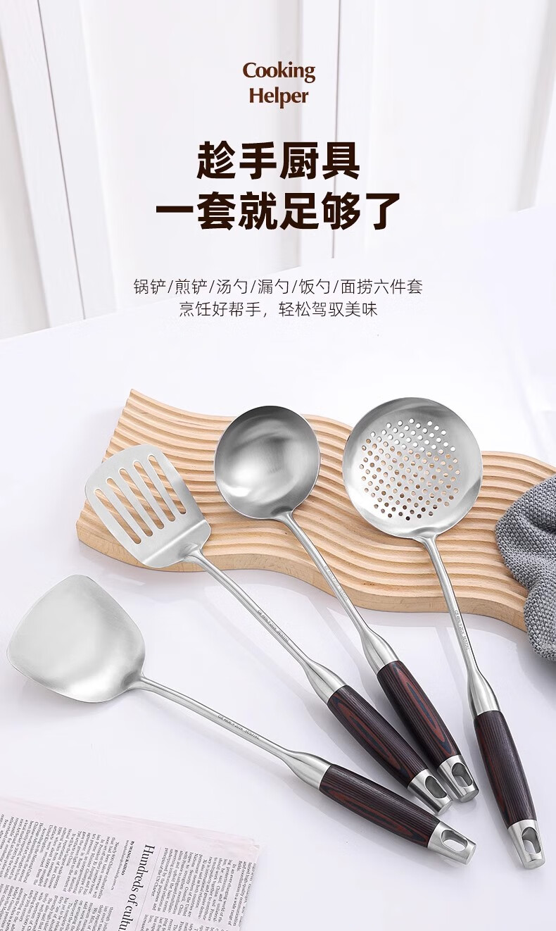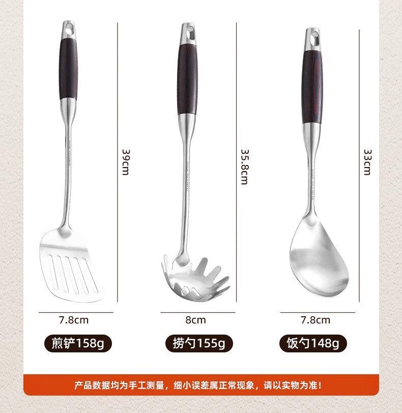 黑橘316不锈钢锅铲食品级家用炒菜铲子木柄把炒勺加厚铁锅铲厨具套装 (【日常3件套】锅铲+汤勺+漏勺)