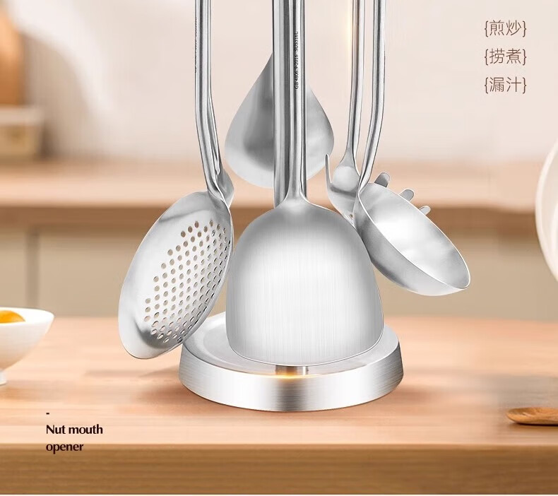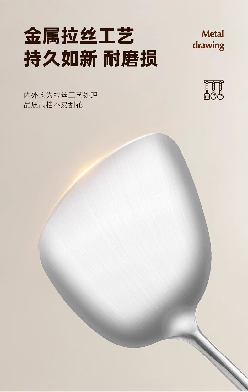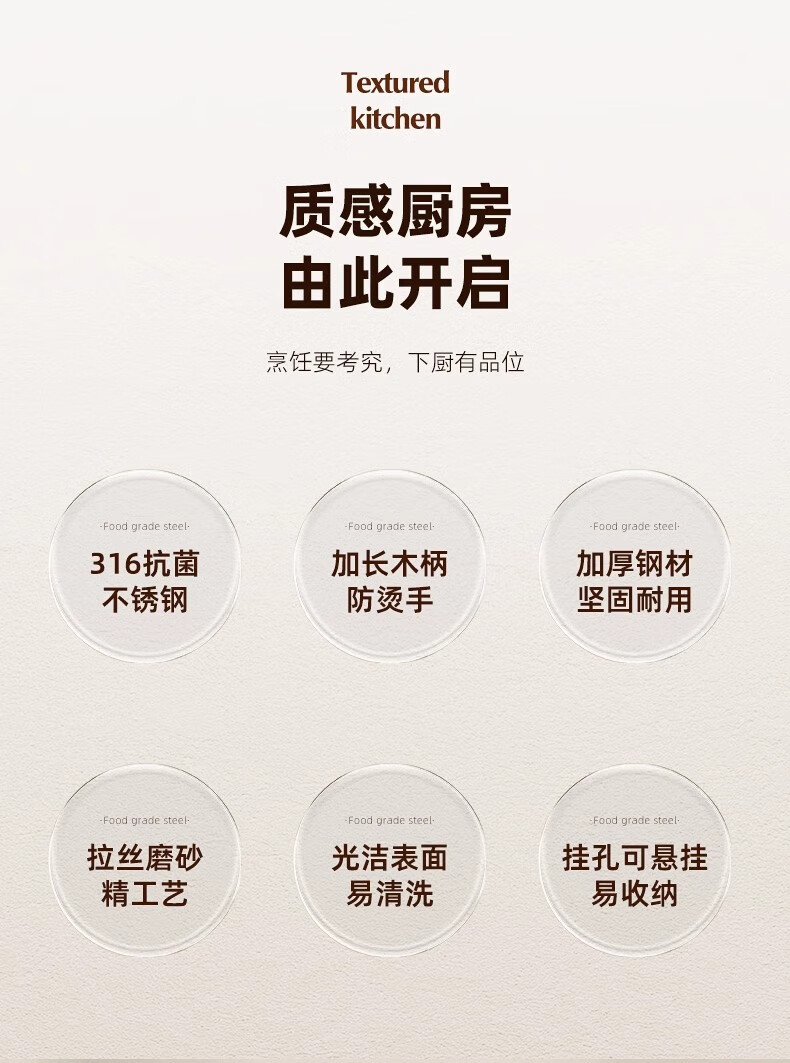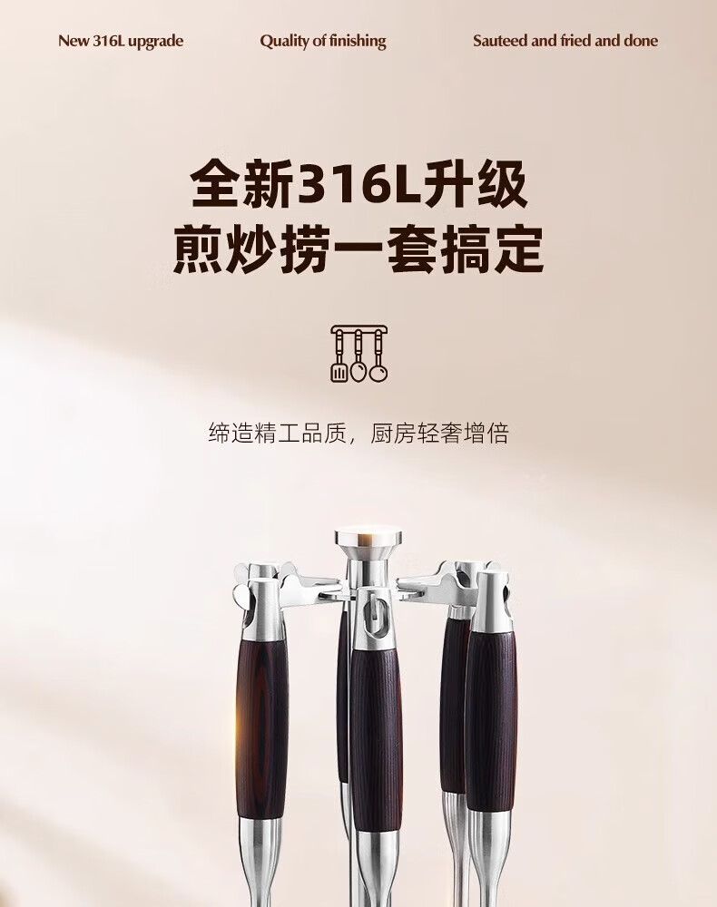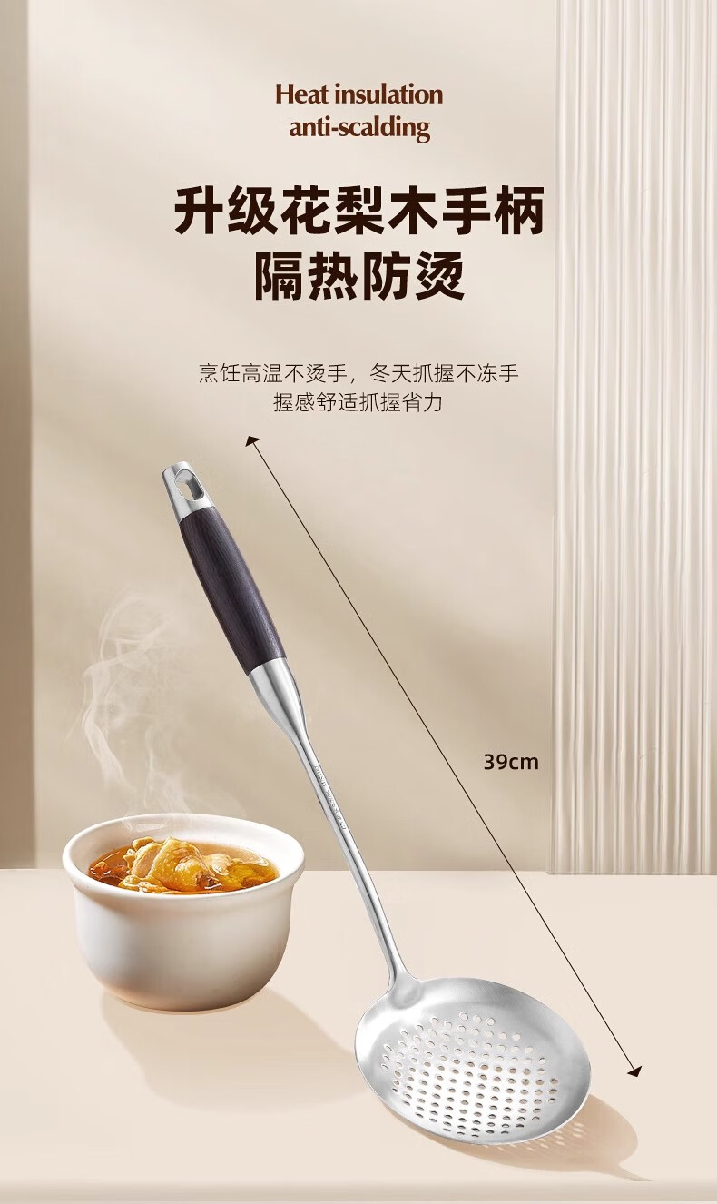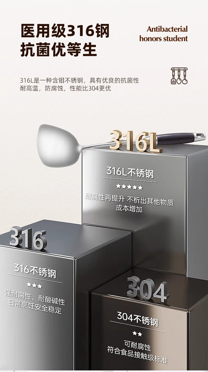 黑橘316不锈钢锅铲食品级家用炒菜铲子木柄把炒勺加厚铁锅铲厨具套装 (【日常3件套】锅铲+汤勺+漏勺)