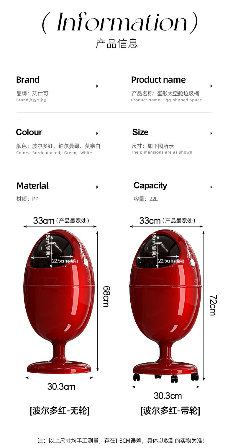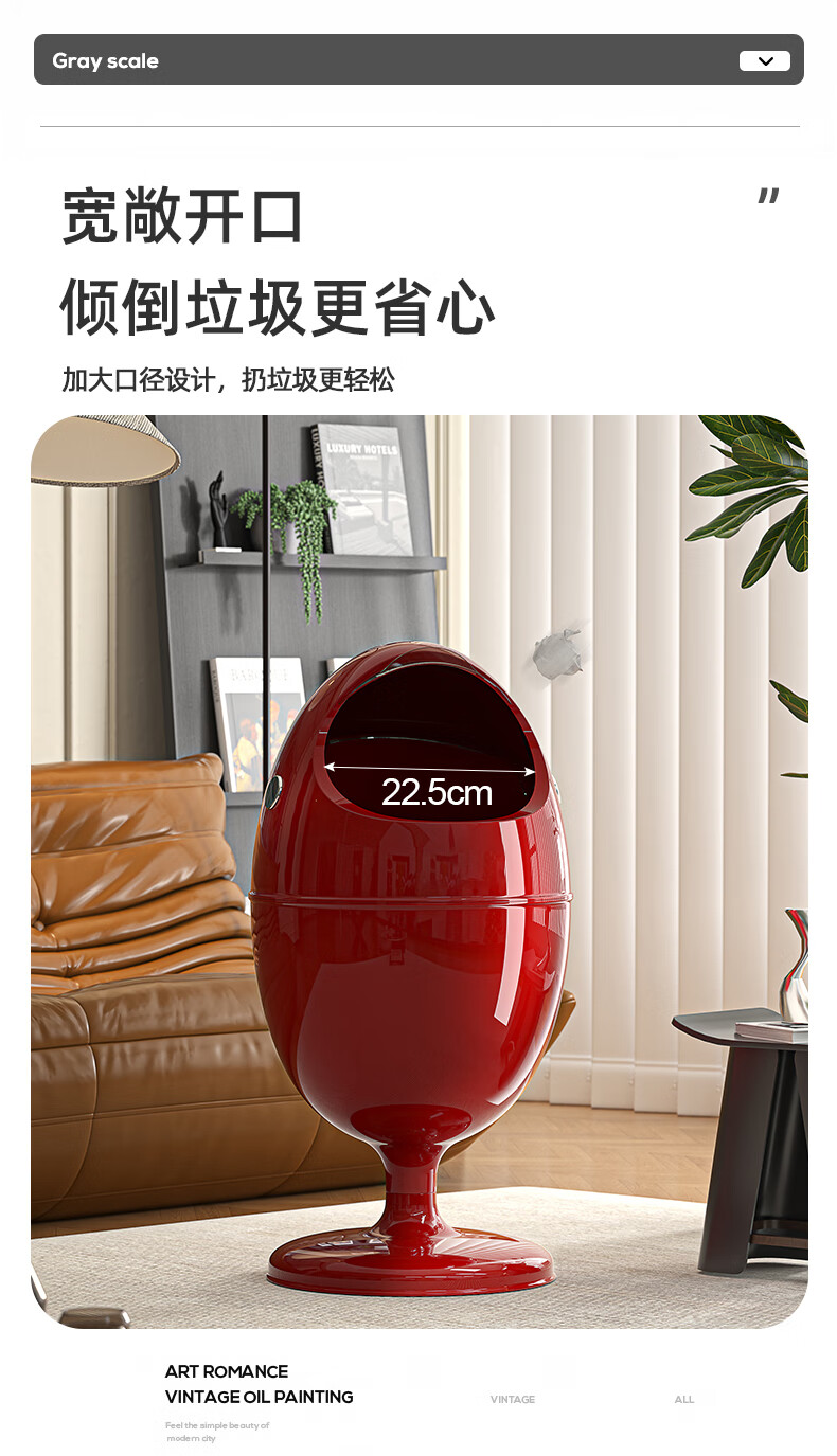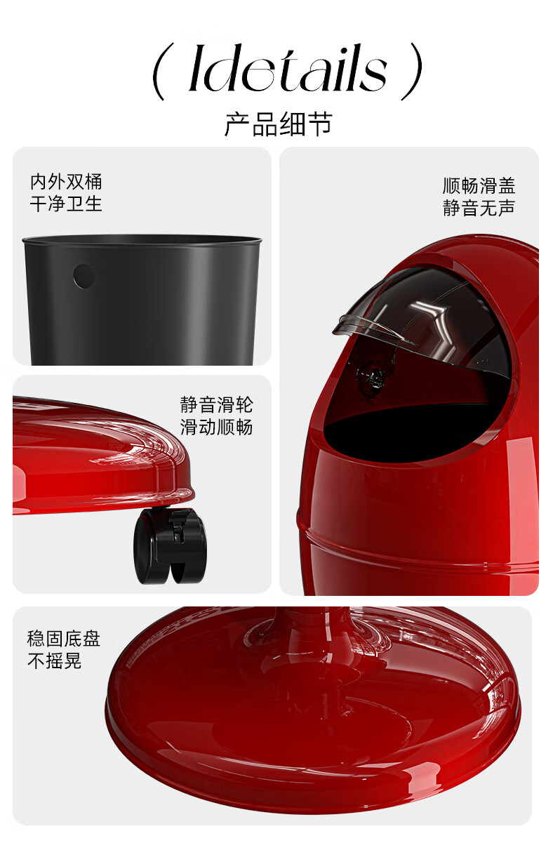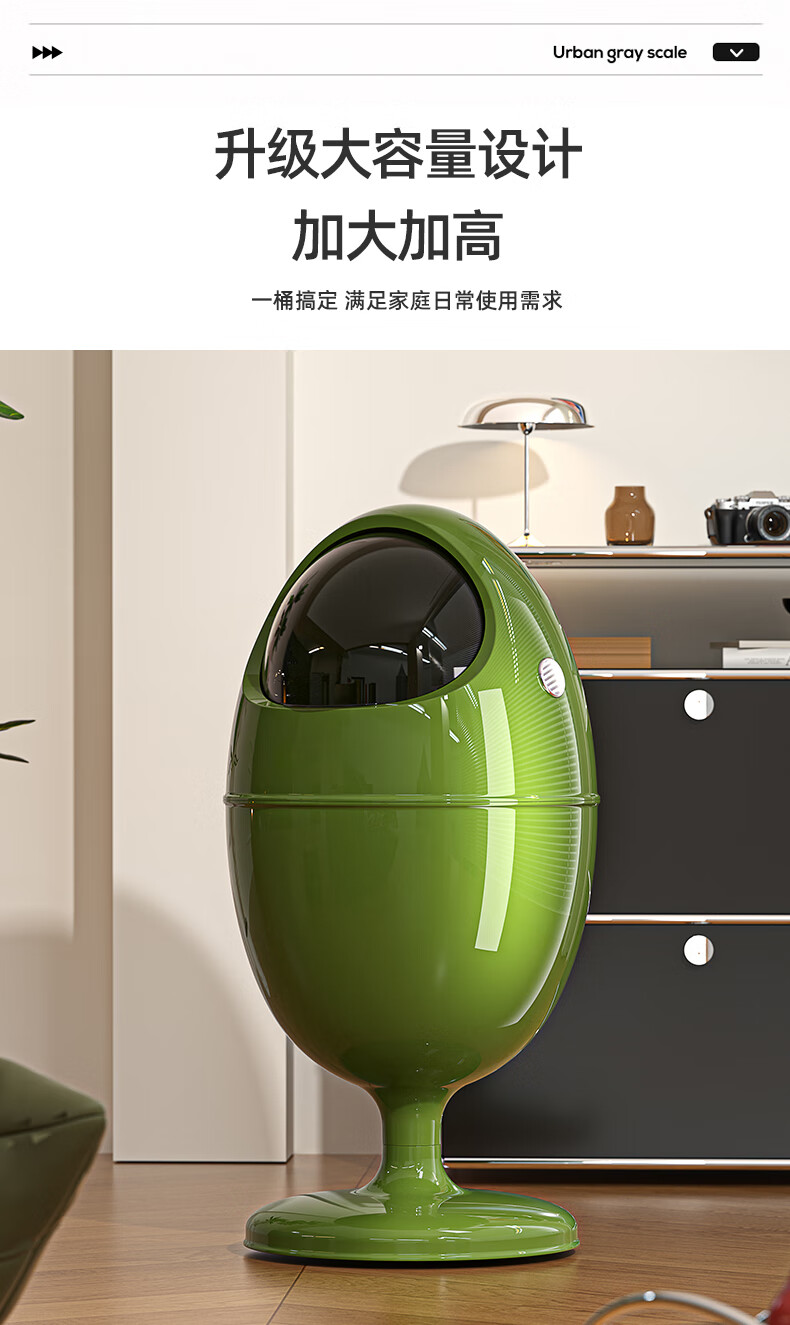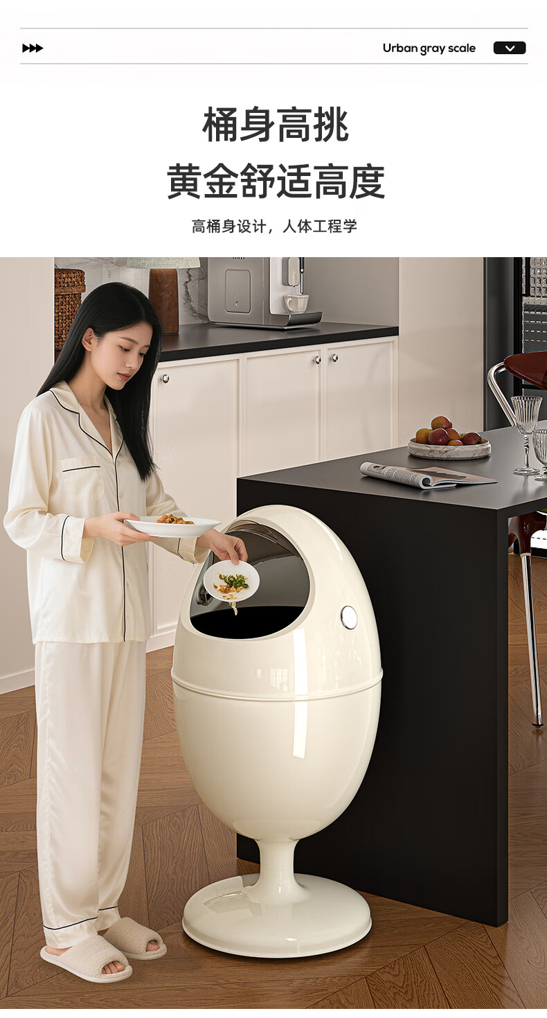 艾仕可(ASCOR)客厅垃圾桶轻奢高档家用2025新款大号免弯腰垃圾筒高颜值卧室纸篓 莫奈白【有轮】