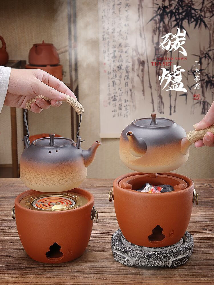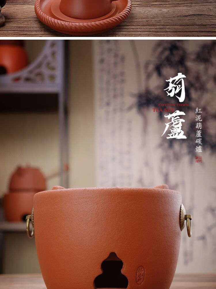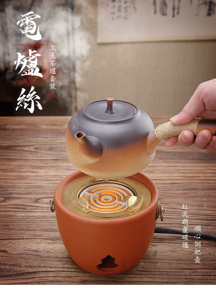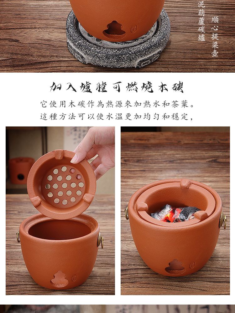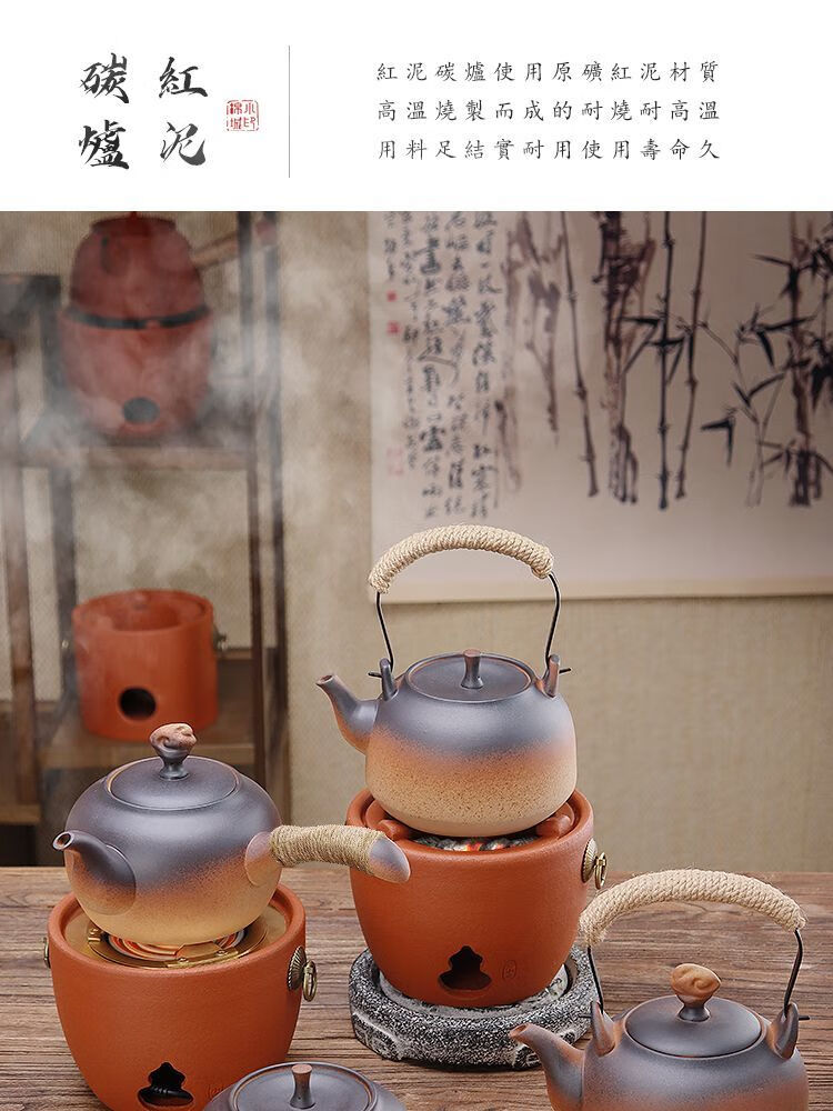 棉小城红泥碳电两用炉户外煮水炭炉木炭风炉围炉煮茶烧水壶温茶器泡茶壶 单壶【800ml富贵提梁壶】