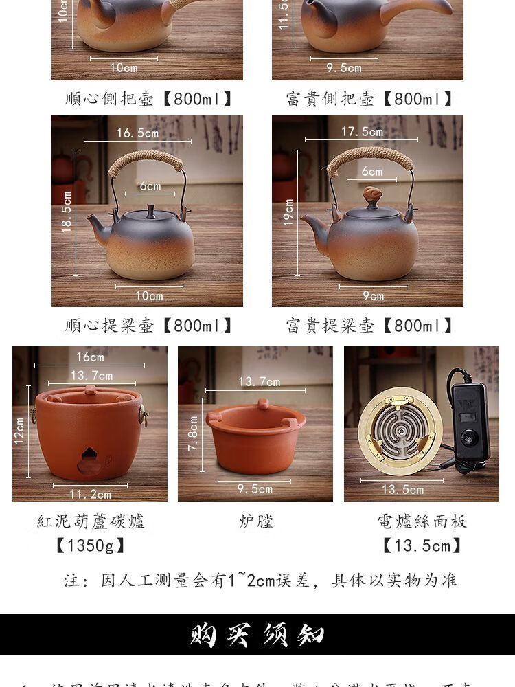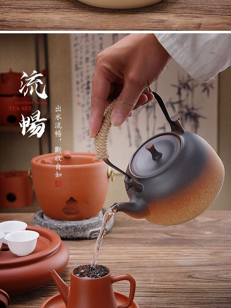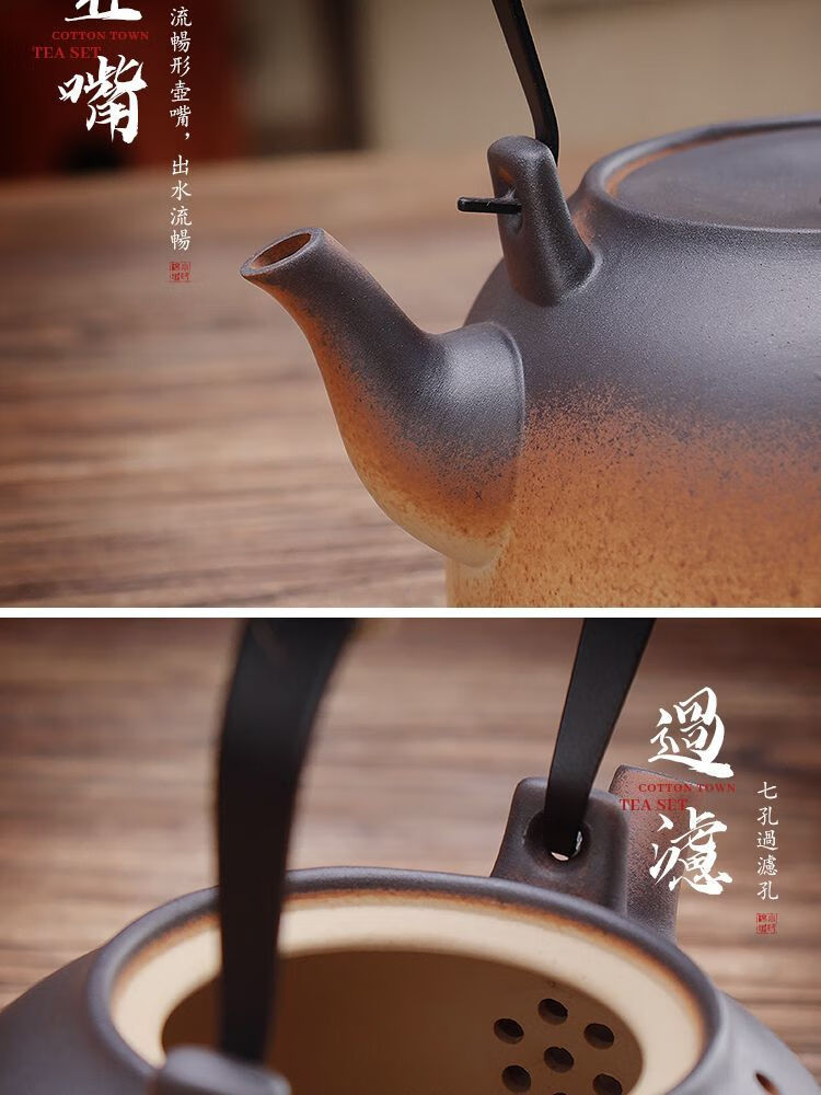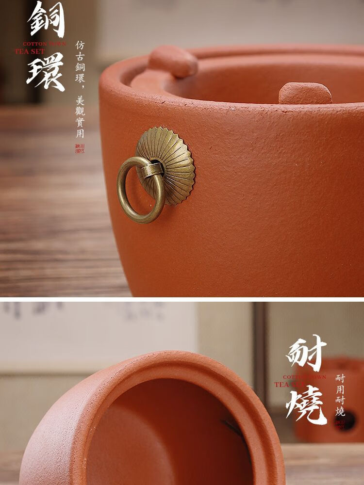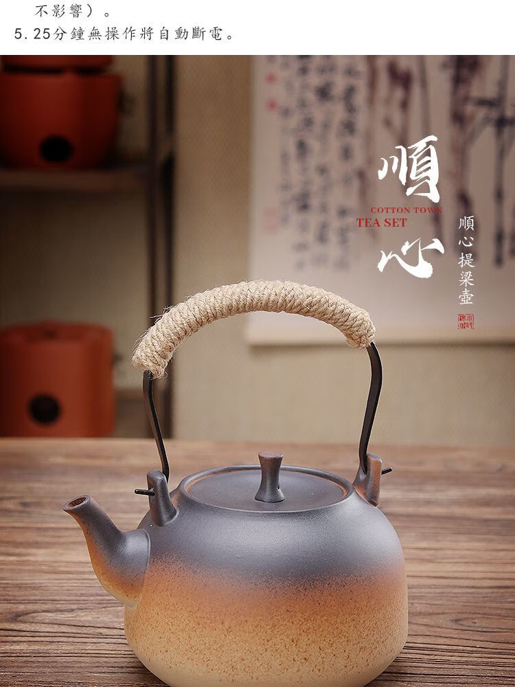 棉小城红泥碳电两用炉户外煮水炭炉木炭风炉围炉煮茶烧水壶温茶器泡茶壶 单壶【800ml富贵提梁壶】
