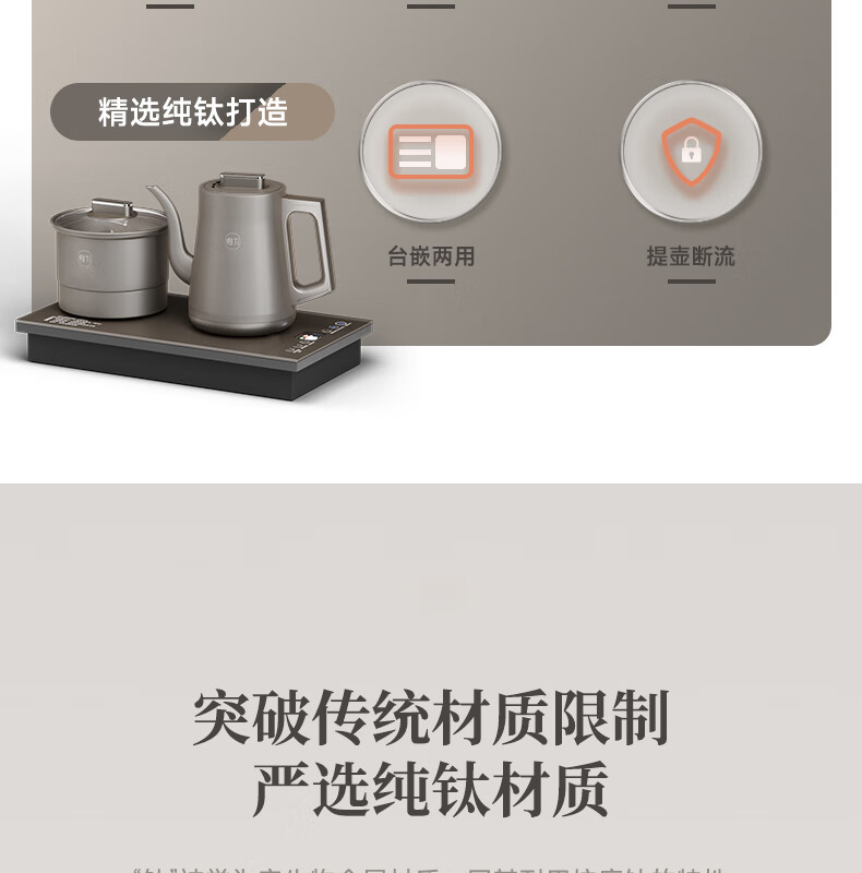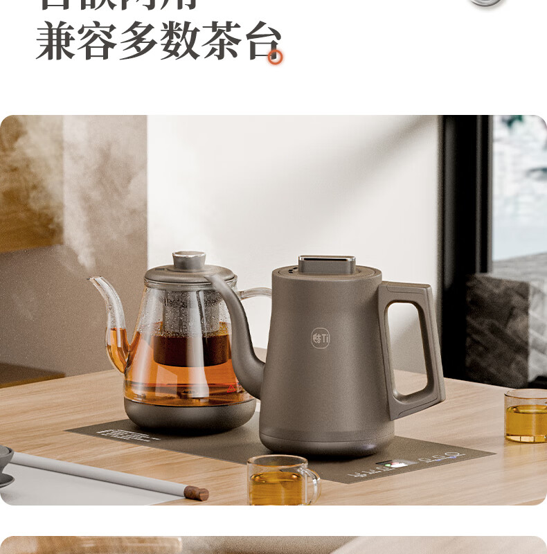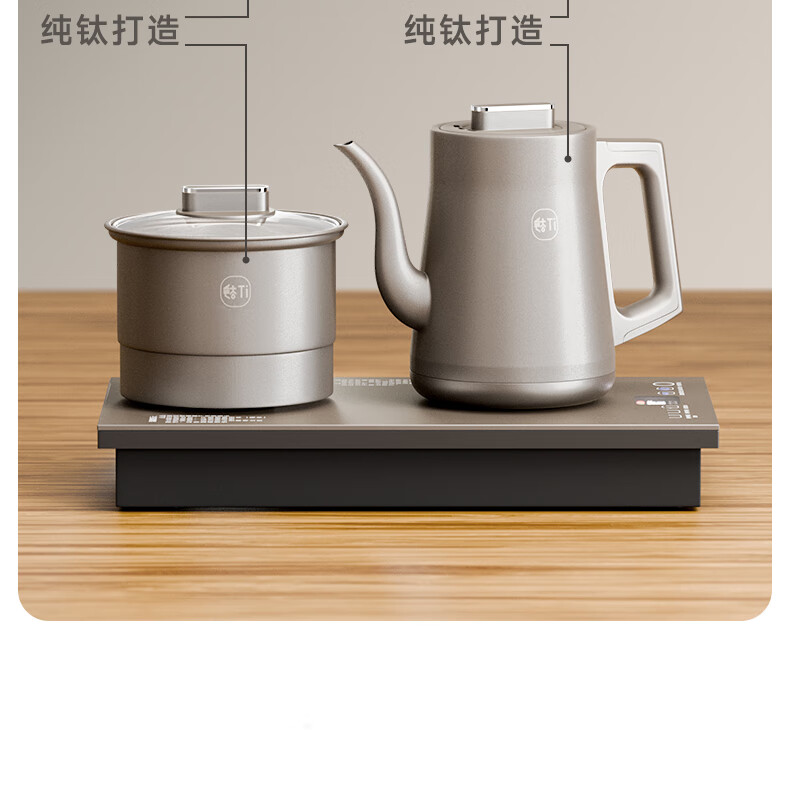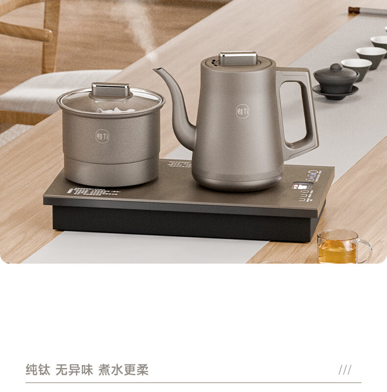 拾贰和烧水壶纯钛电热水壶全自动上水一体恒温保温感应上水双壶茶台茶桌茶几开水壶嵌入式电茶壶电茶炉 1L 纯钛双上水三合一
