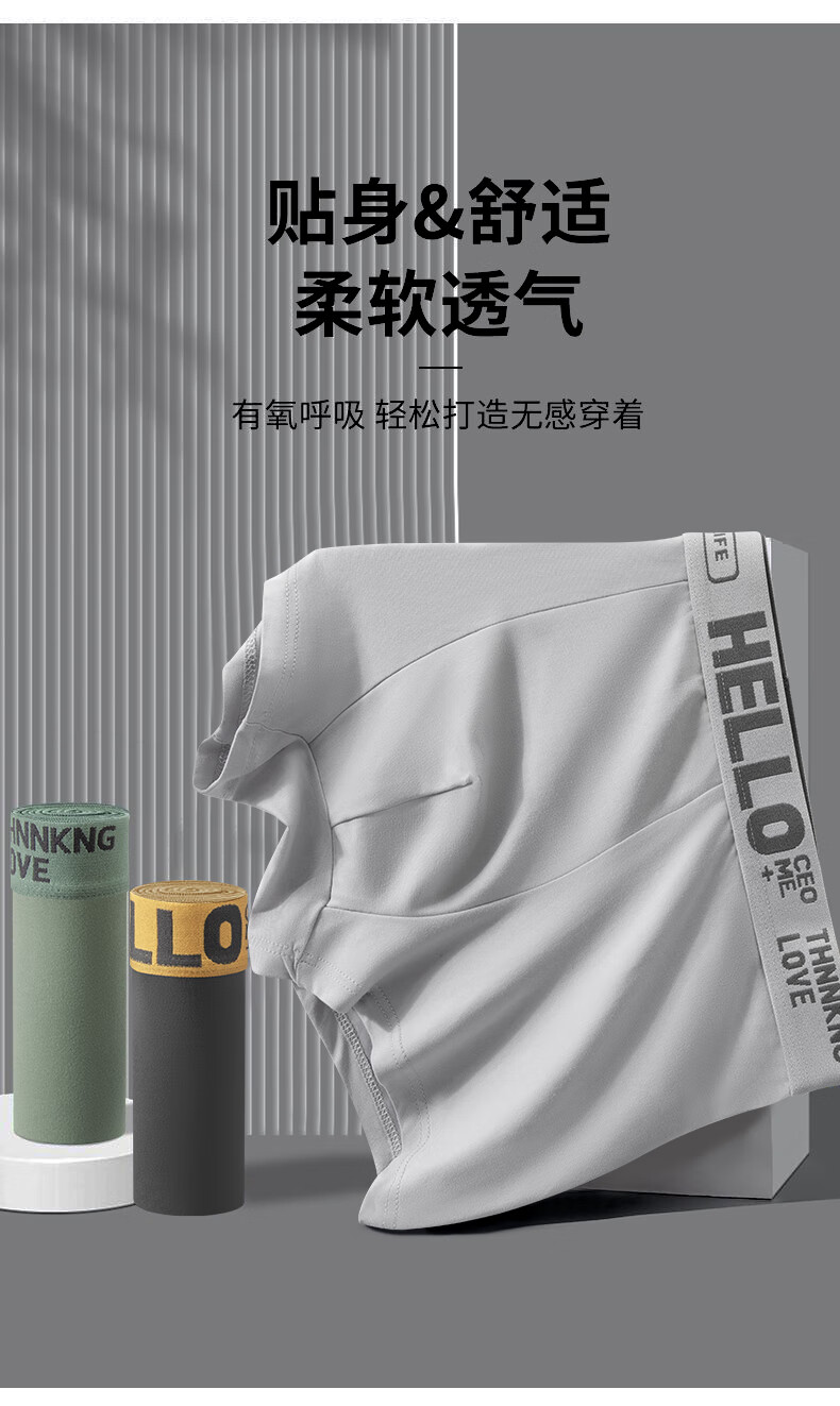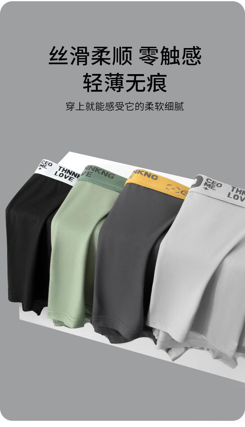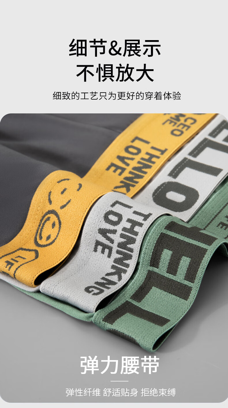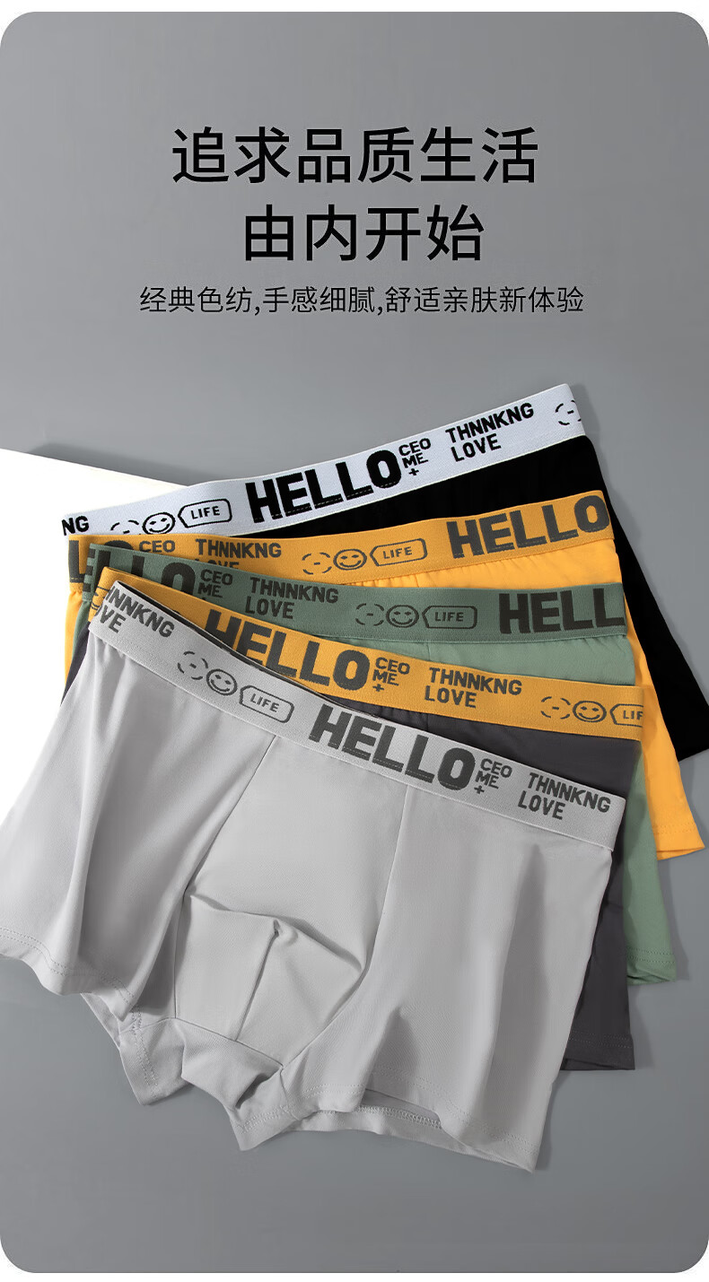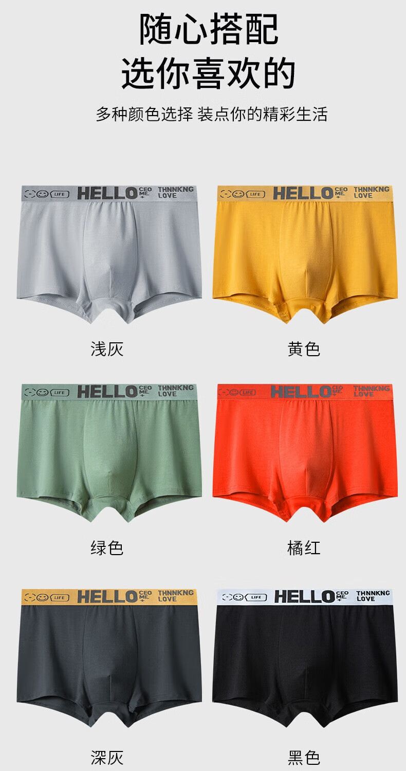 男士内裤男生四角裤头平角裤抗菌透气亲肤短裤衩男青少年大码中腰 【黑色+绿色+黄色+浅灰】 4条 L 建议80-100斤