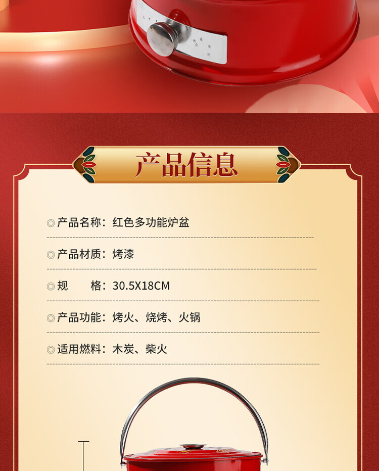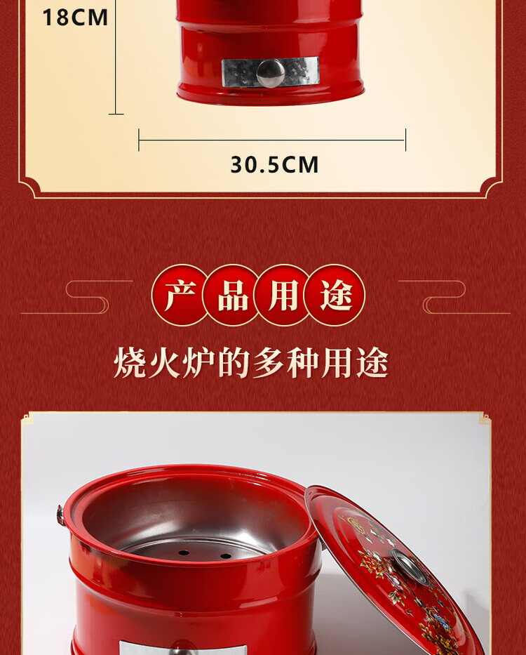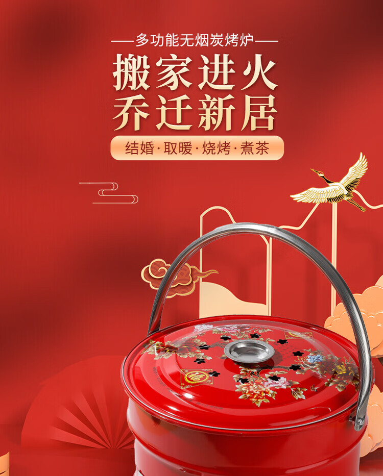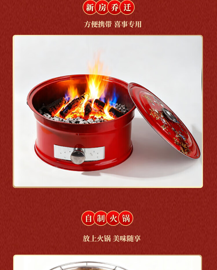 搬家火盆乔迁之喜新居火炉进新房入宅仪式新房入宅过火火盆烧烤炉 【新款实地】乔迁红炉+烧烤网+碳夹