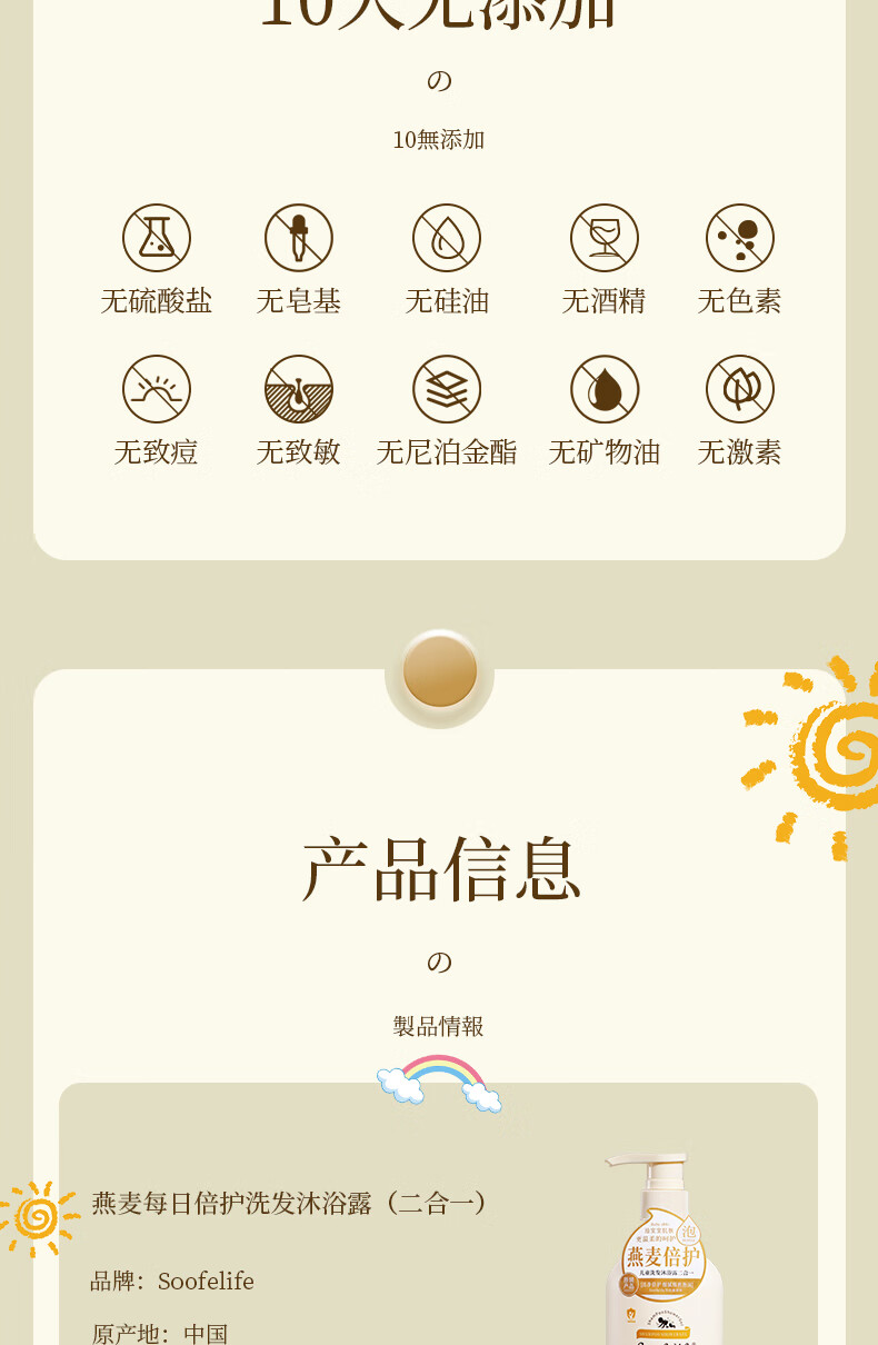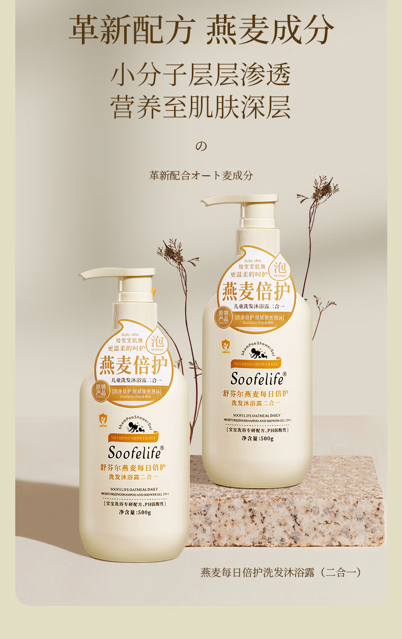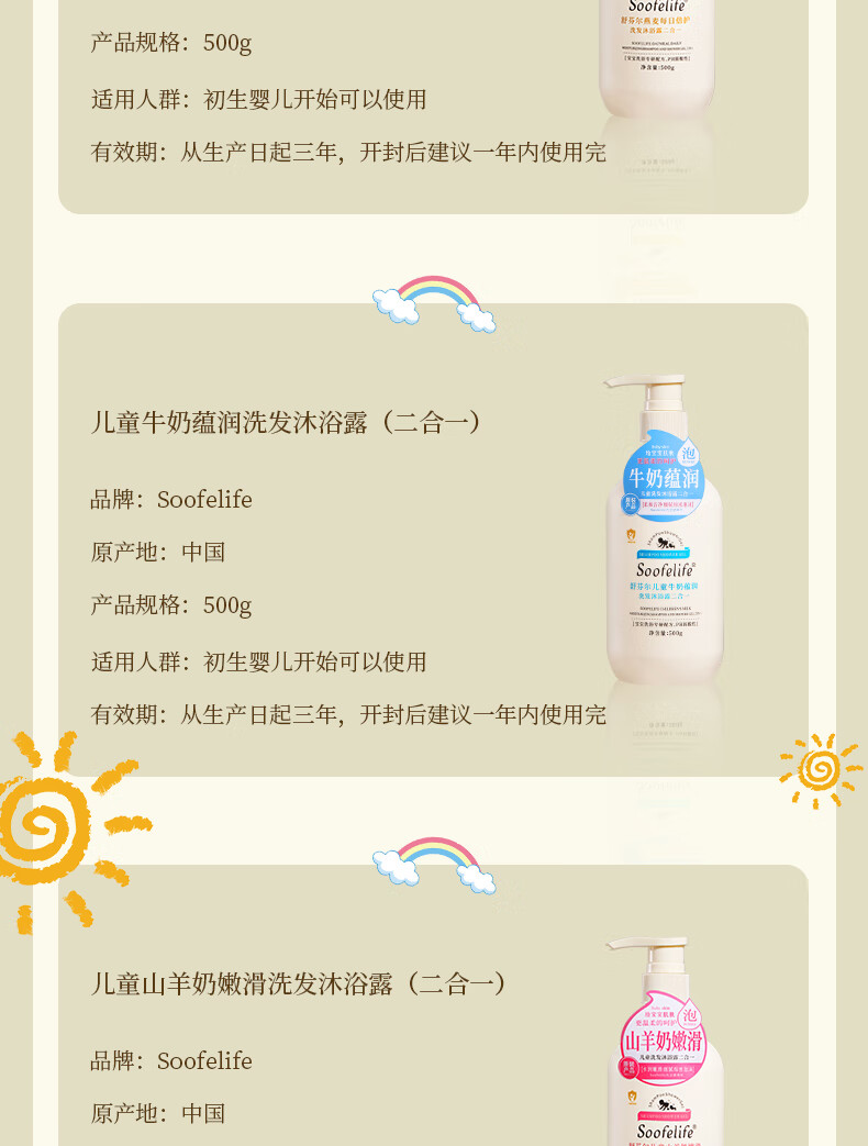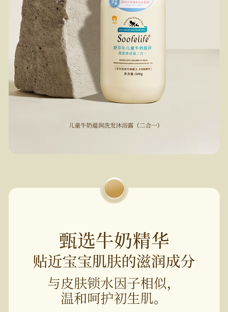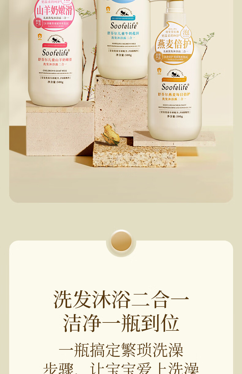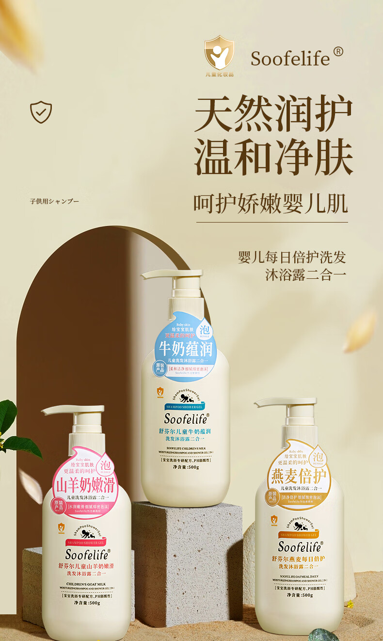 SOOFELIFE舒芬尔儿童温和洗发沐浴露二合一500g 山羊奶儿童洗沐二合一500g*1支