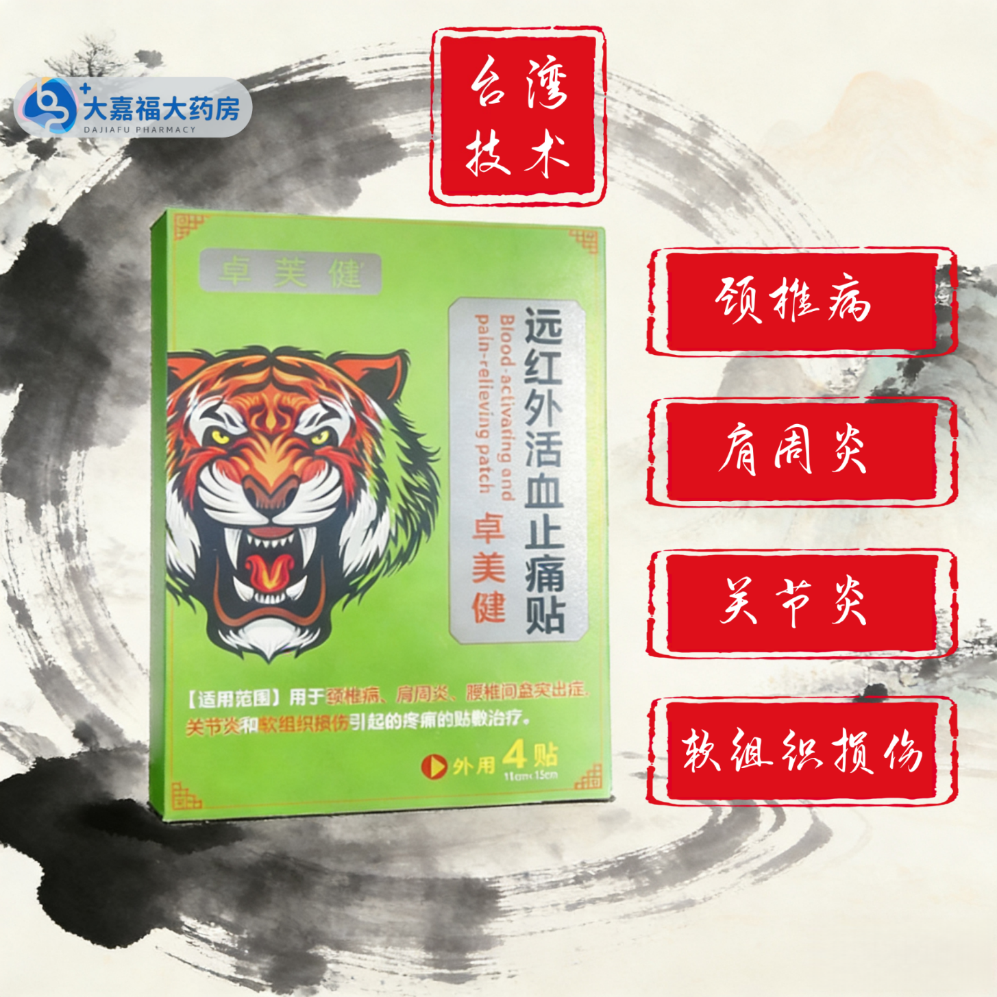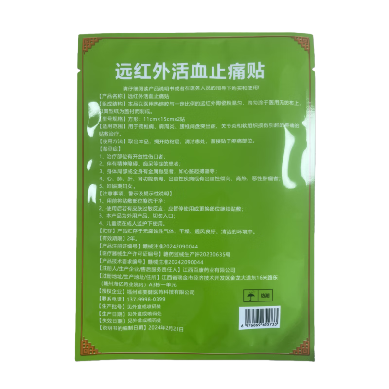 卓美健【关节通用】远红外活血止痛贴颈椎病肩周炎腰椎间盘突出症关节炎 11cm*15cm*4贴*【一盒】【实体药店】