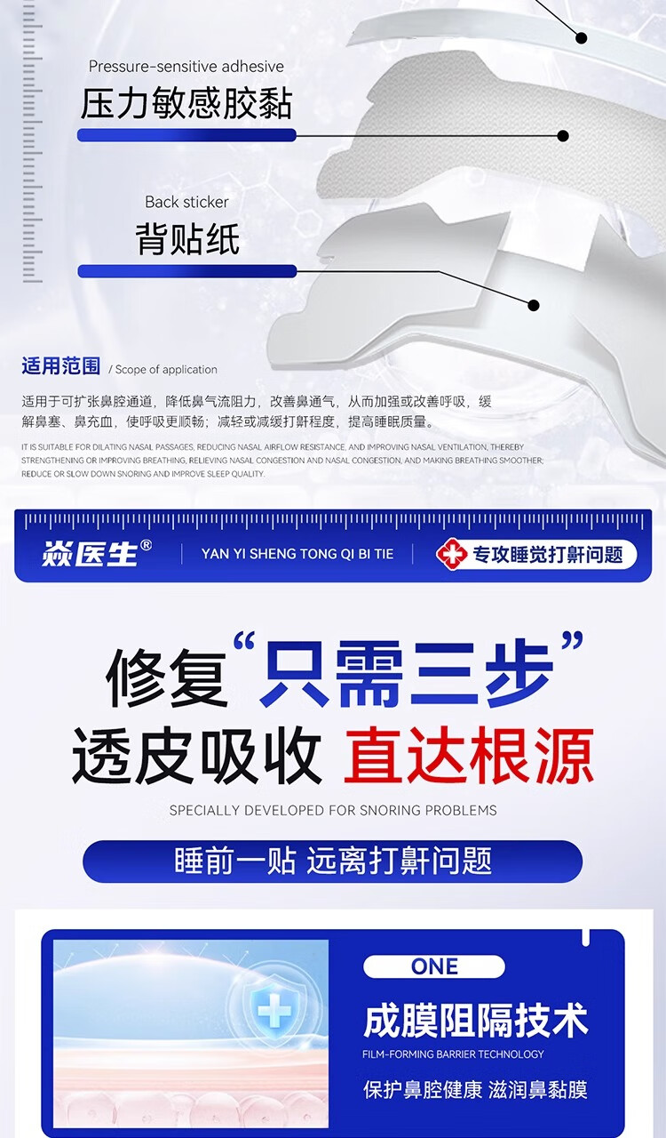焱医生通气鼻贴防止打呼噜打鼾器睡觉张嘴呼吸鼻塞鼻窦炎腺体肥大 一盒装【贵在运费 不推荐】