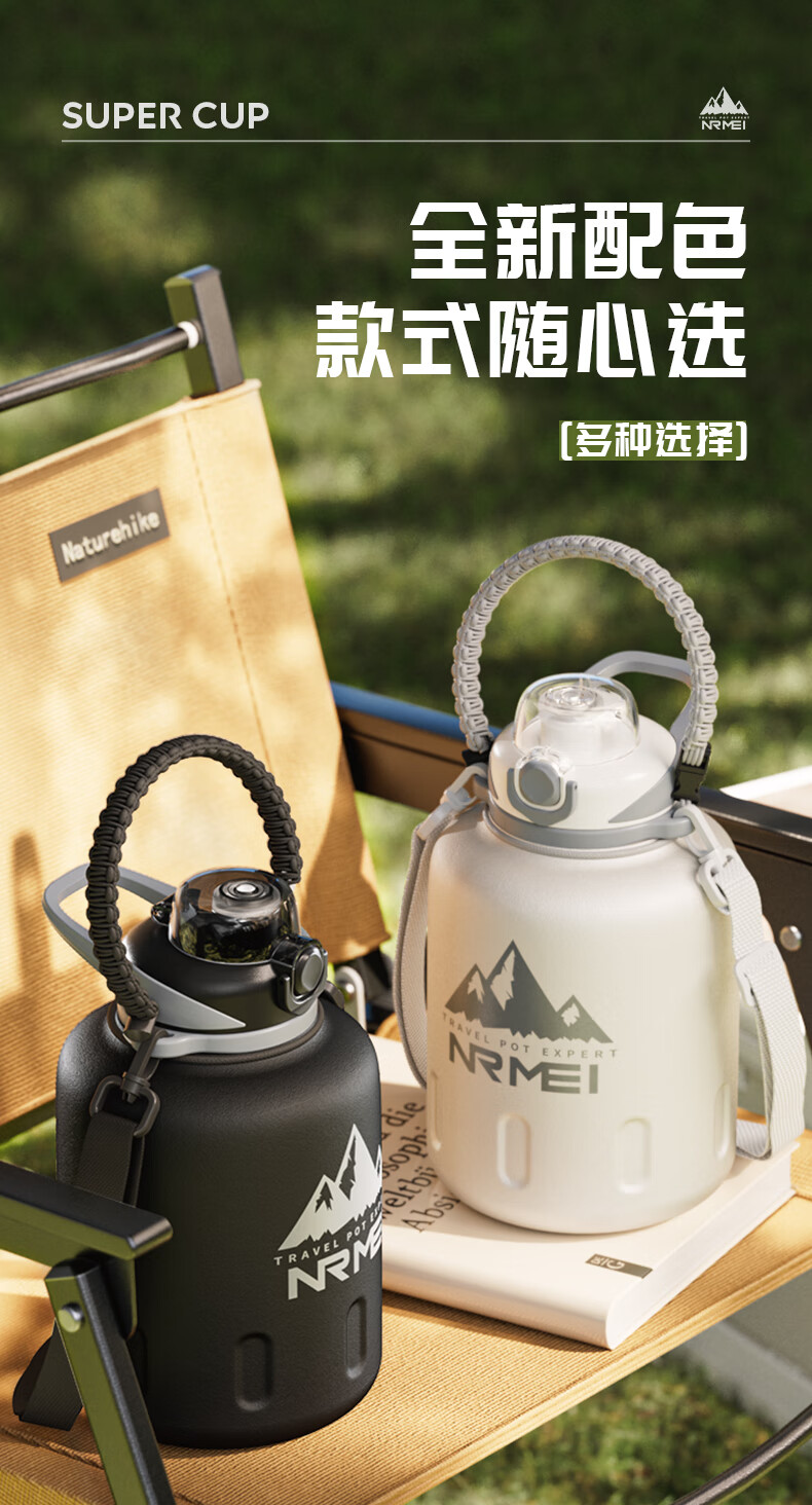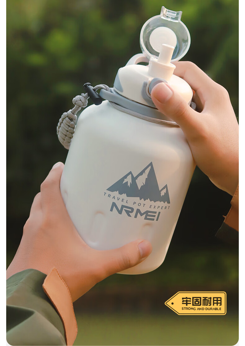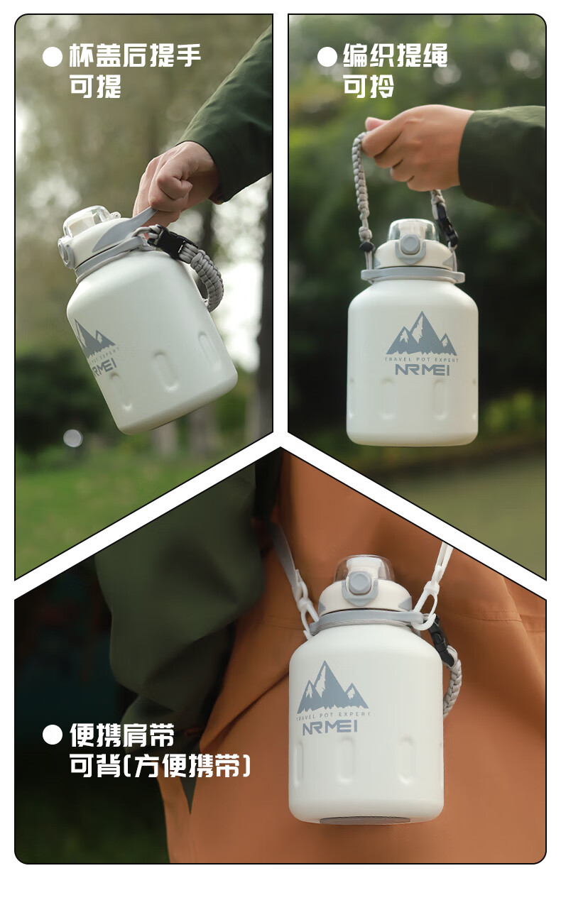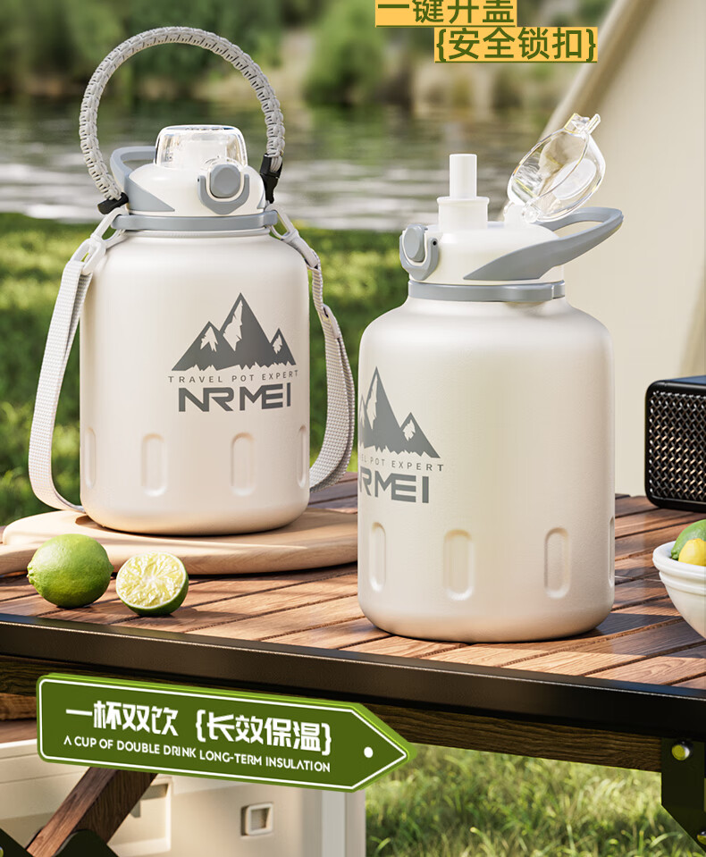 恩尔美(nRMEi)保温杯大容量男款保冷杯316L不锈钢吨桶吨户外2000ml冰霸大肚水壶 白色2000ml【抗菌316/冷热双保】