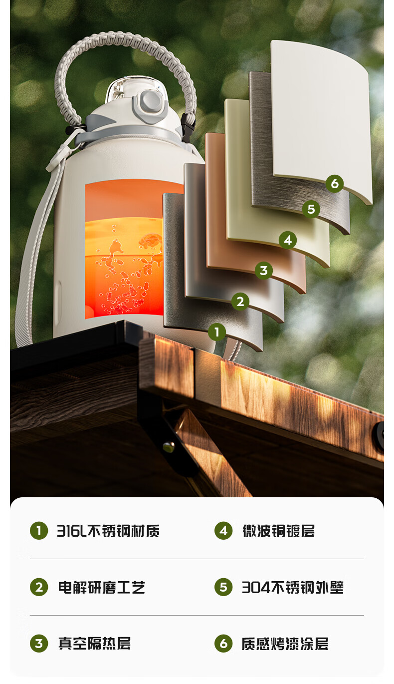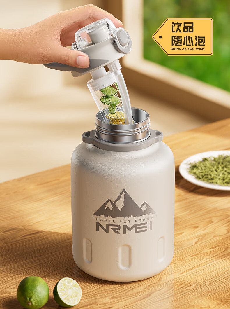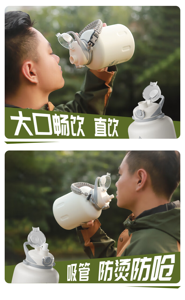 恩尔美(nRMEi)保温杯大容量男款保冷杯316L不锈钢吨桶吨户外2000ml冰霸大肚水壶 白色2000ml【抗菌316/冷热双保】