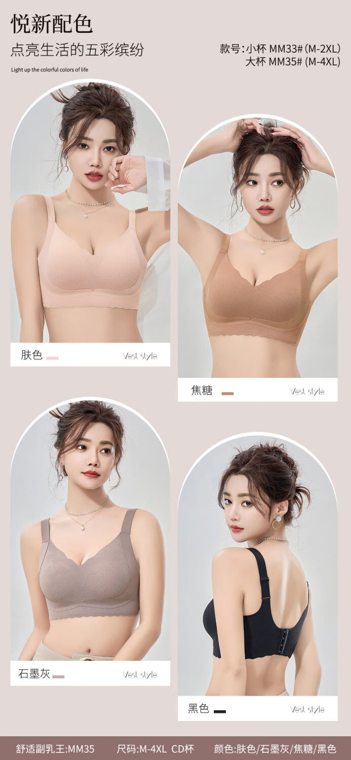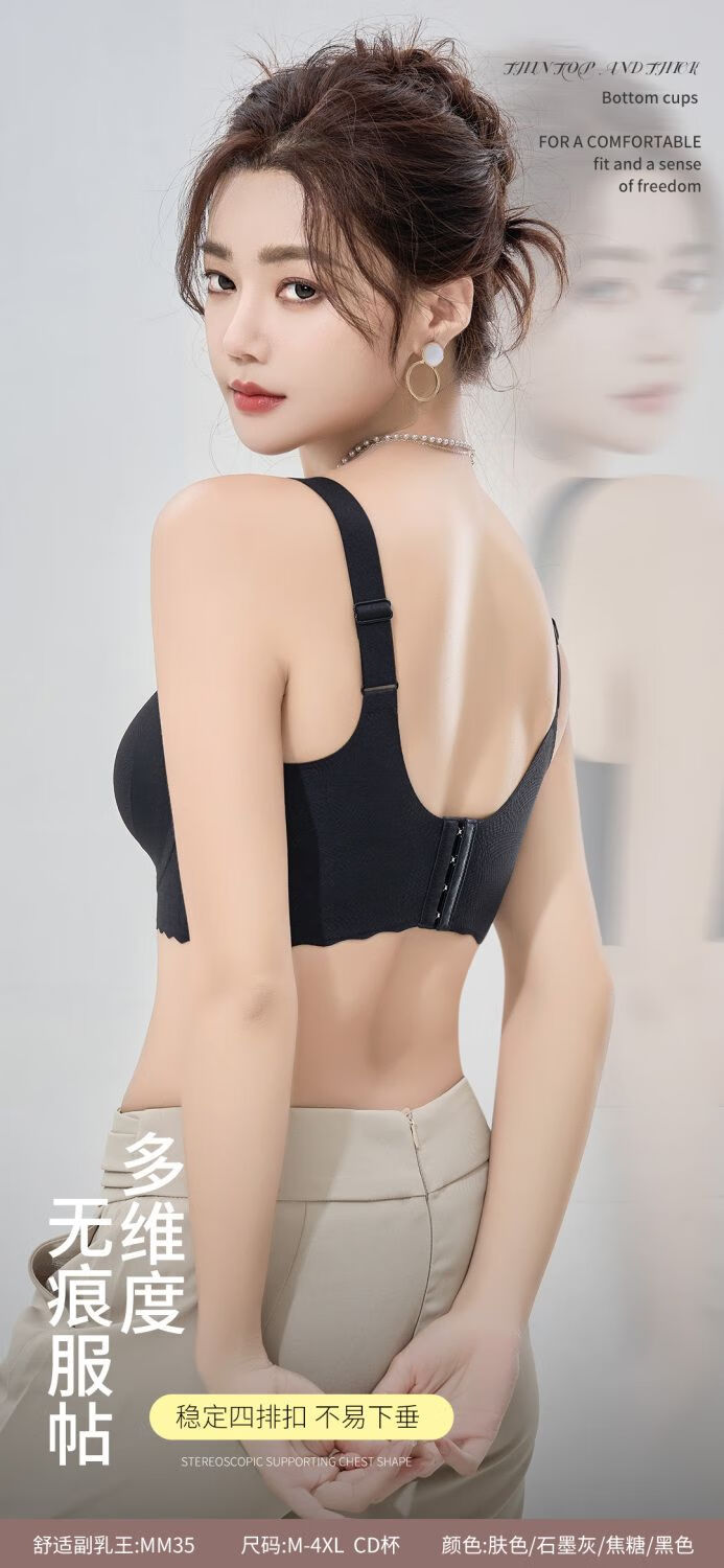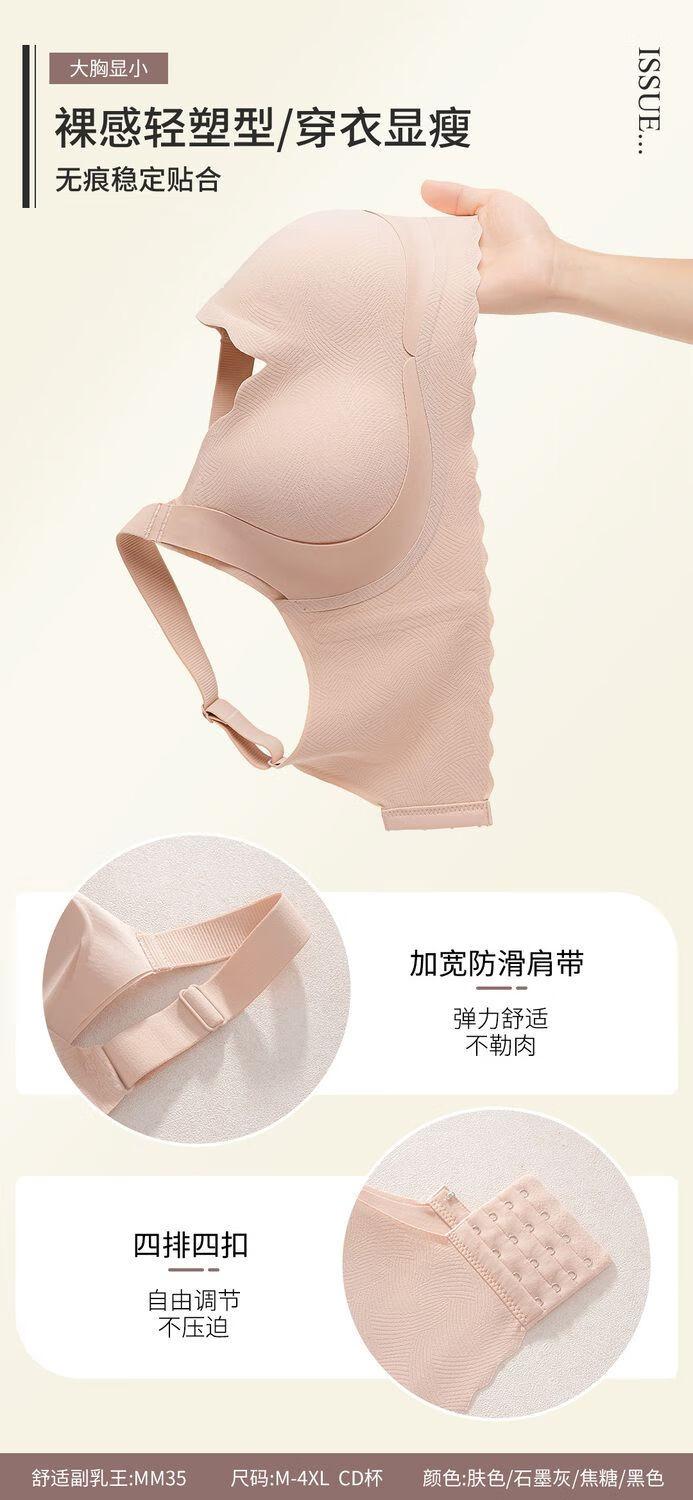 千奈美无痕聚拢收副乳防下垂薄款无钢圈软支撑文胸内衣 肤色 L (80CD)