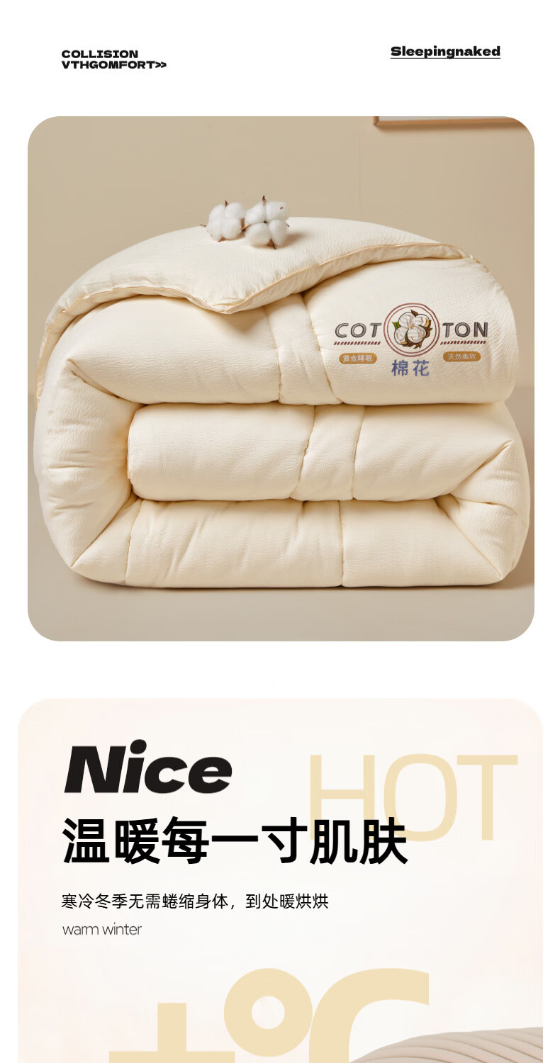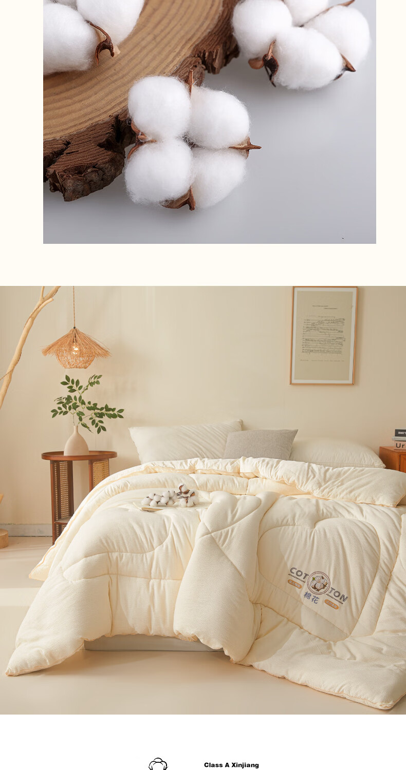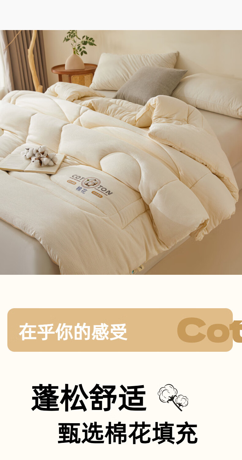 猫人(MiiOW)新疆纯棉花被子被芯冬被 加厚冬季棉被宿舍单双人被褥春秋被 棉语提花被-白 150*200cm约4斤春秋被