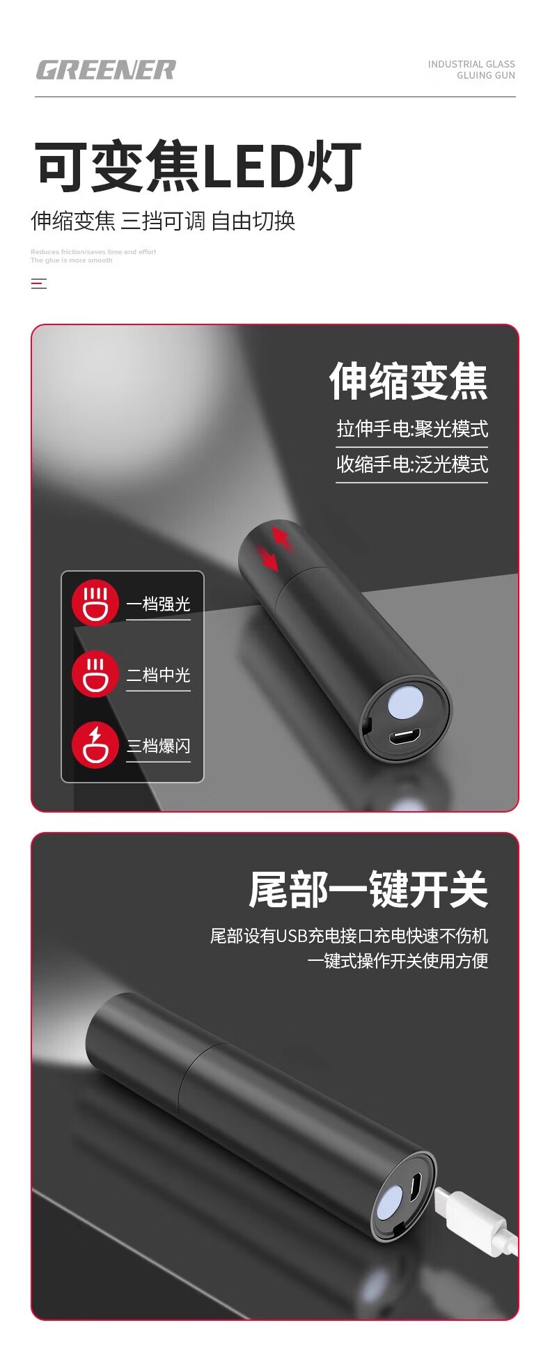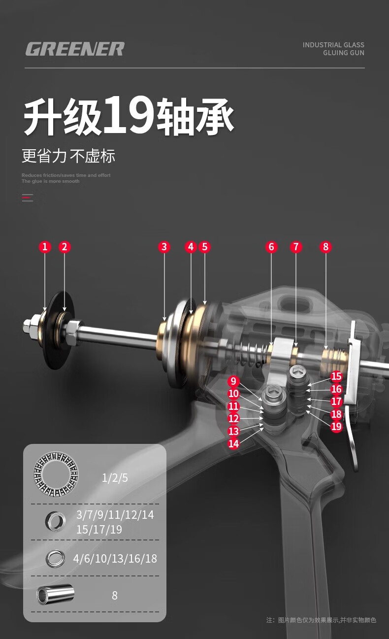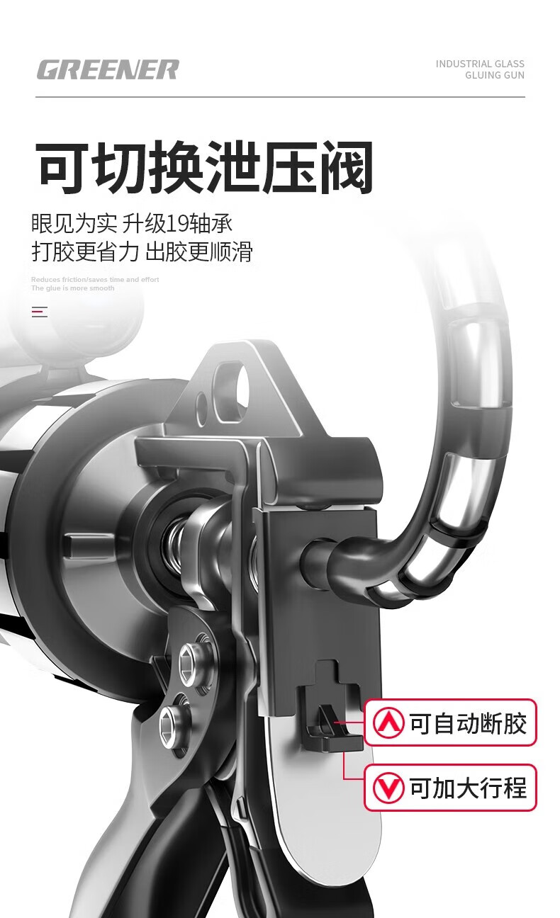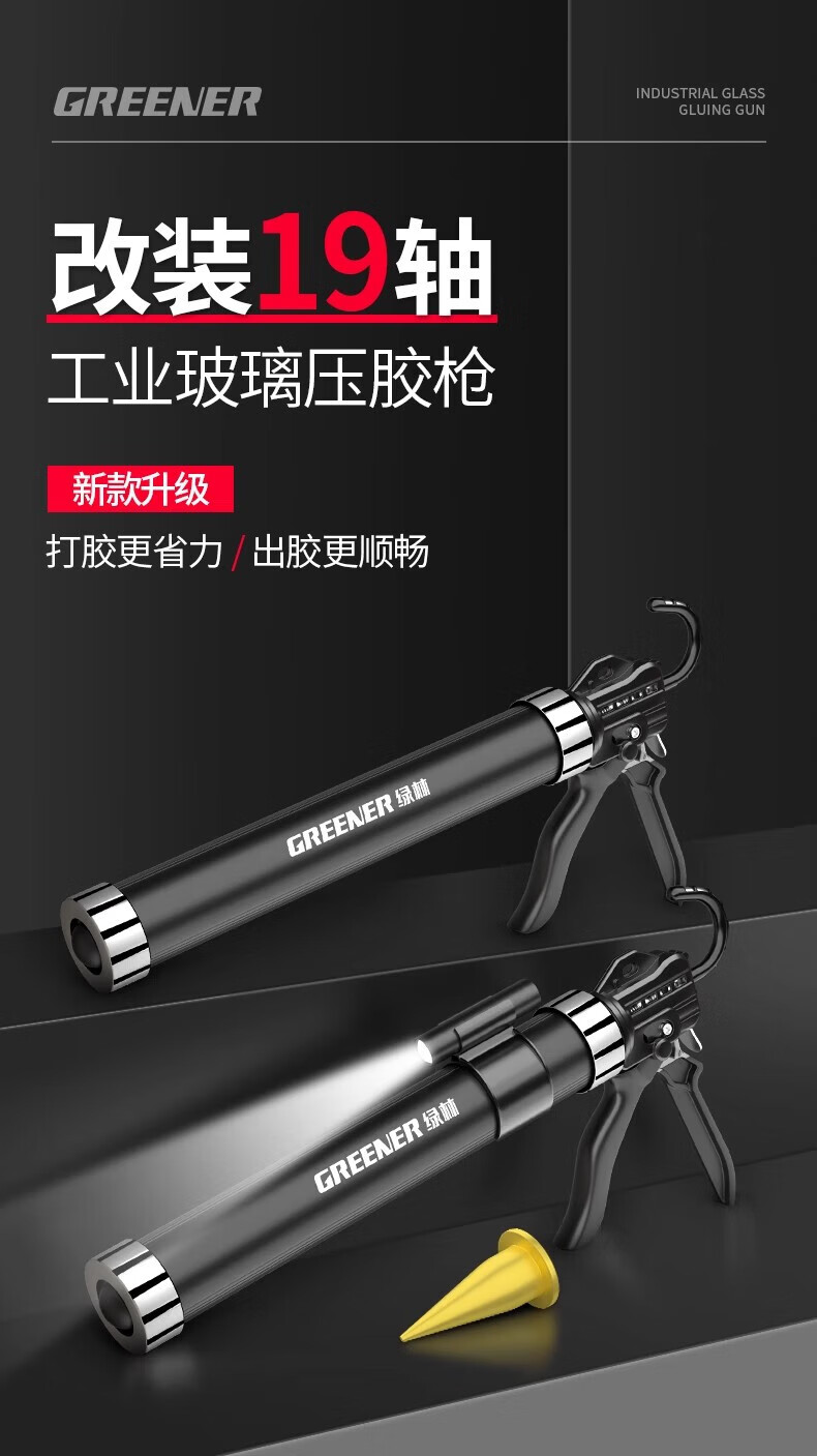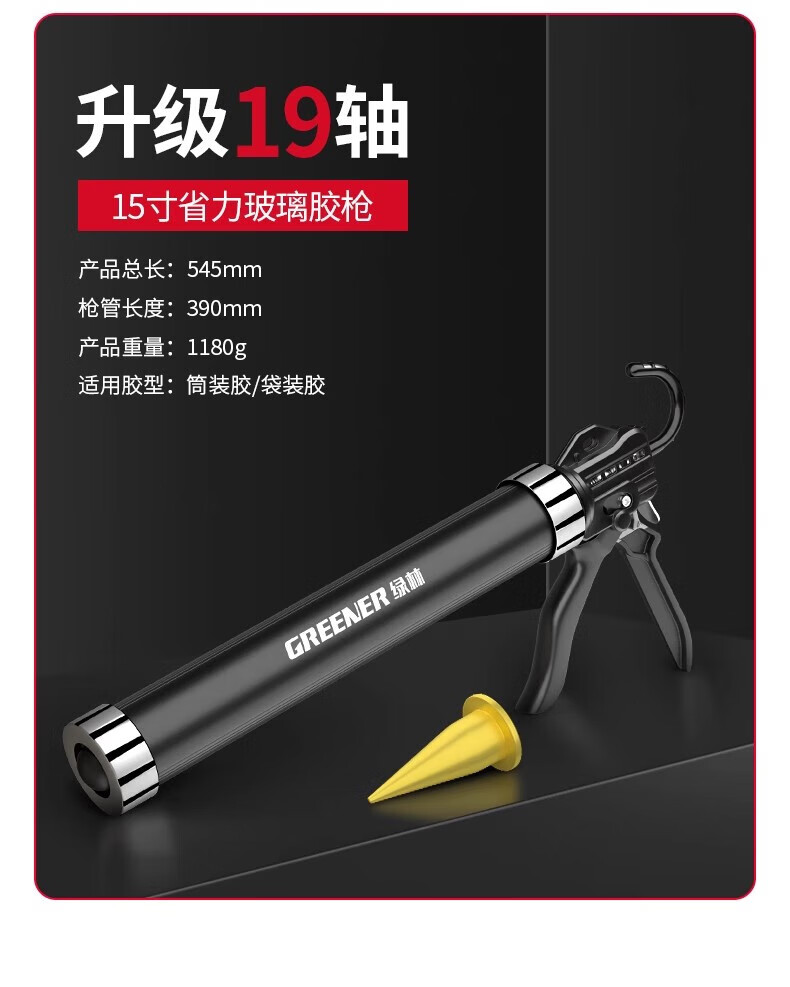 绿林(GREENER)玻璃胶枪结构胶照明打胶神器专用自动断胶省力美容胶软胶轴承密封 十九轴15寸【标配】+礼包