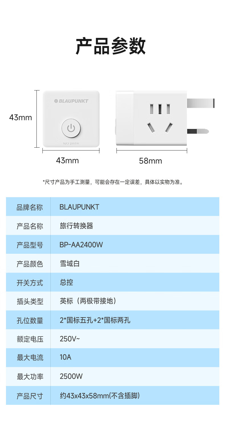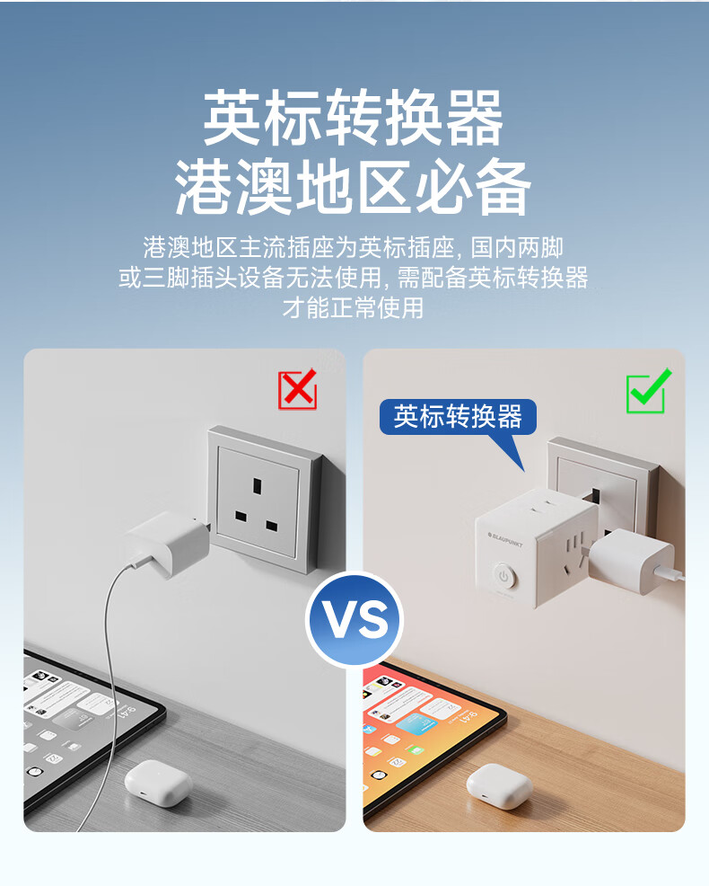 BLAUPUNKT蓝宝英标转换插头/旅行插座/电源转换器/小魔方转换头/ 英国新加坡香港澳门迪拜马来西亚