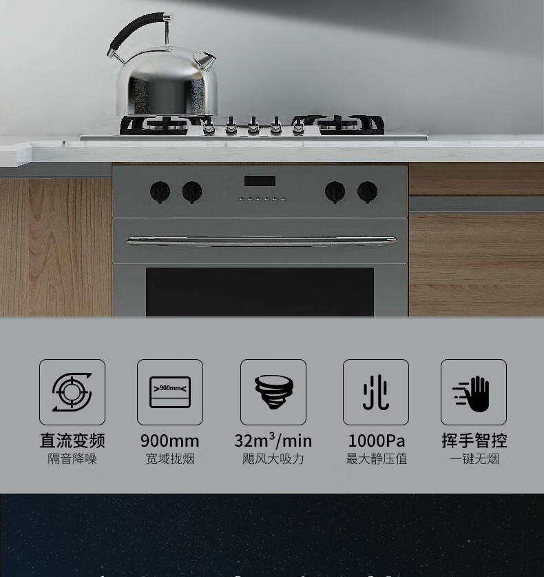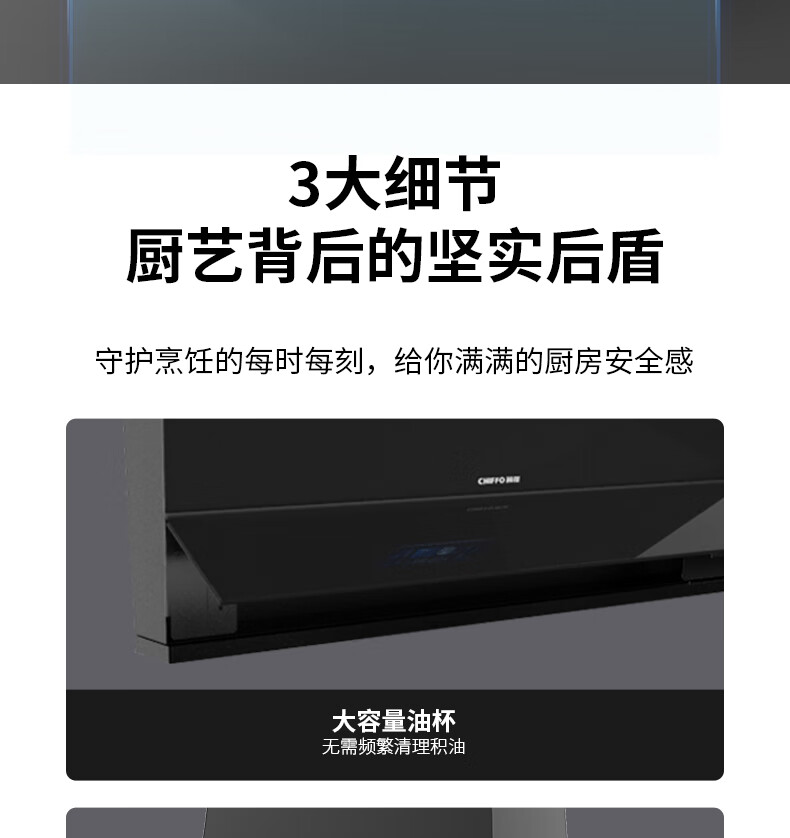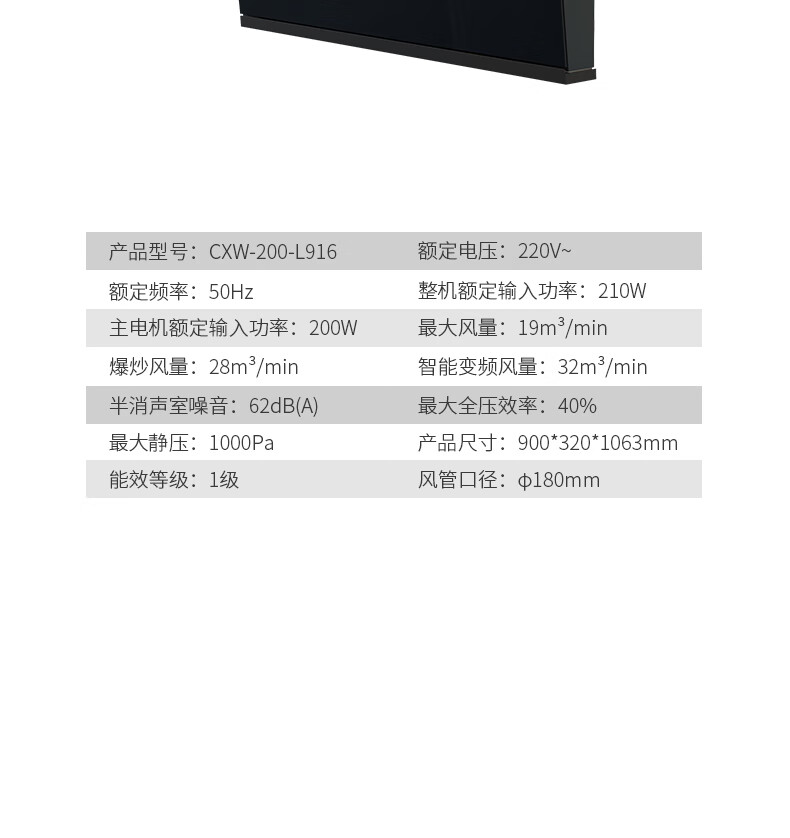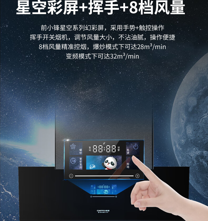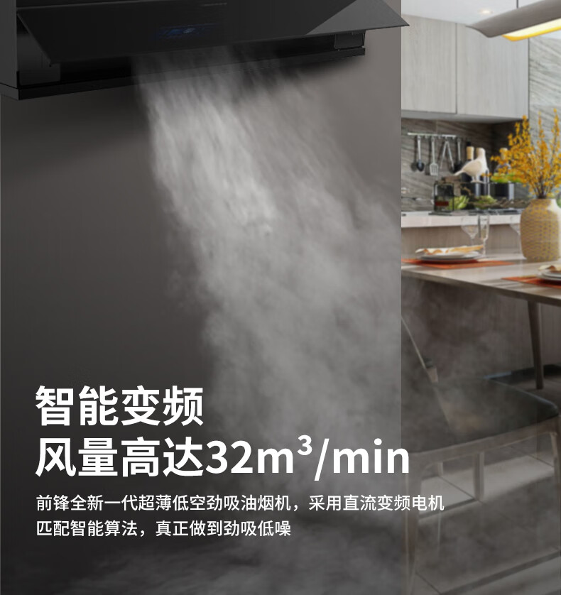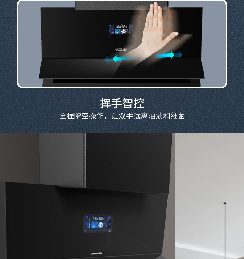 前锋(CHIFFO)家用油烟机 直流变频宽域拢烟32立方变频风量挥手智控1000pa静压防倒灌8档风量调节CXW-200-L916 32立方智能变频风量大吸力直流变频