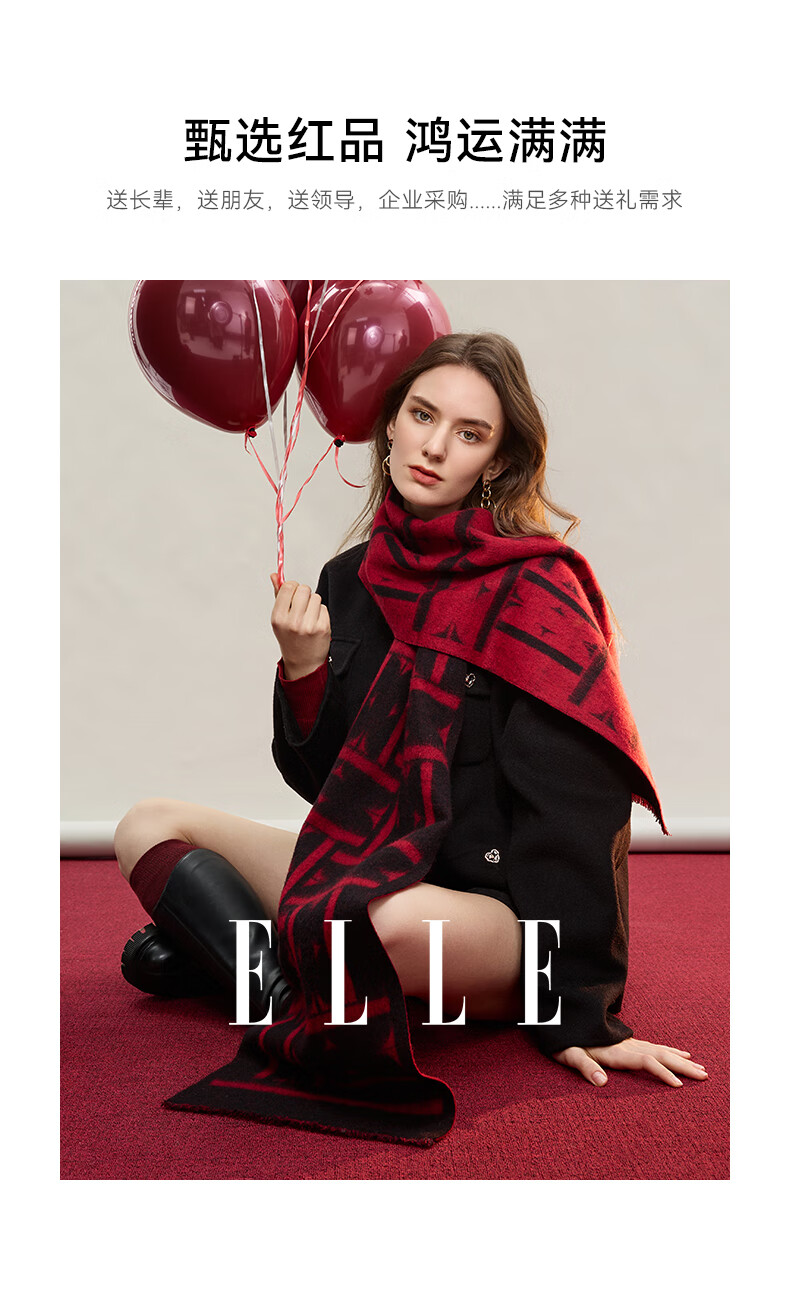 ELLE【礼盒装】100%羊毛围巾男女士秋冬保暖围脖披肩送礼生日新年