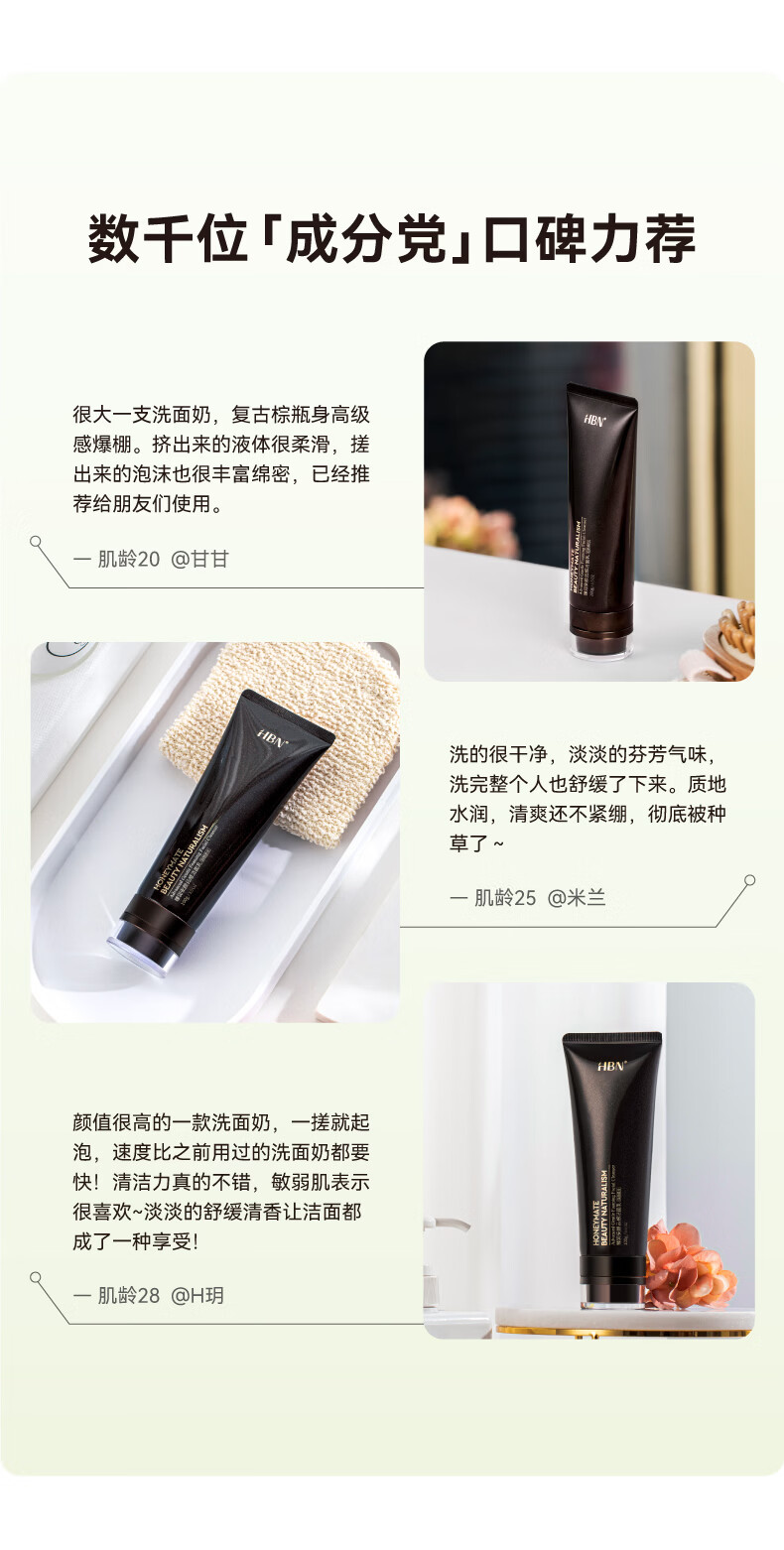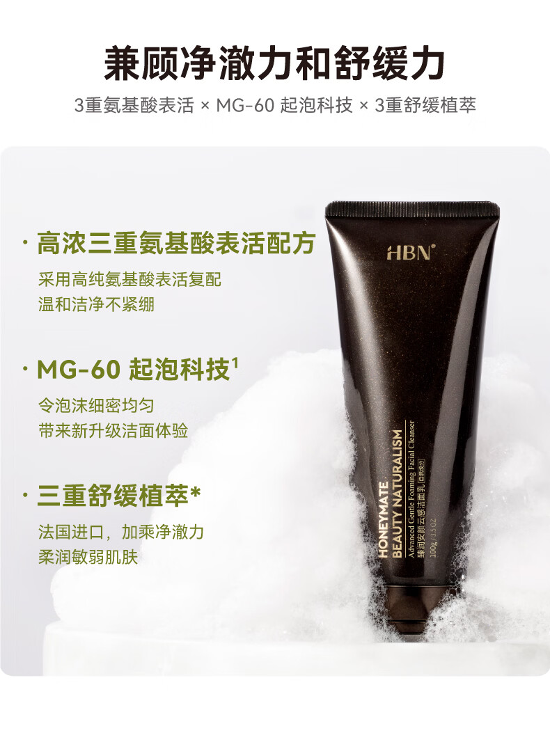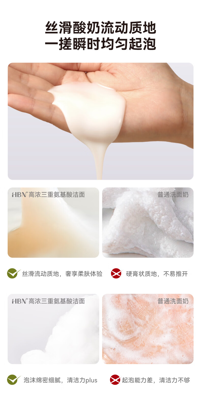 HBN洗面奶三重氨基酸表活男女洁面乳敏感肌保湿护肤100g*2生日送礼