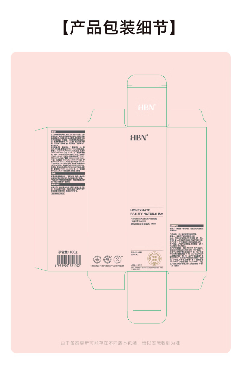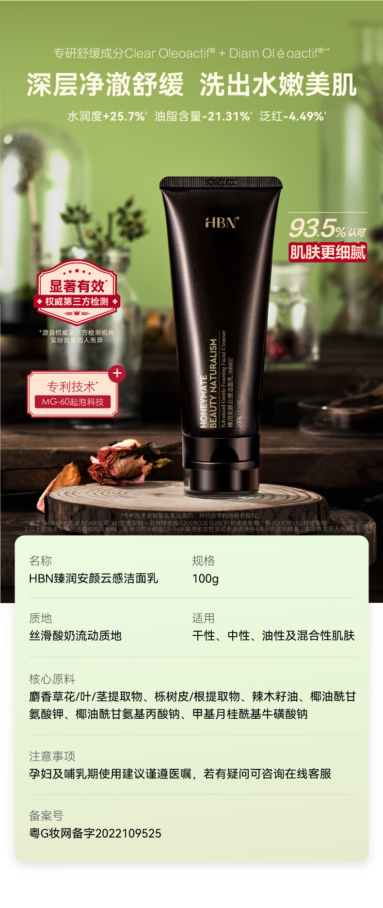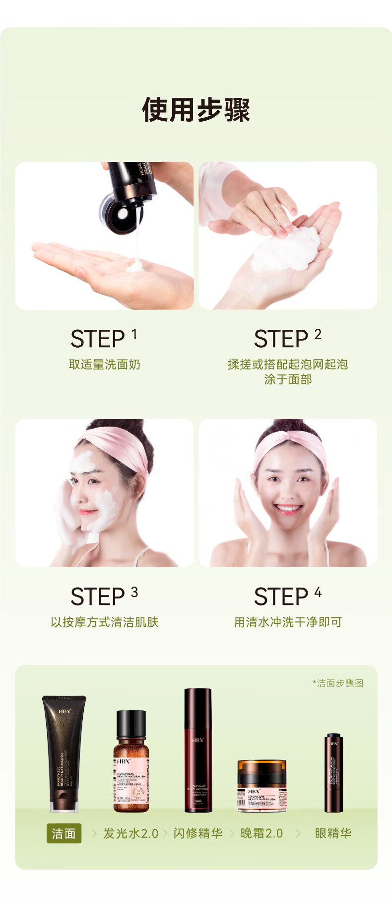 HBN洗面奶三重氨基酸表活男女洁面乳敏感肌保湿护肤100g*2生日送礼