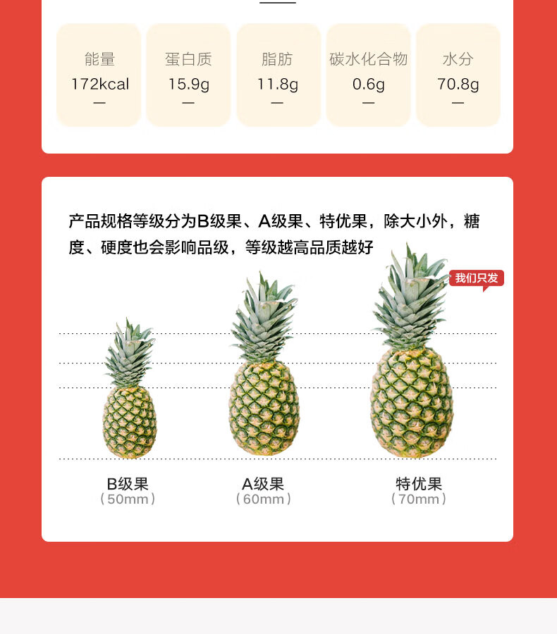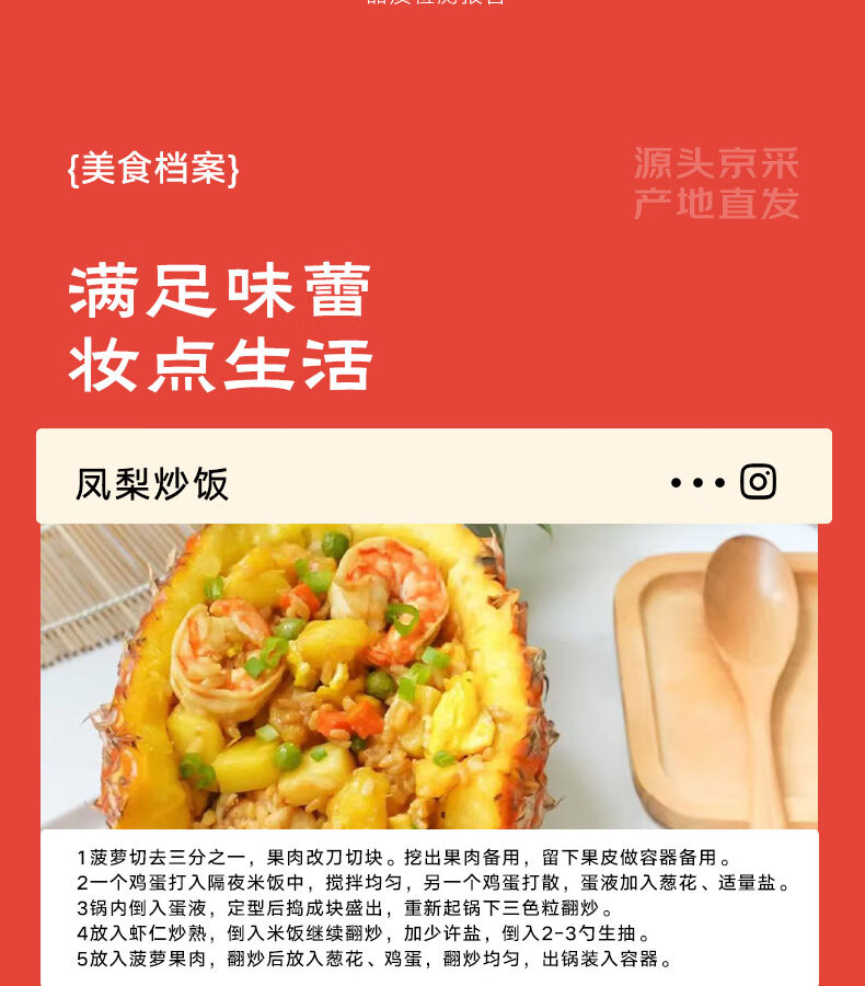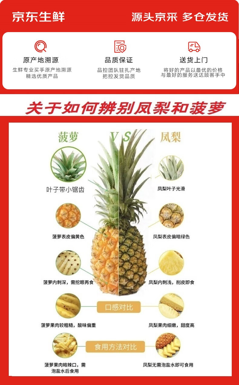 京鲜生海南金钻凤梨 净重4.5斤单果900g起 2-3粒树上熟源头直发包邮