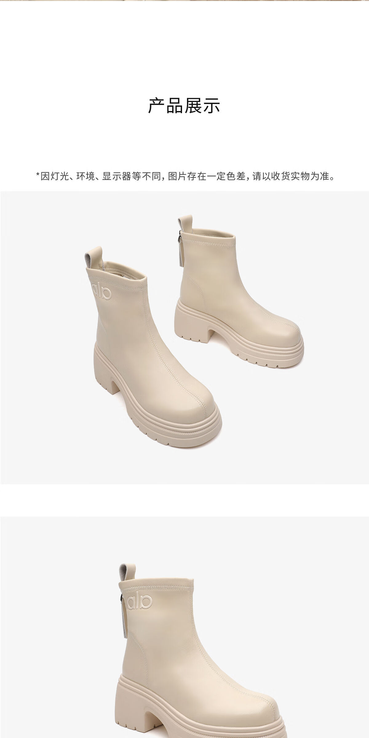 月芽儿高跟短靴女款2025新款冬季切尔西靴瘦瘦靴短筒弹力踝靴 绒里米白色14T 38