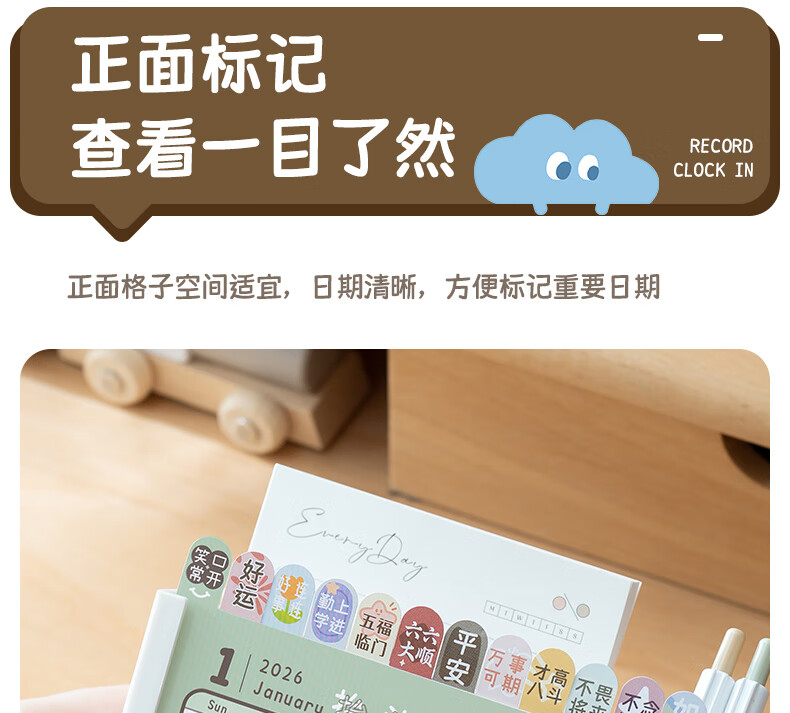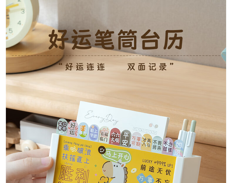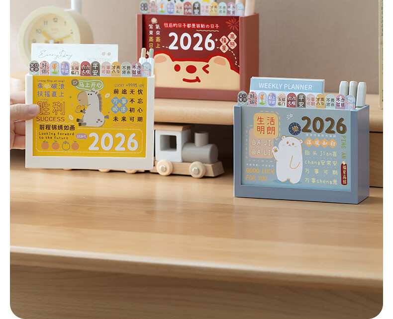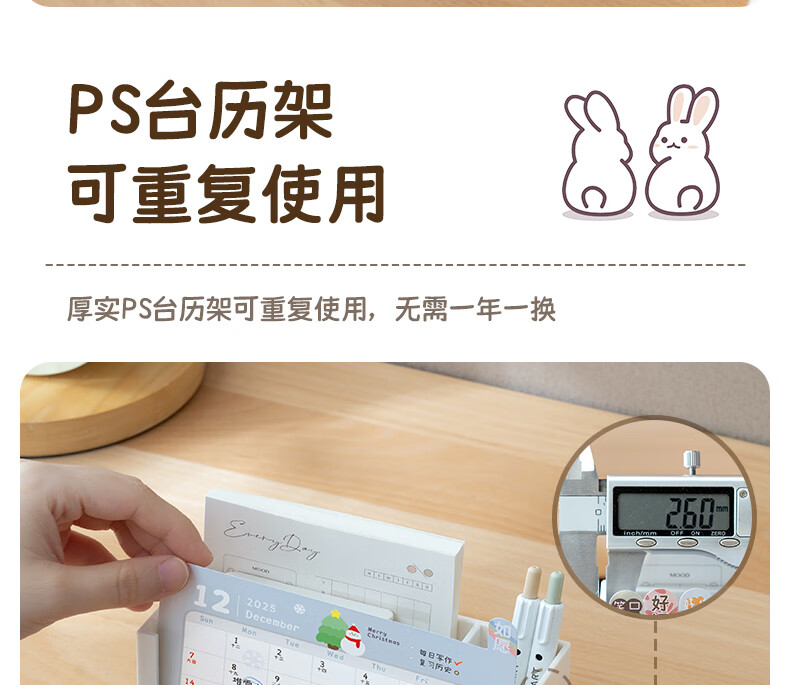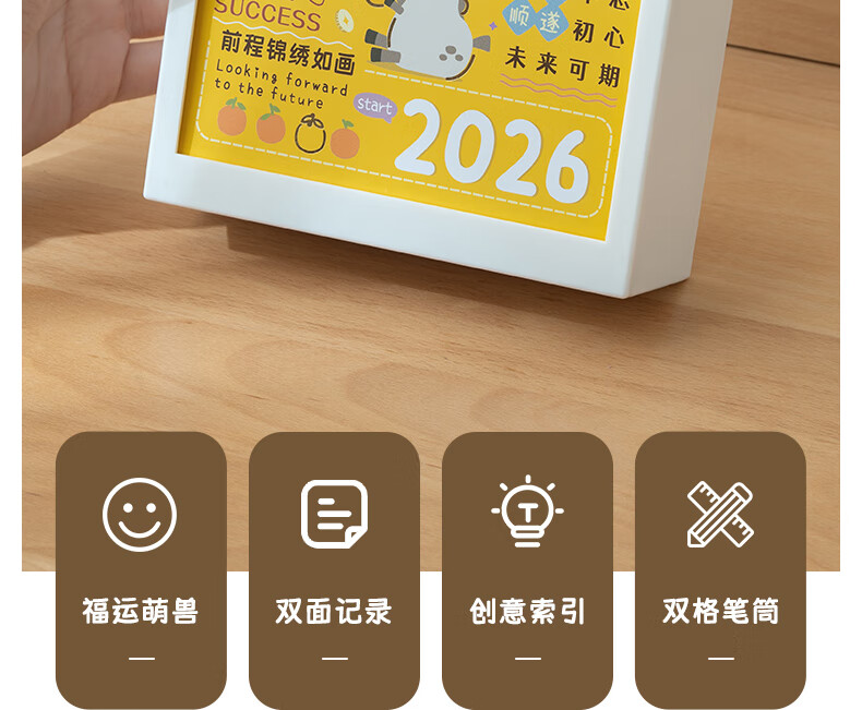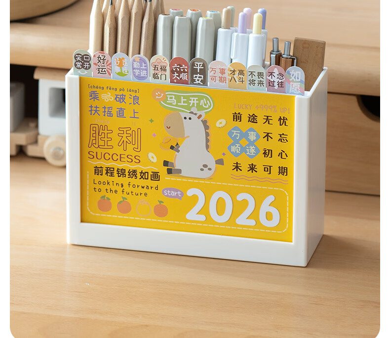 时代良品卡通笔筒台历2026年新款桌面创意摆件活动日历高考倒计时月历办公室26年台历式记事本 白色(台历日期:2026年)