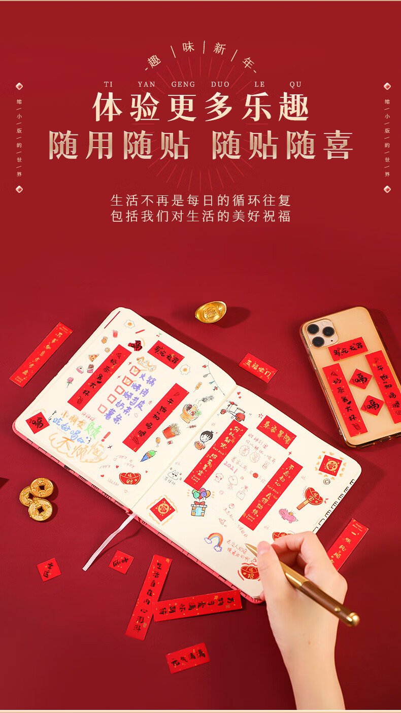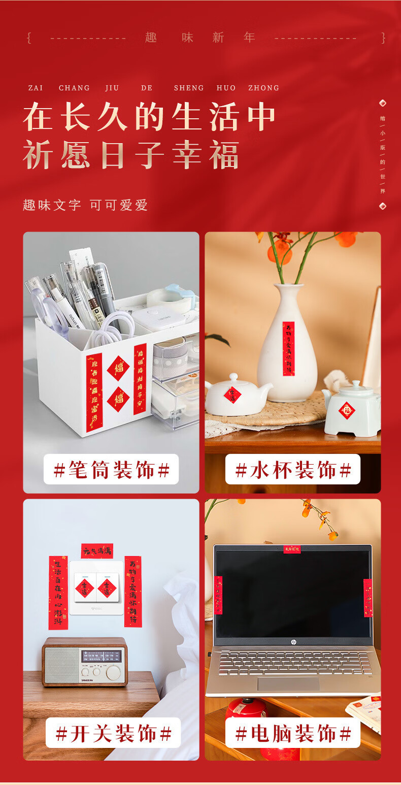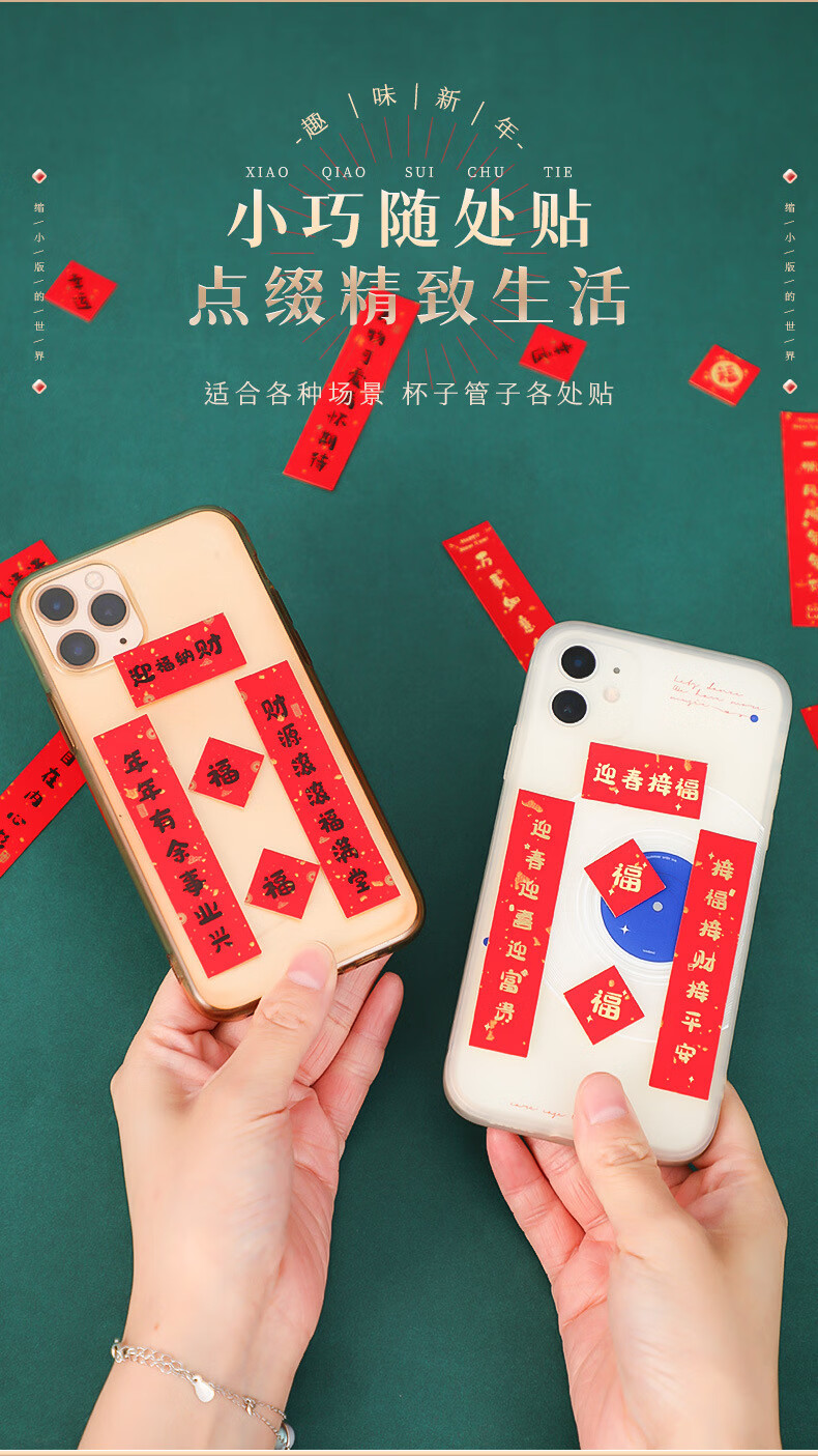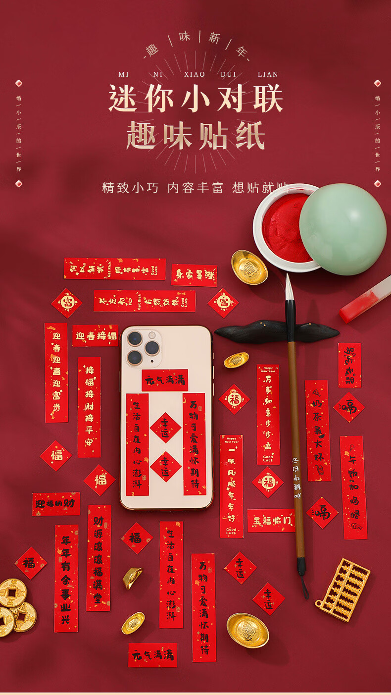 手机对联开关小对联电脑贴纸迷你春联趣味春节装饰 全家福6套不重复