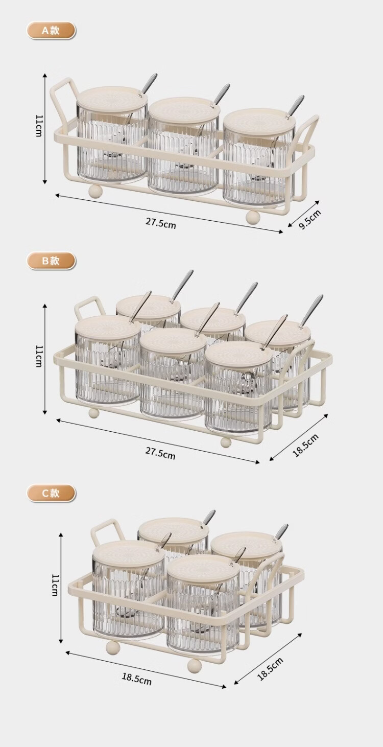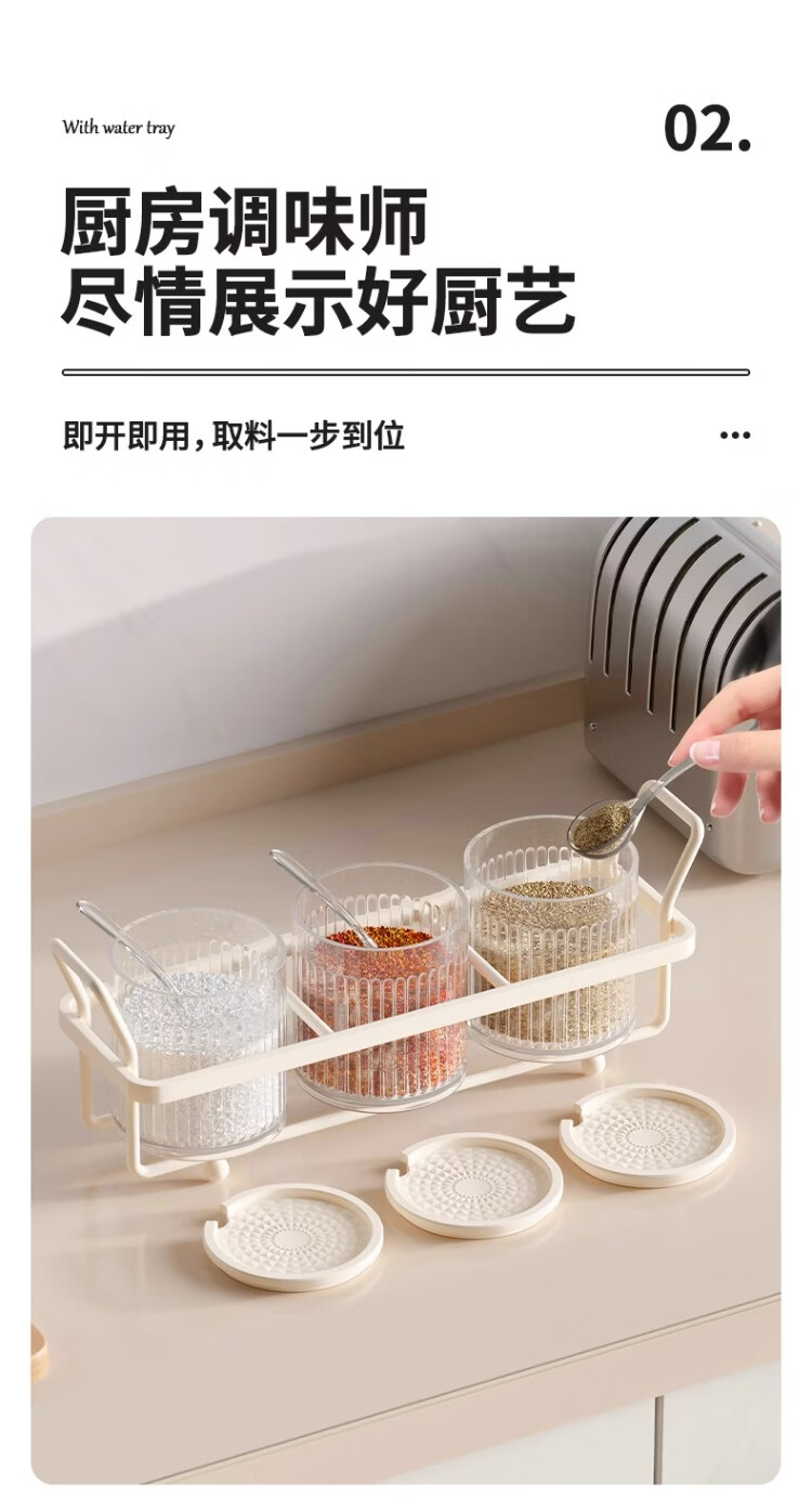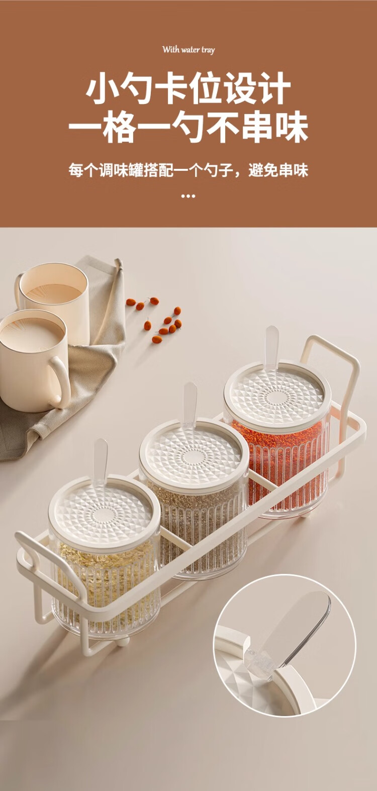 尔思家厨房置物架家用收纳调料盒2025新款台面调料瓶罐全套桌面储物盒 奶油白-3个装