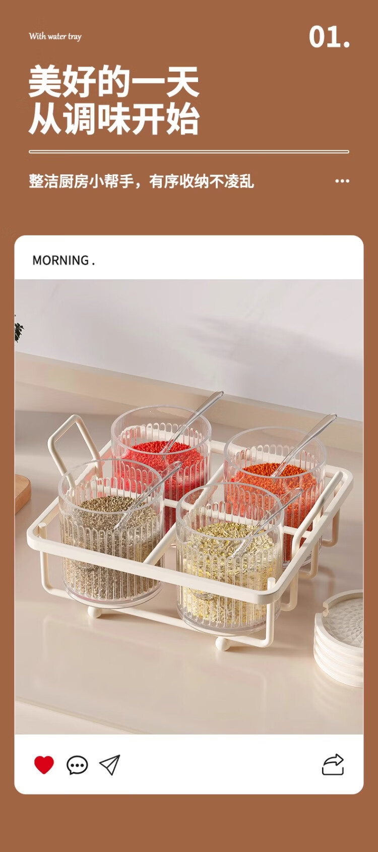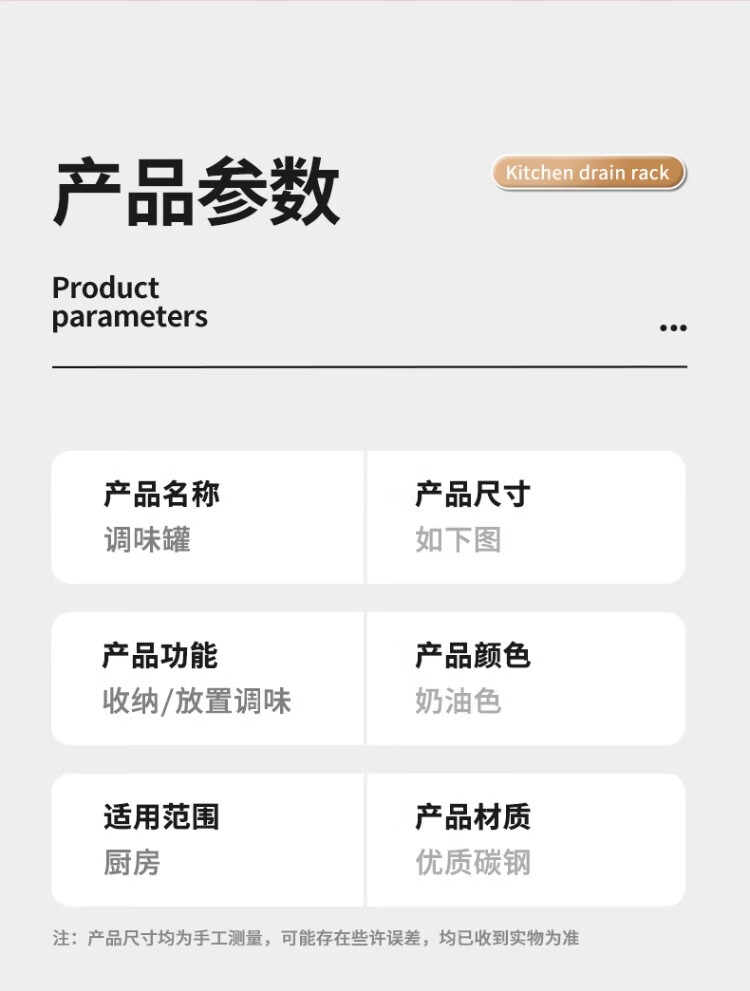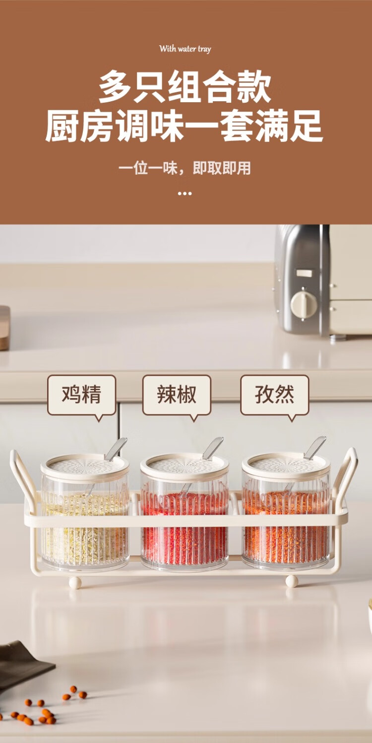 尔思家厨房置物架家用收纳调料盒2025新款台面调料瓶罐全套桌面储物盒 奶油白-3个装