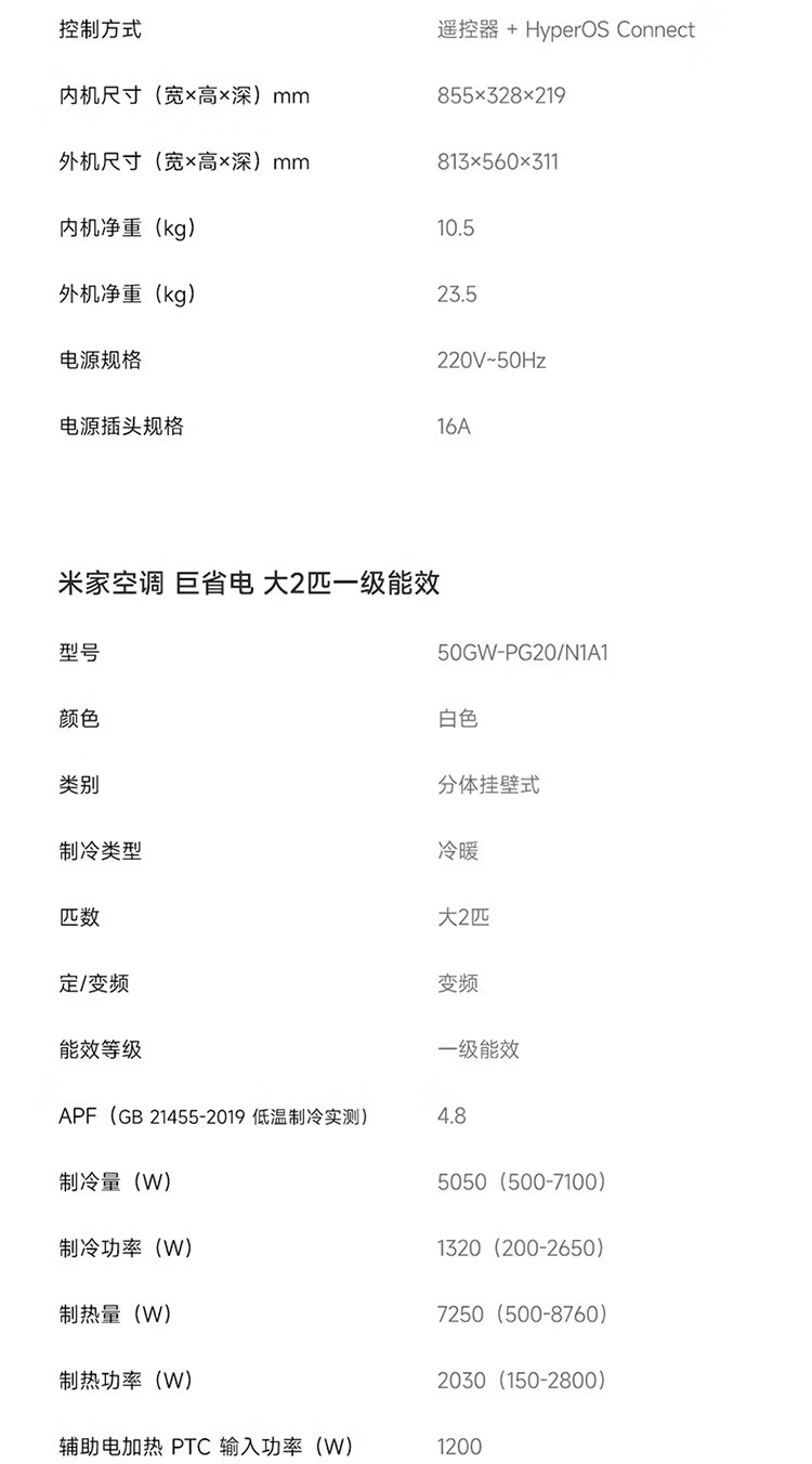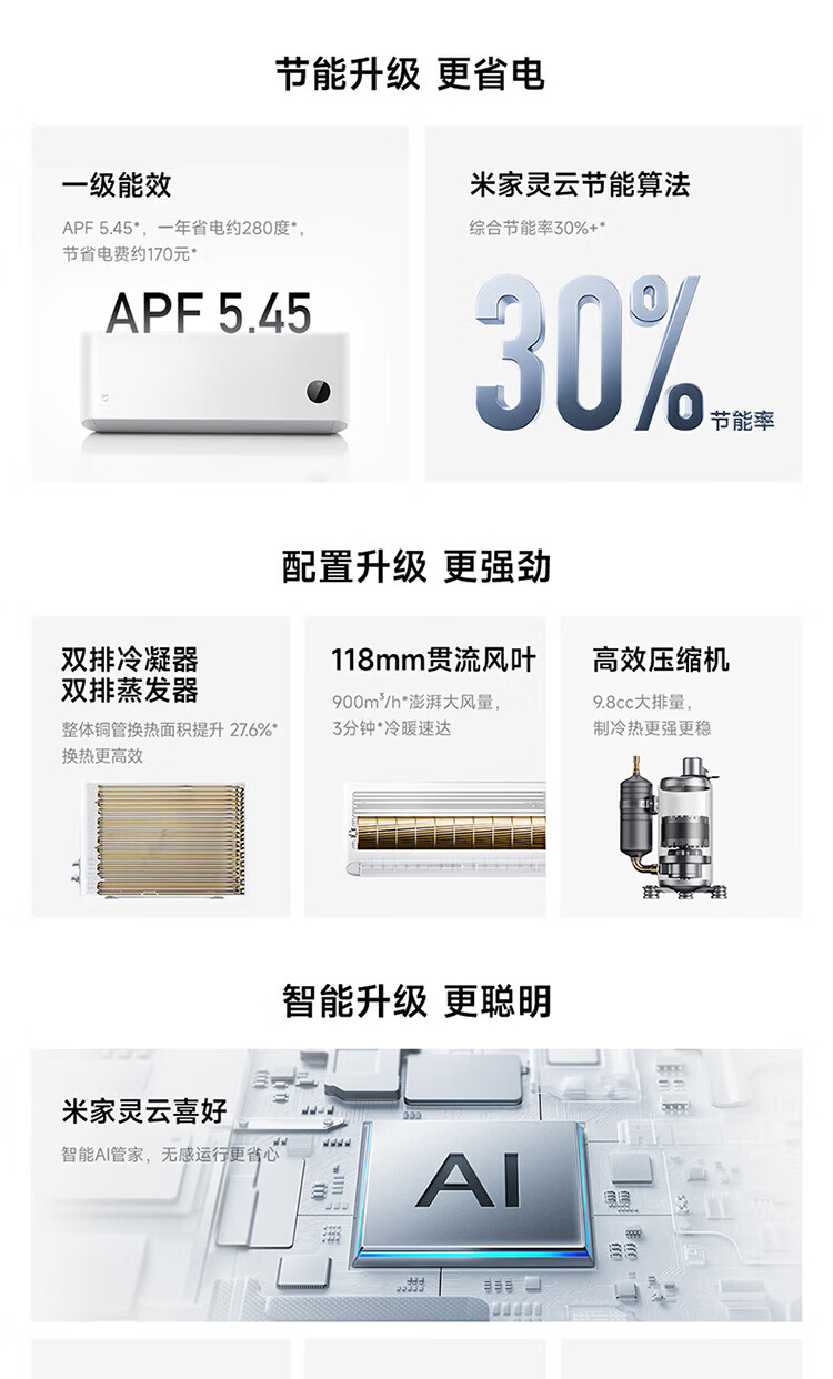 米家小米空调3匹 巨省电2026双排款 双排铜管内外机 家用卧室客房空调挂机 一级能效 72GW-PG30/N1A1 巨省电 【2026 升级款】 3匹