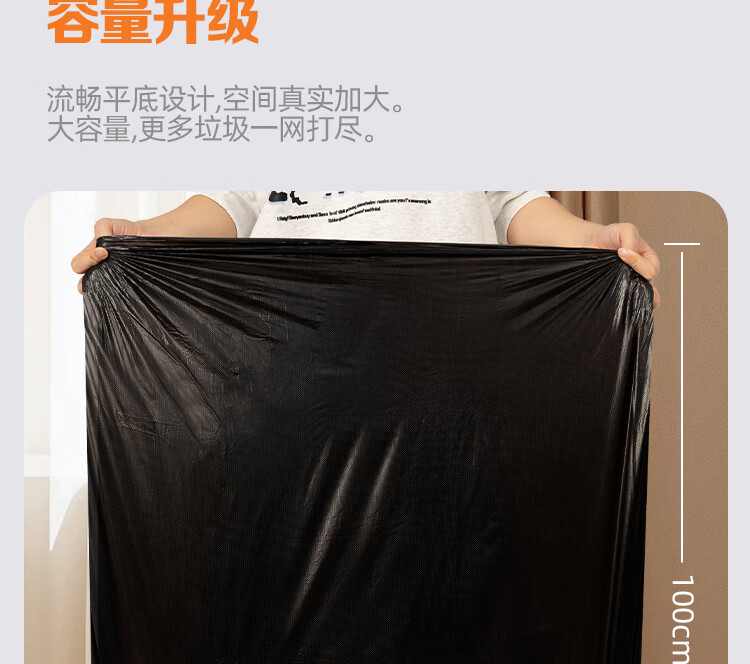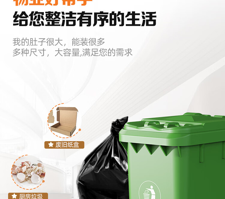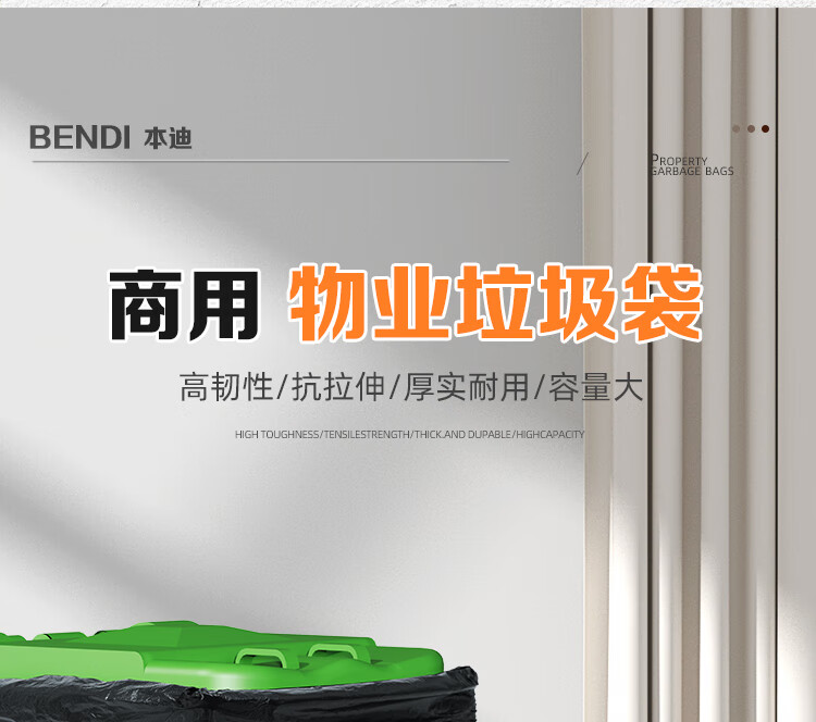 本迪物业大垃圾袋黑色80*100cm*50只单面1.5丝保洁加厚款特大号垃圾袋