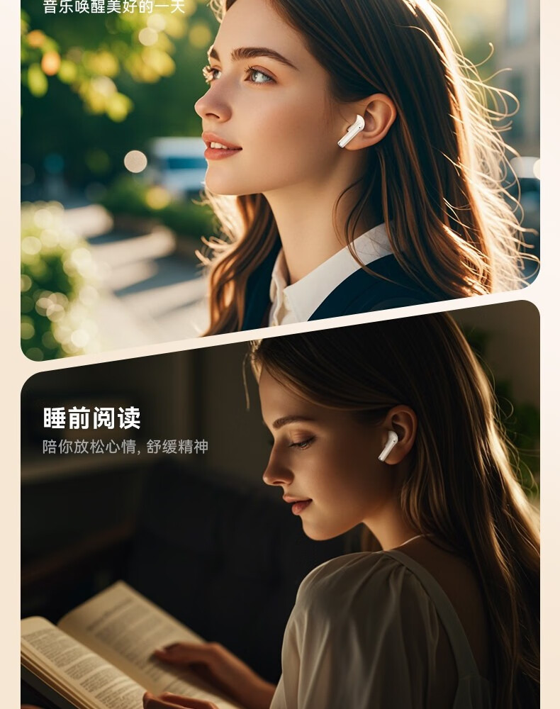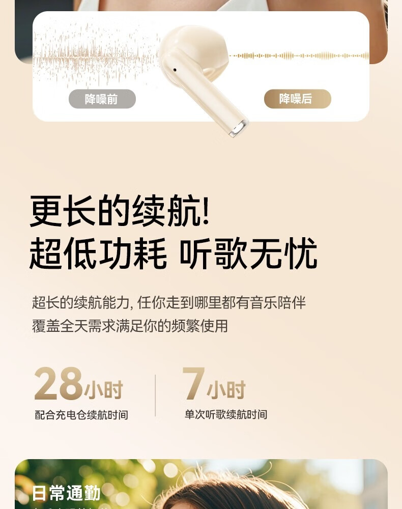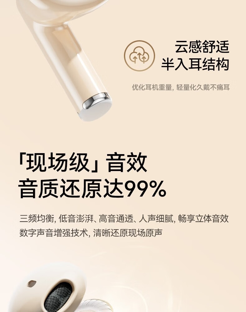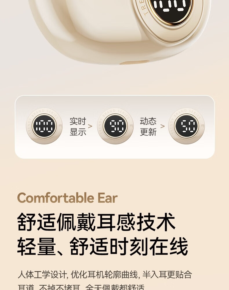 罗凡尼(Rofani) J08C 智能数显HIFI音质长续航运动跑步游戏低延迟通话降噪便携时尚学生情侣通用半入耳式蓝牙耳机 肤色顶配款-杜比音效-智能高清降噪-5.4双芯片