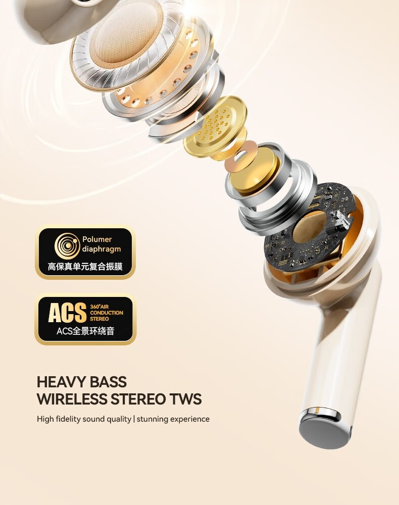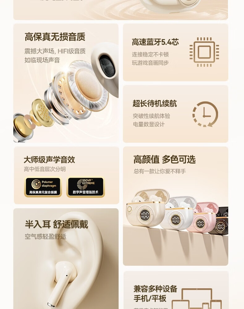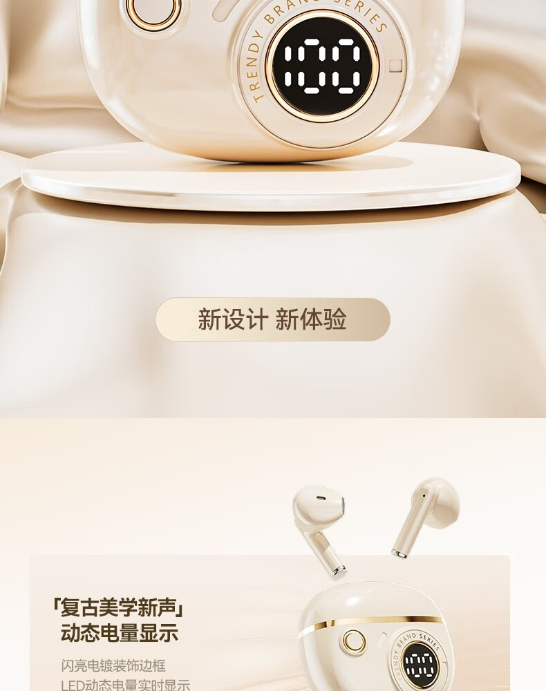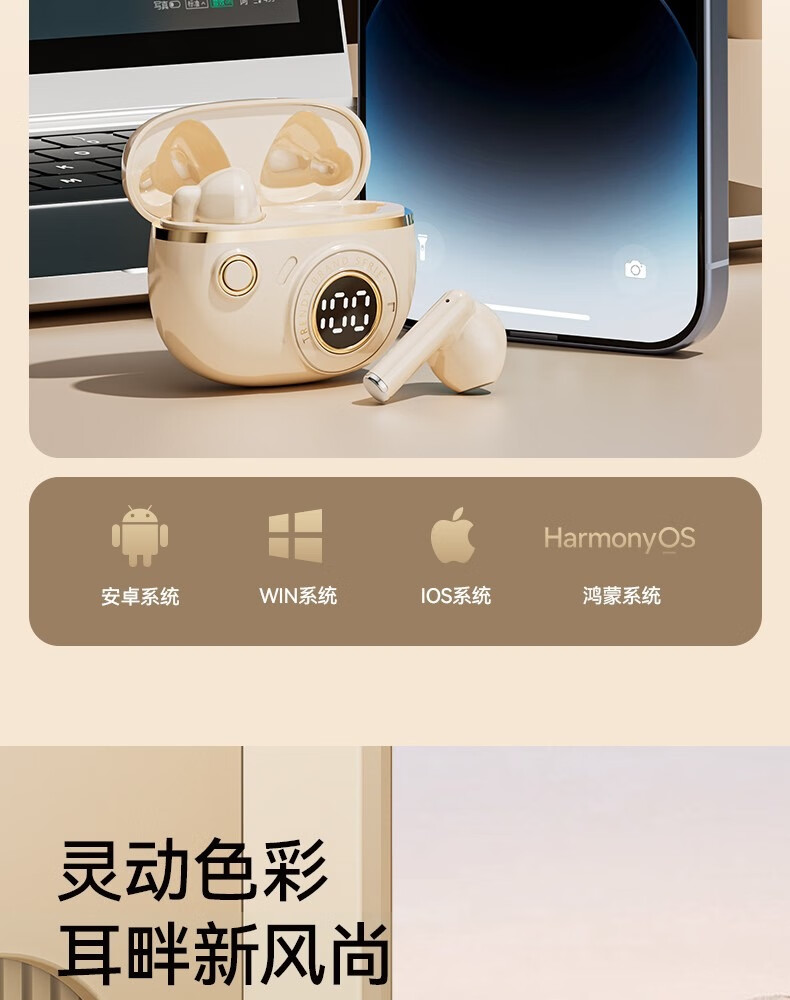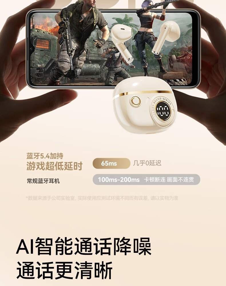 罗凡尼(Rofani) J08C 智能数显HIFI音质长续航运动跑步游戏低延迟通话降噪便携时尚学生情侣通用半入耳式蓝牙耳机 肤色顶配款-杜比音效-智能高清降噪-5.4双芯片