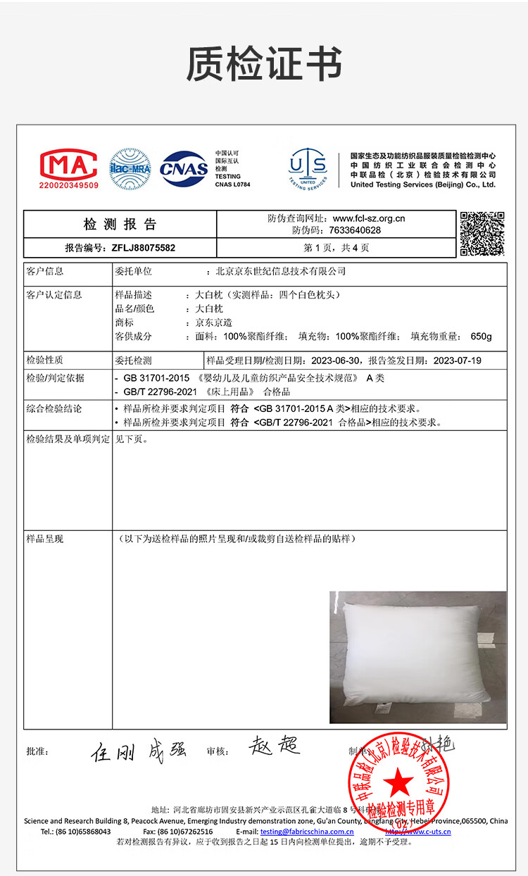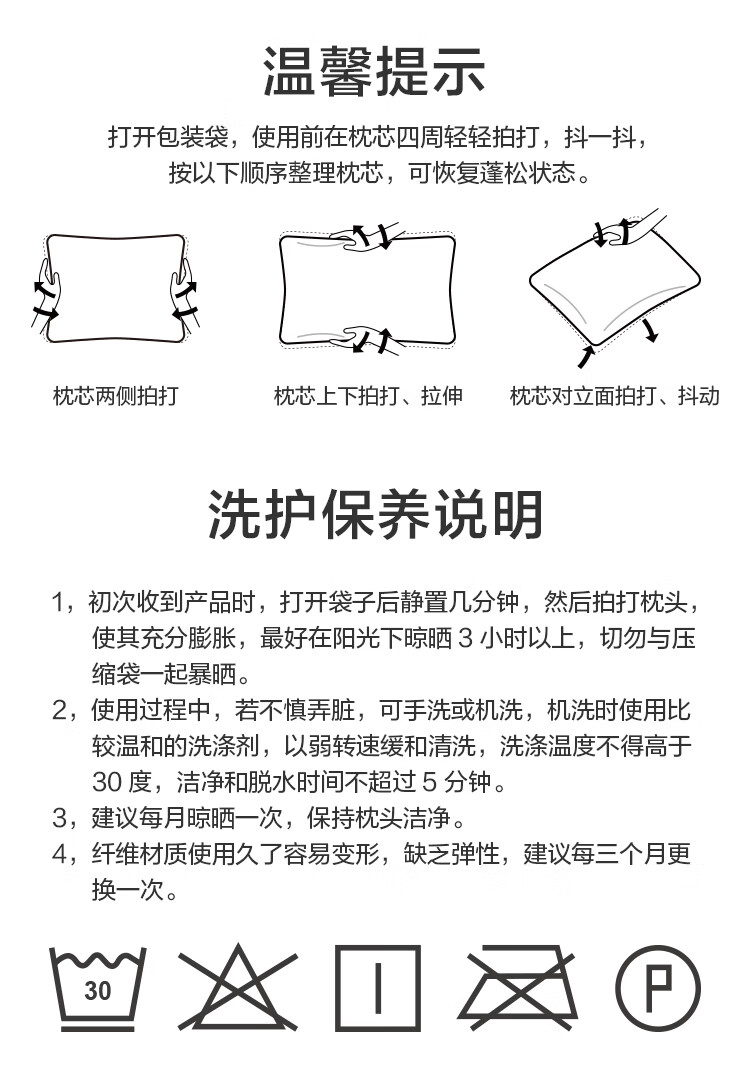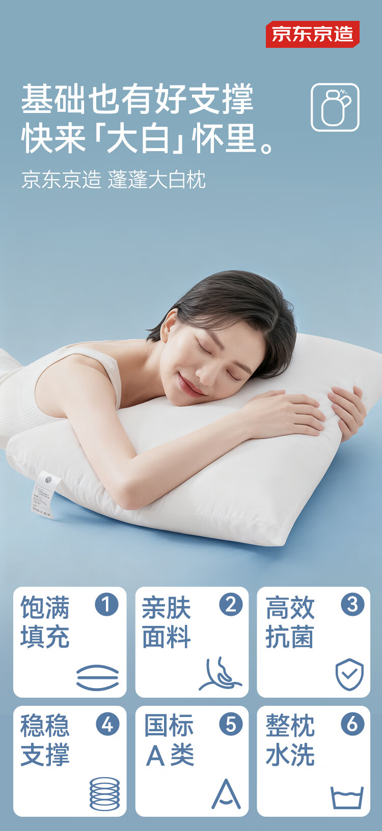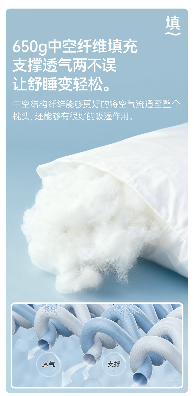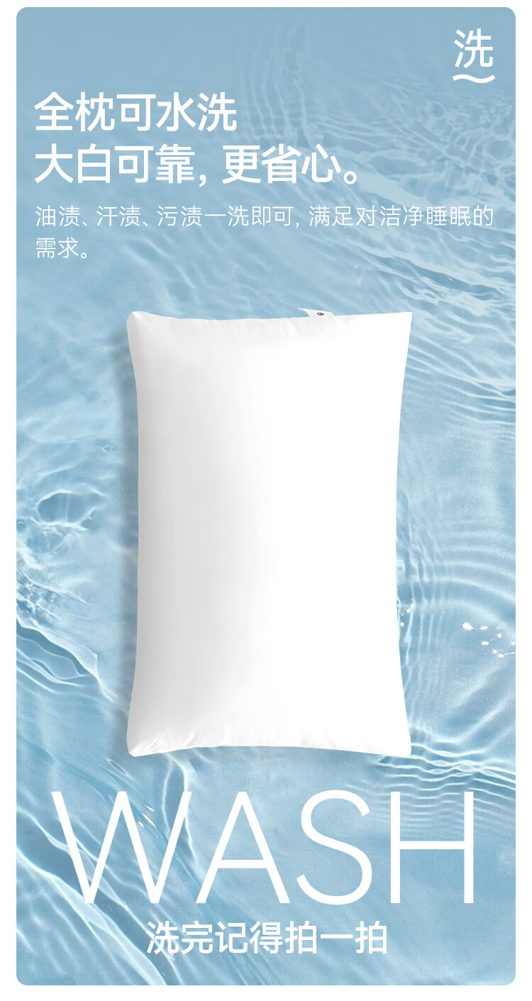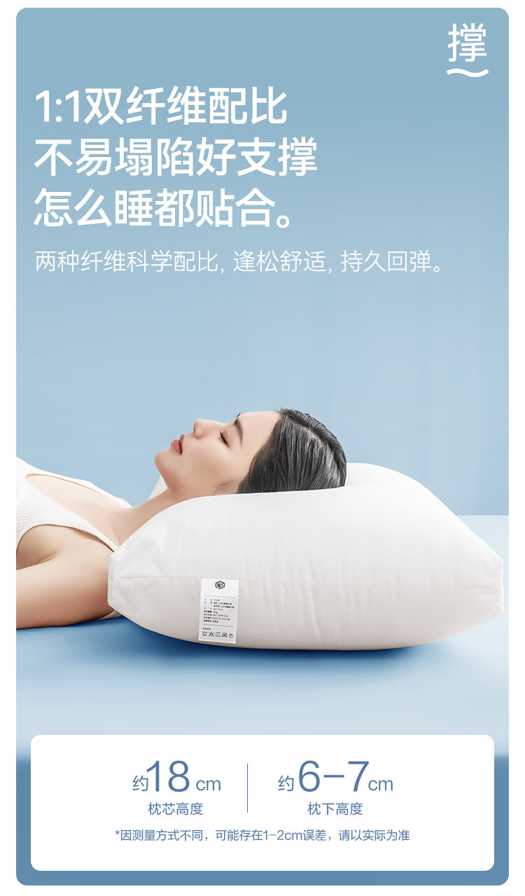 京东京造 大白枕 100%健康原生纤维A类抗菌枕头枕芯可水洗双人枕 一对装