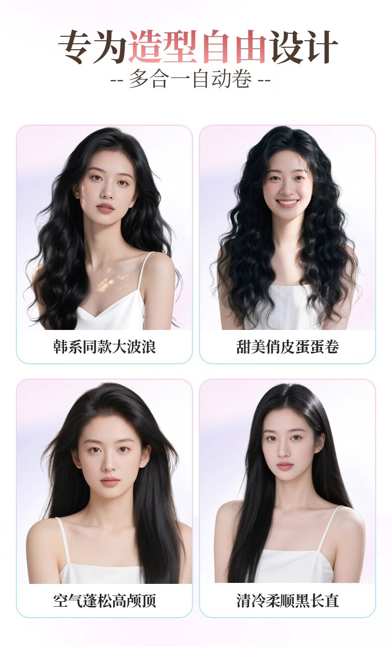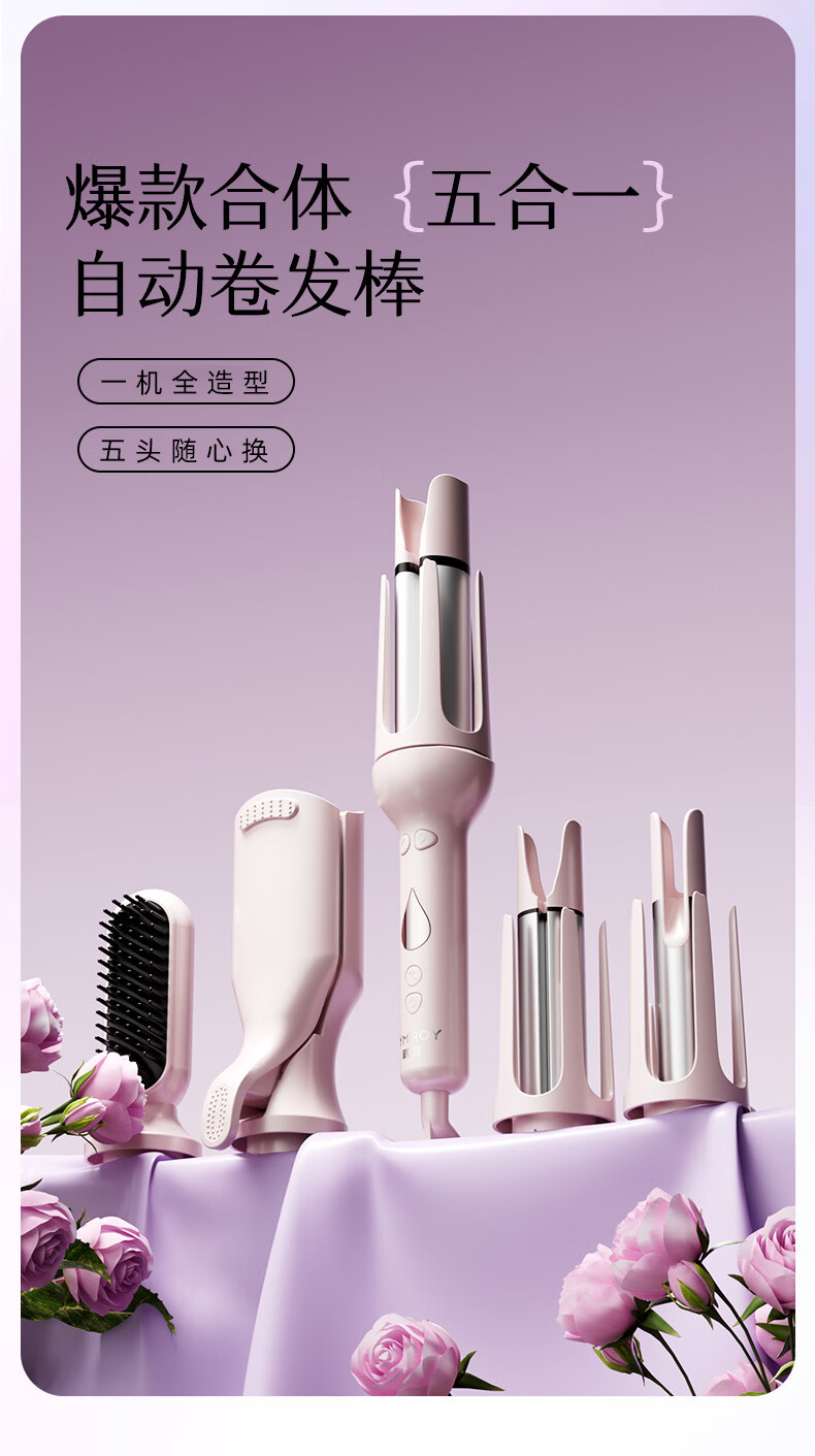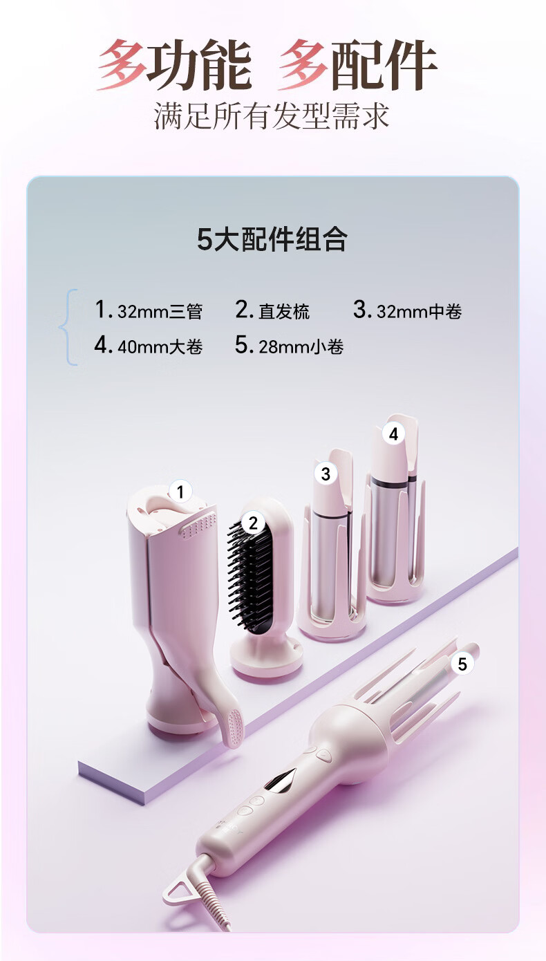 DYMIROY 戴觅全自动卷发棒40mm大卷32蛋卷头五合一负离子蓬松发根神器大波浪懒人宿舍28三合一直发梳生日礼物女 樱粉【五合一】28/32/40/32蛋卷/直发梳