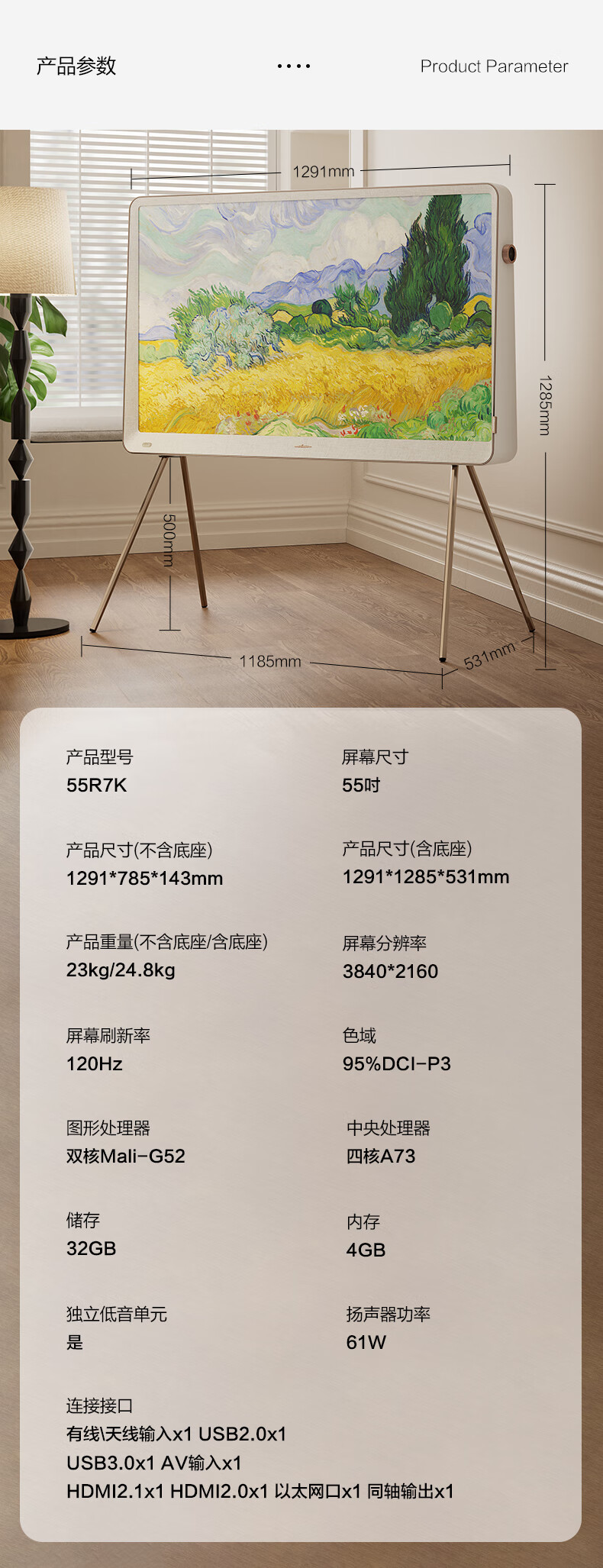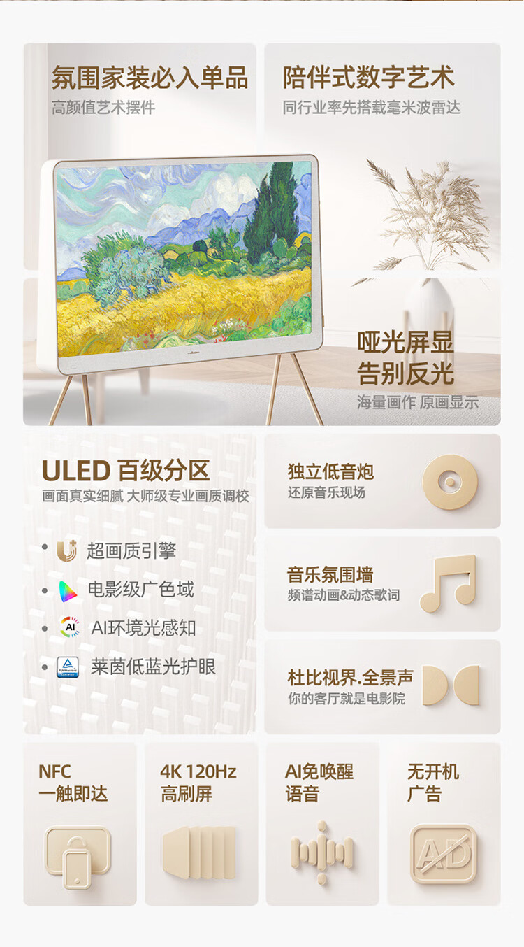 海信艺术电视55R7K 璀璨 55英寸 ULED百分区氛围家装必入 哑光壁画电视机智慧屏 以旧换新 能效补贴