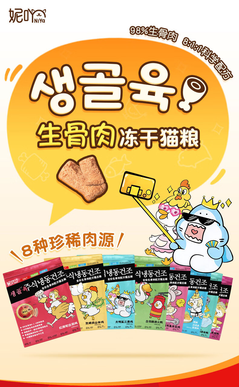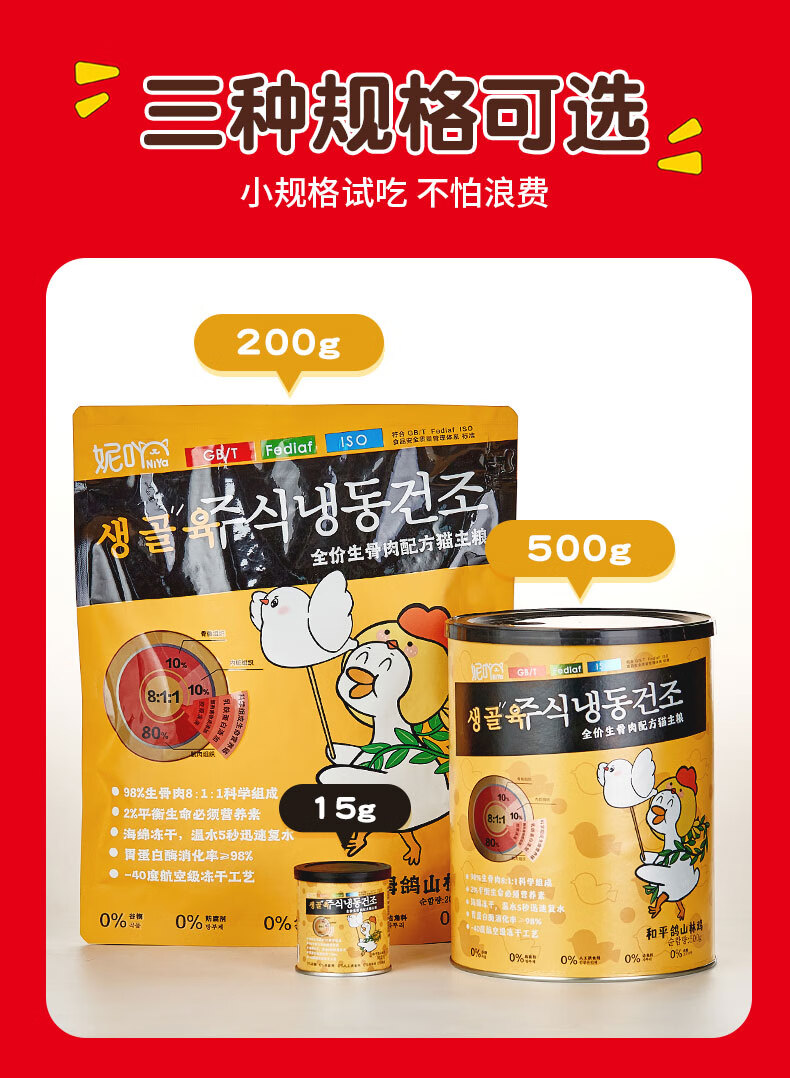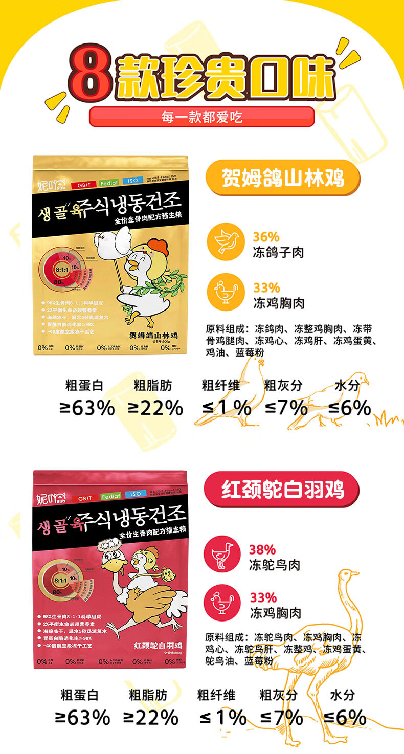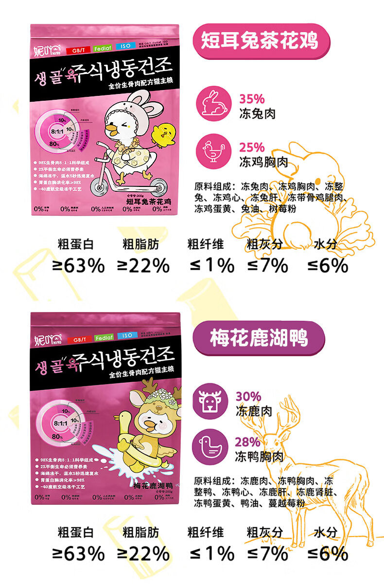 妮吖NiYa 全价主食冻干猫粮主粮98%生骨肉 高蛋白营养补充 科学配比 全价生骨肉冻干-短耳兔茶花鸡