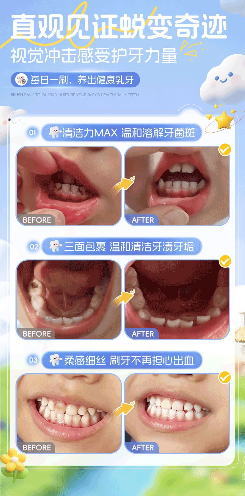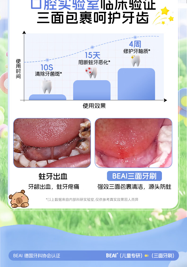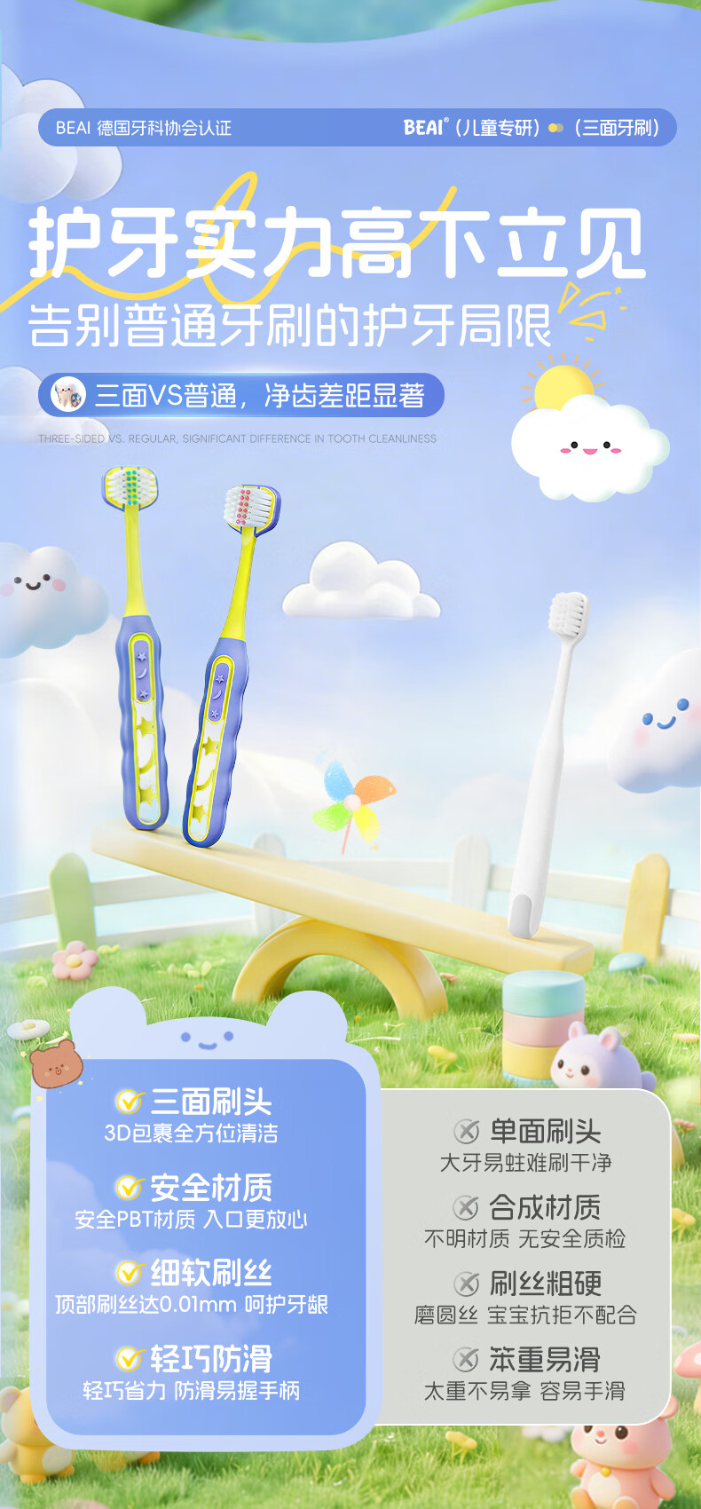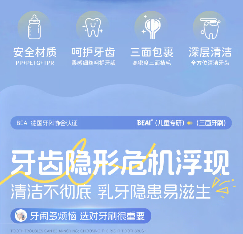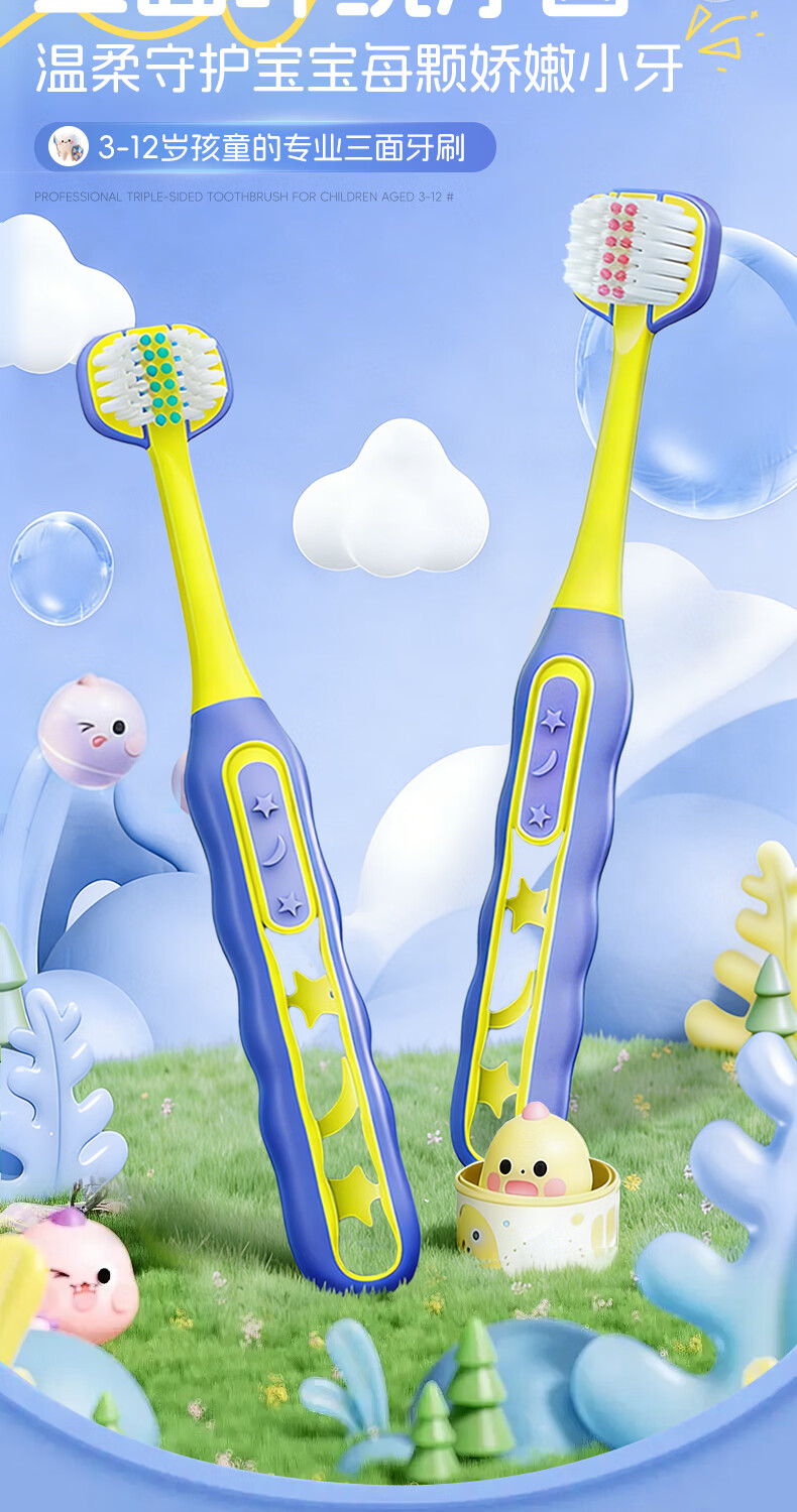 BEAI儿童牙刷三头面软毛3-6-12岁u型3d全面包裹小学生幼儿换牙期牙刷