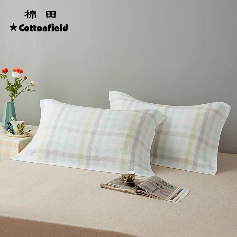 棉田纯棉枕巾无捻纱全棉柔软透气吸汗情侣家用纯棉枕巾一对装 春天里 枕巾-粉色2条 80cm*50cm