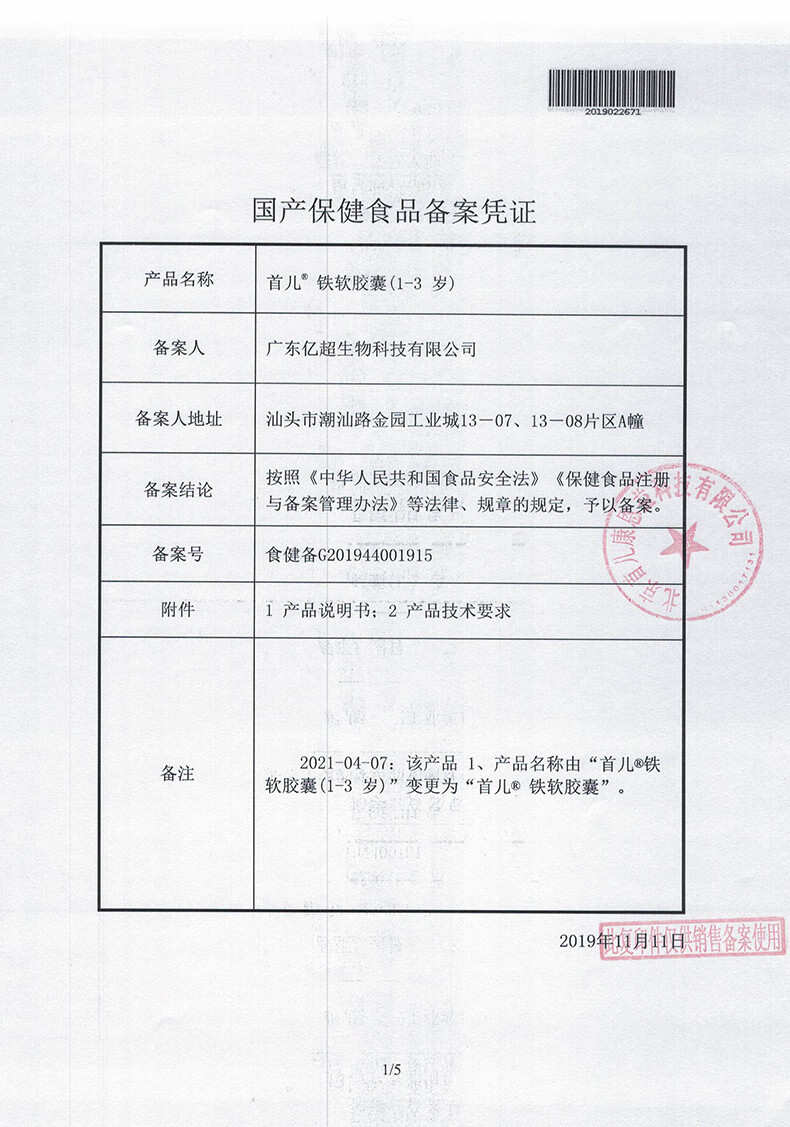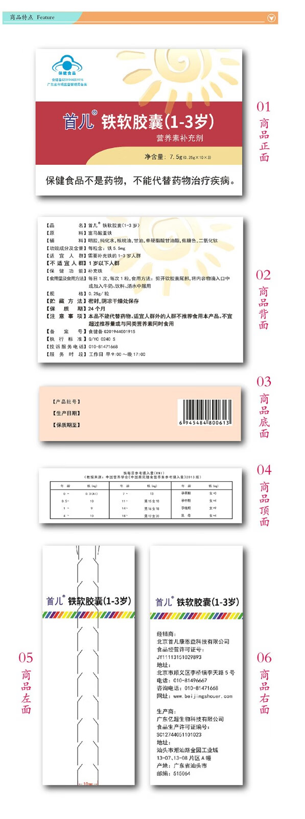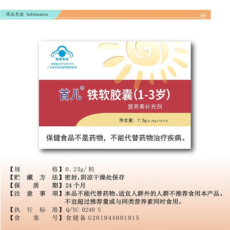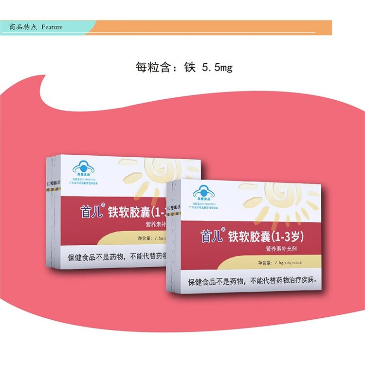 首儿铁软胶囊营养素补充剂宝宝儿童补充铁7.5g(0.25gx30粒)