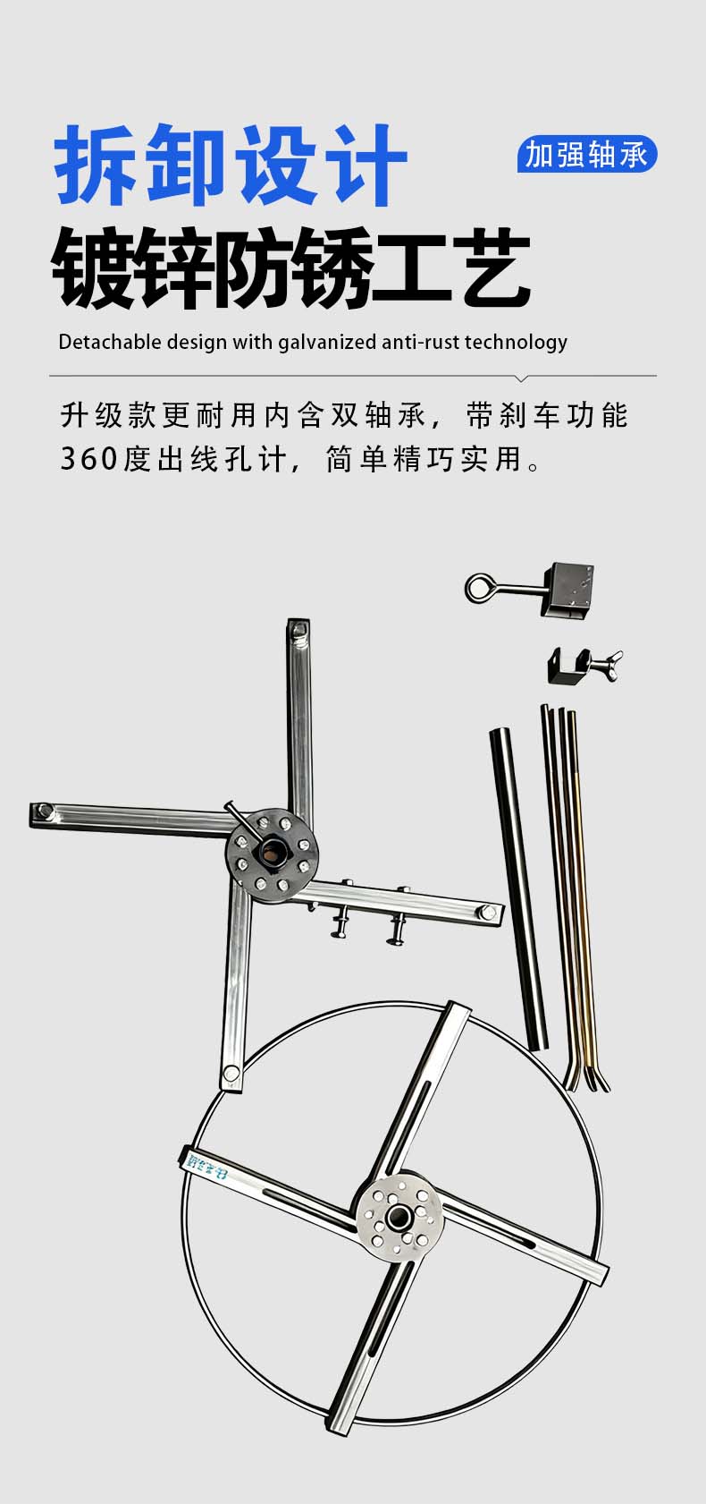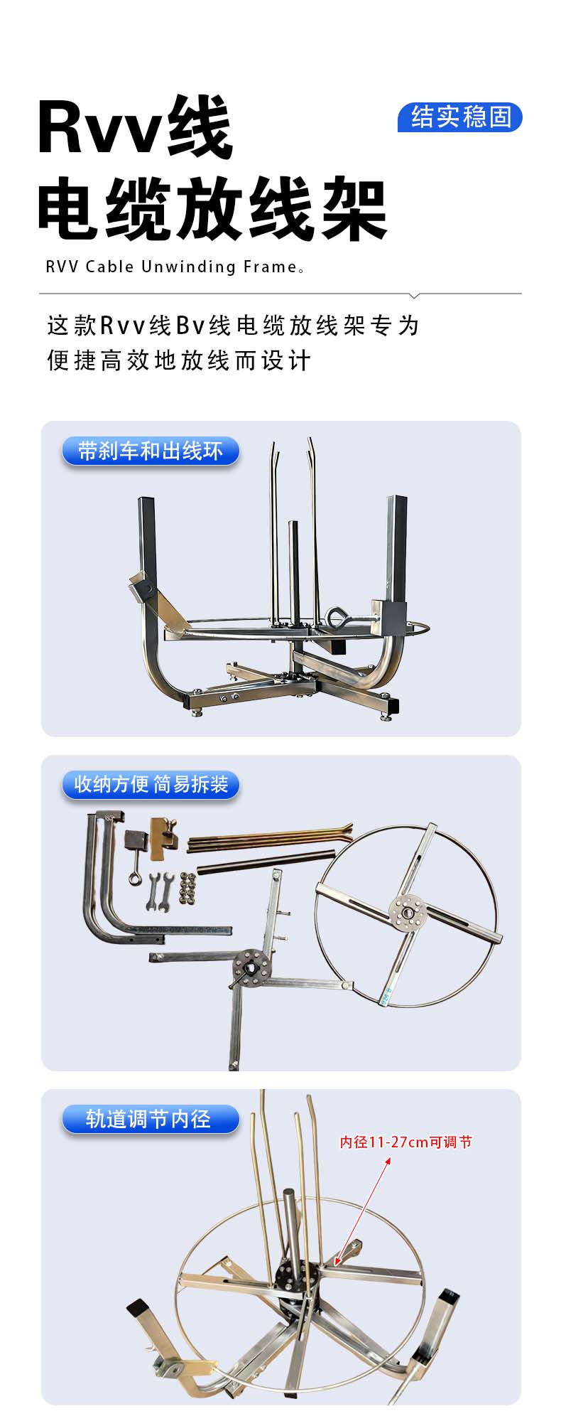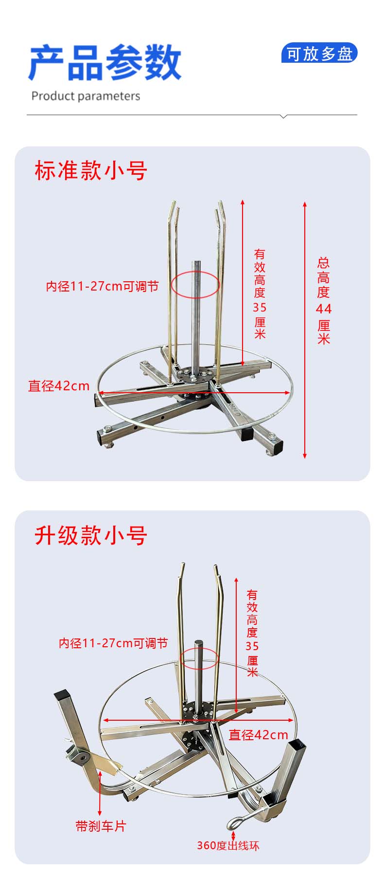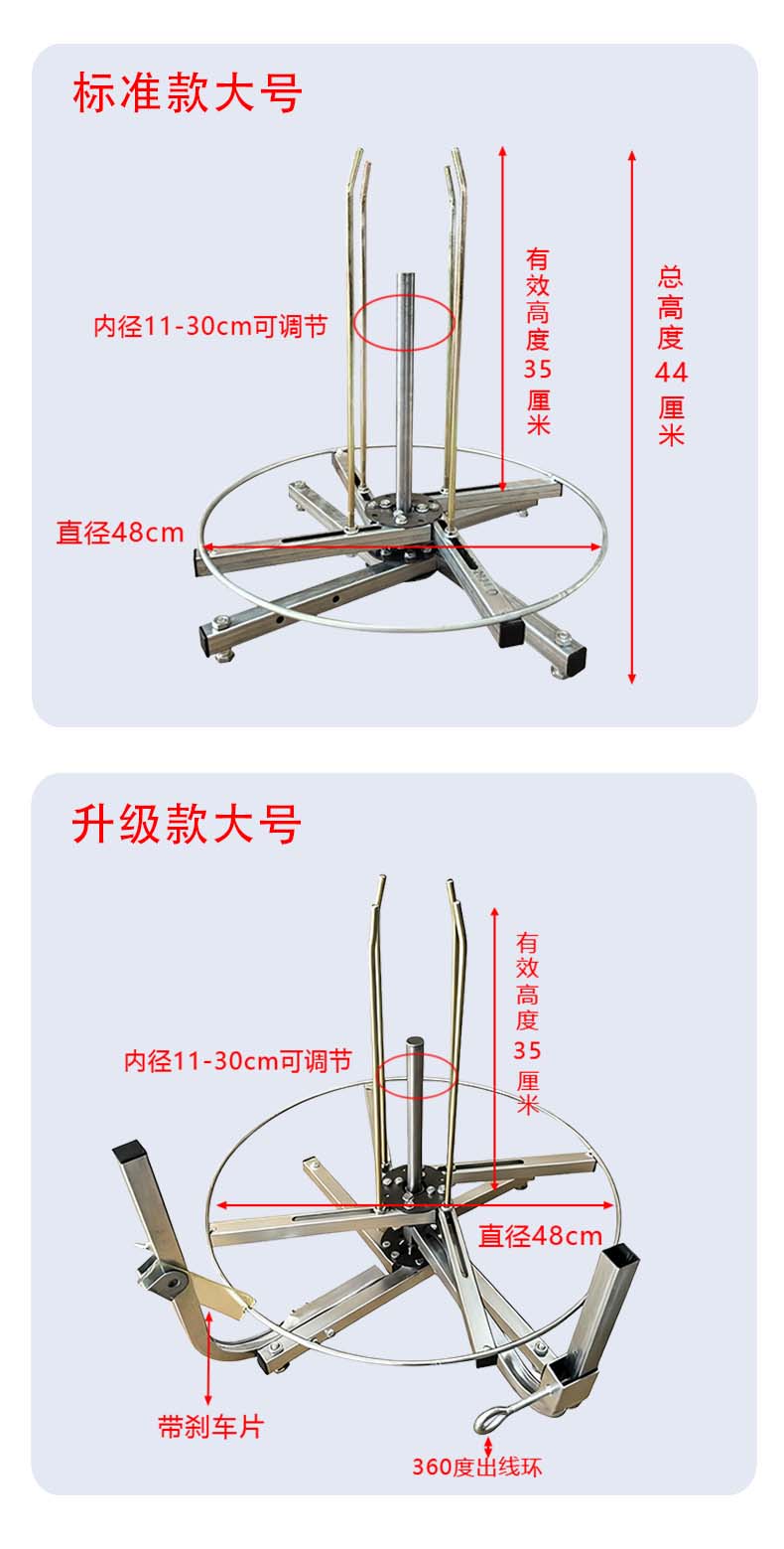 立式转线盘小型电缆放线架BV线rvv线内径可调节电工专用拉线神器 升级款大号(带刹车和出线环)