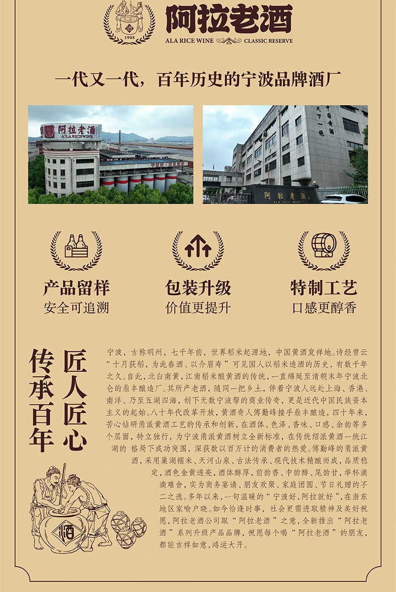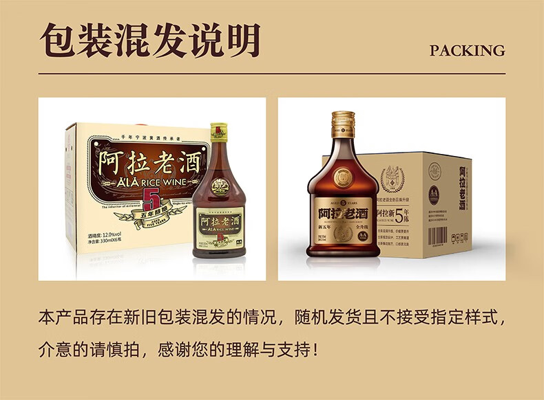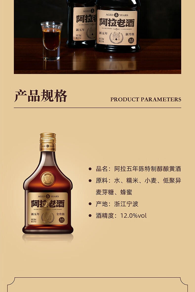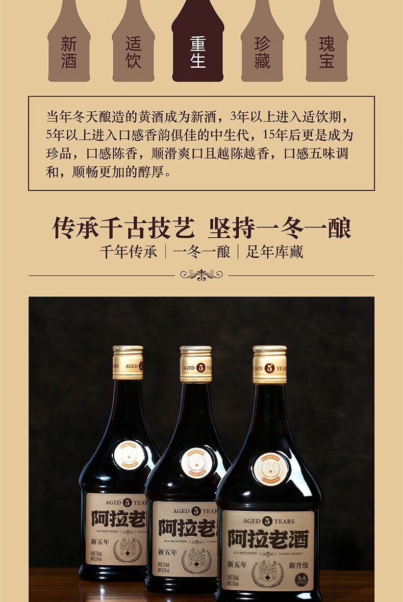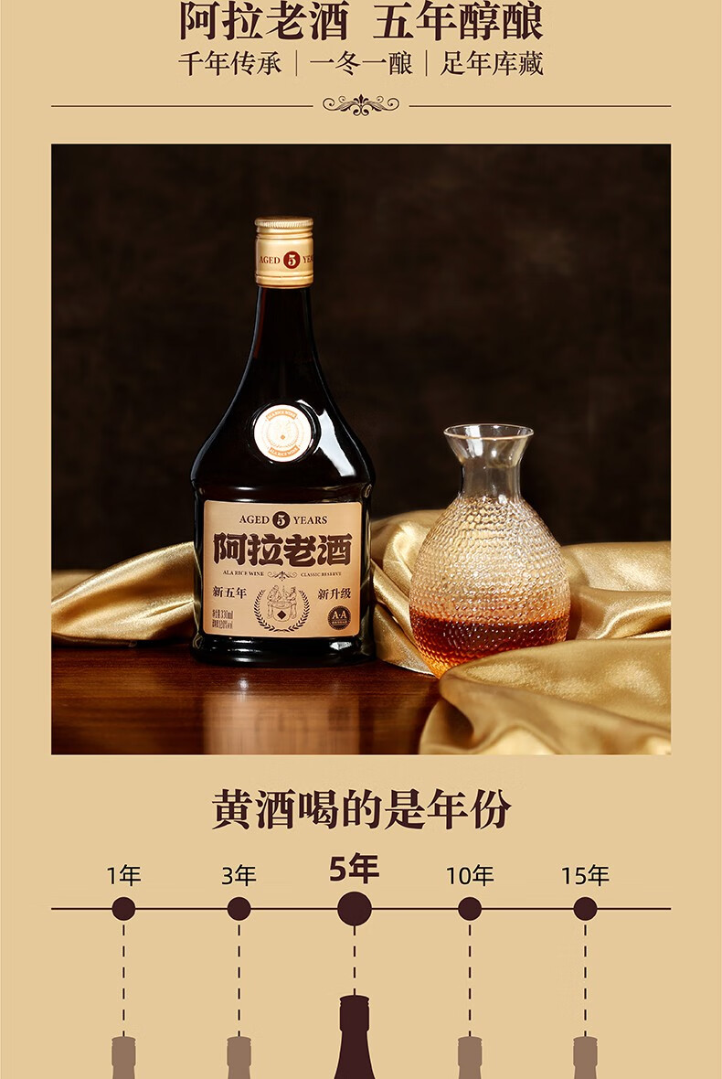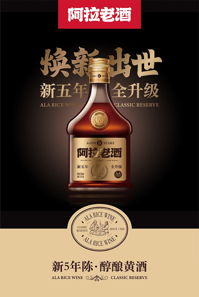 阿拉老酒五年醇酿 半干型黄酒 黄酒 自饮小酌 醇绵柔和 330ml*6瓶整箱装 330mL 6瓶 整箱装